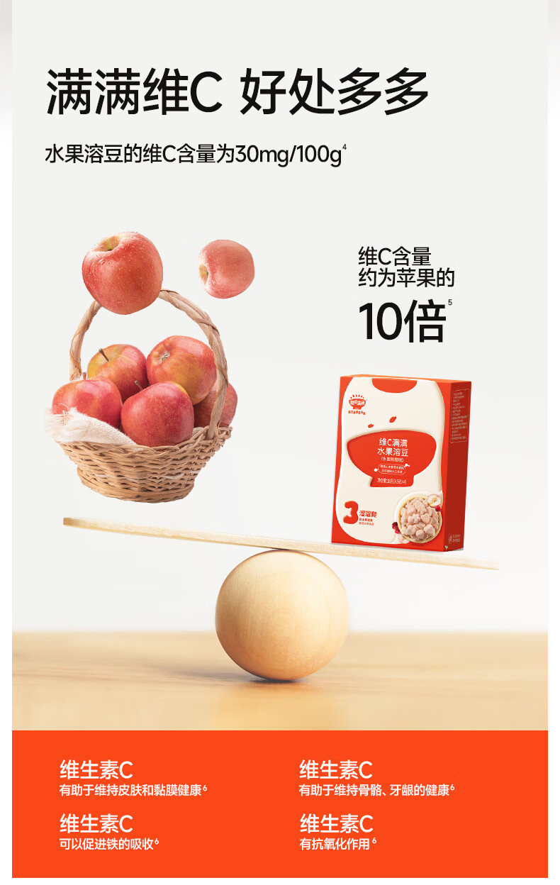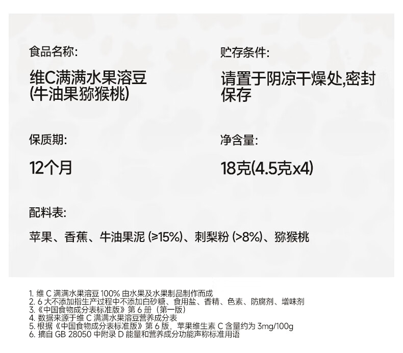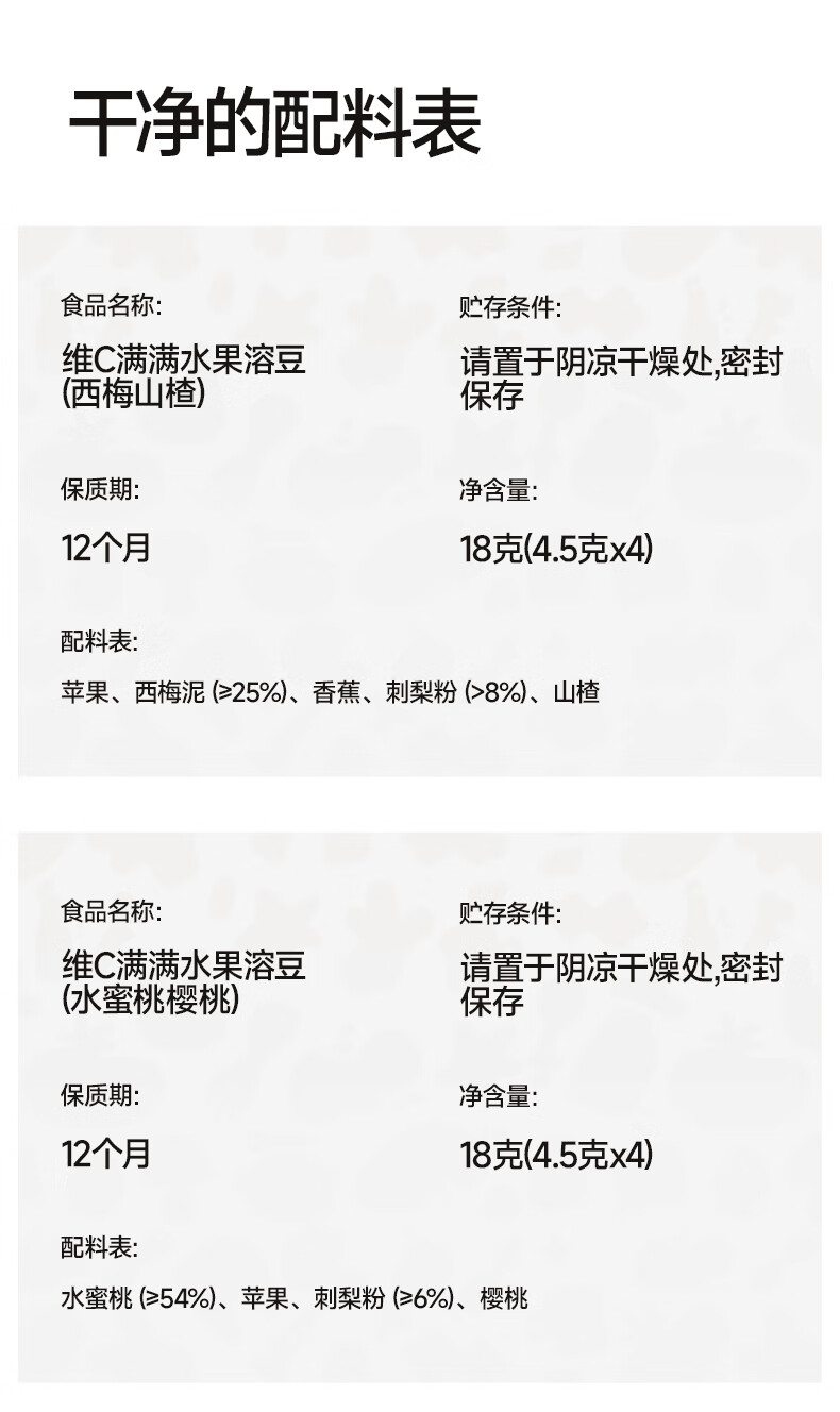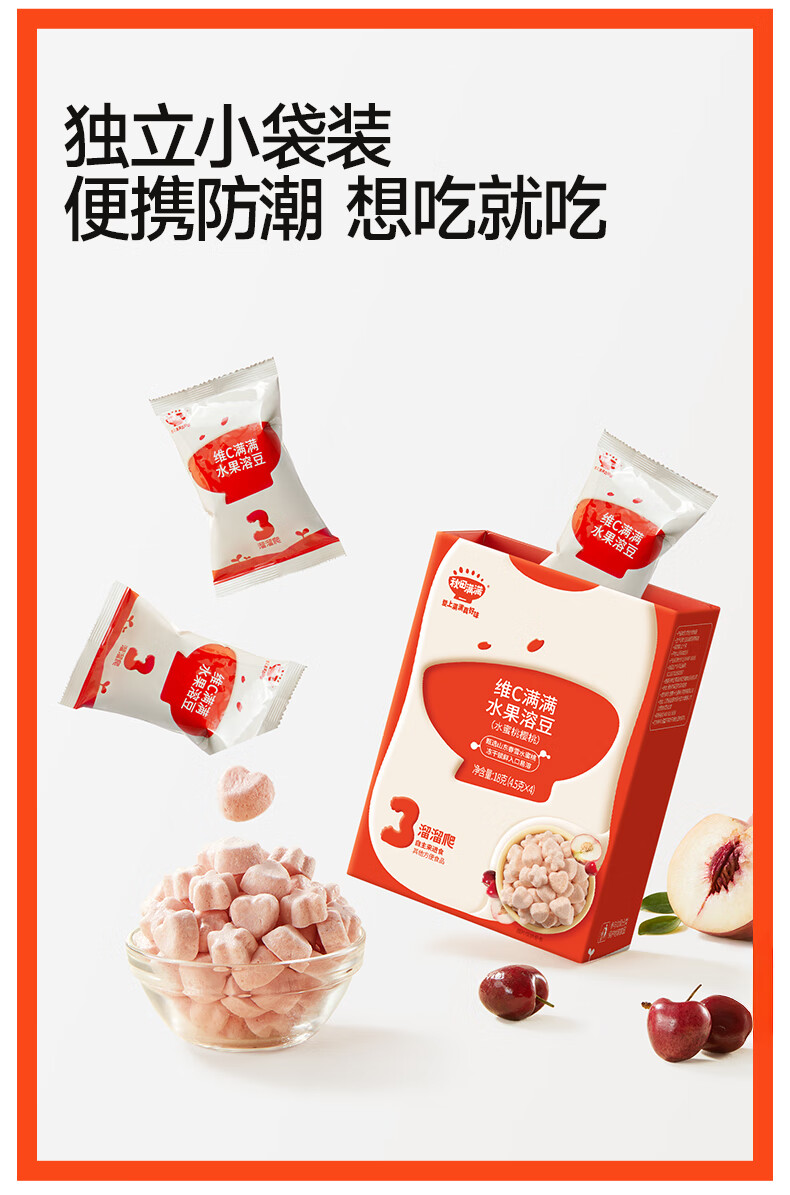 秋田满满--维C满满水果溶豆(水蜜桃樱桃)18g