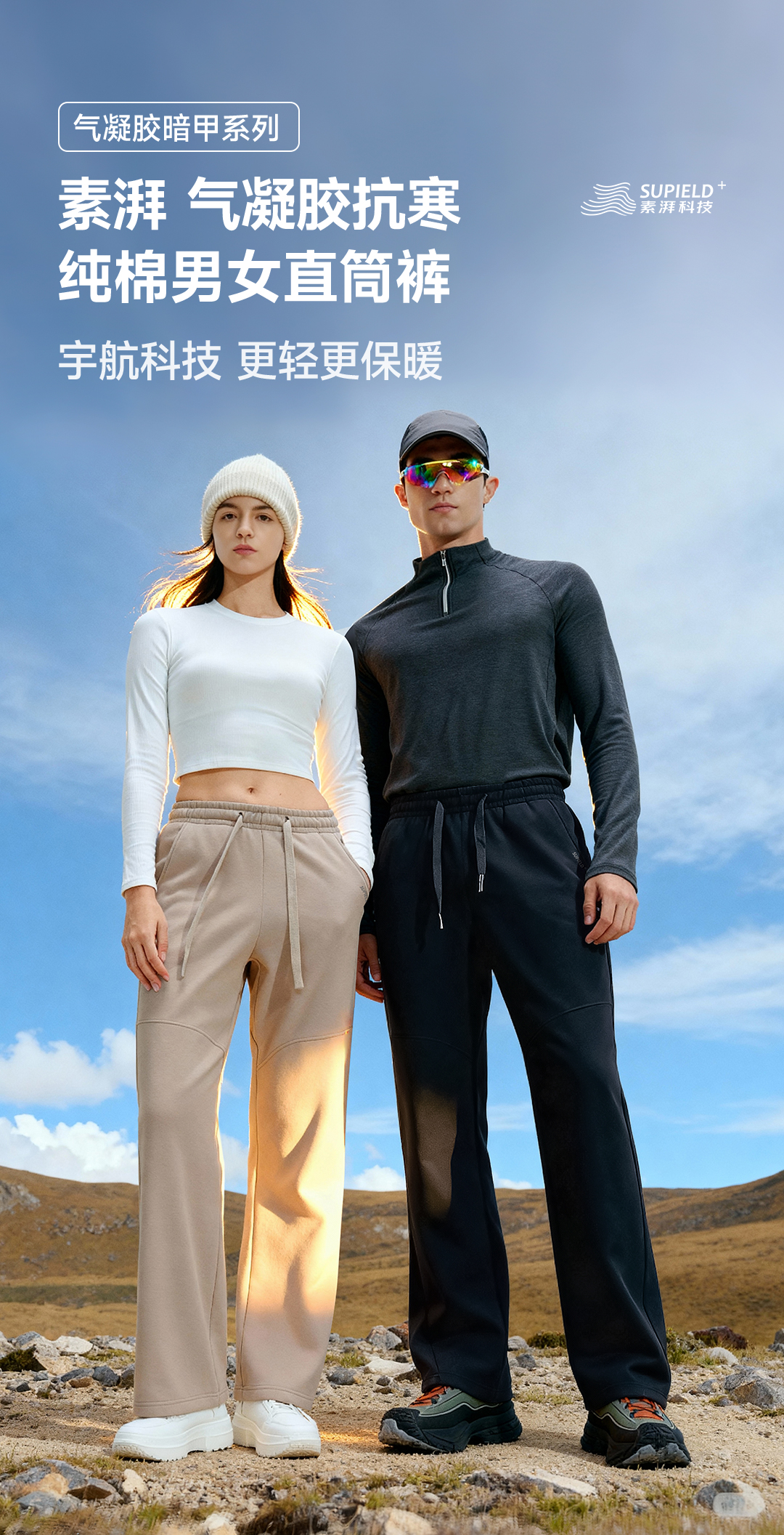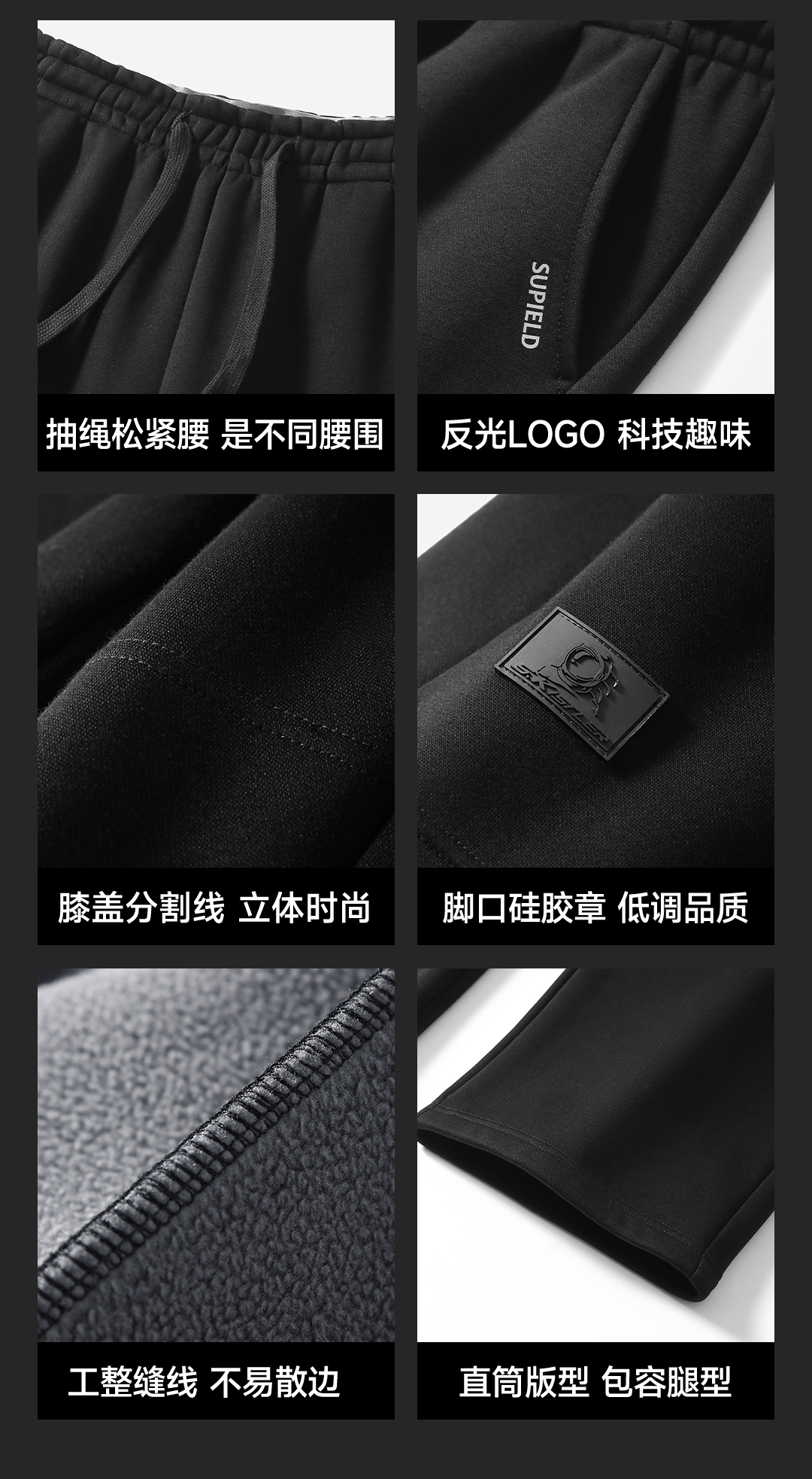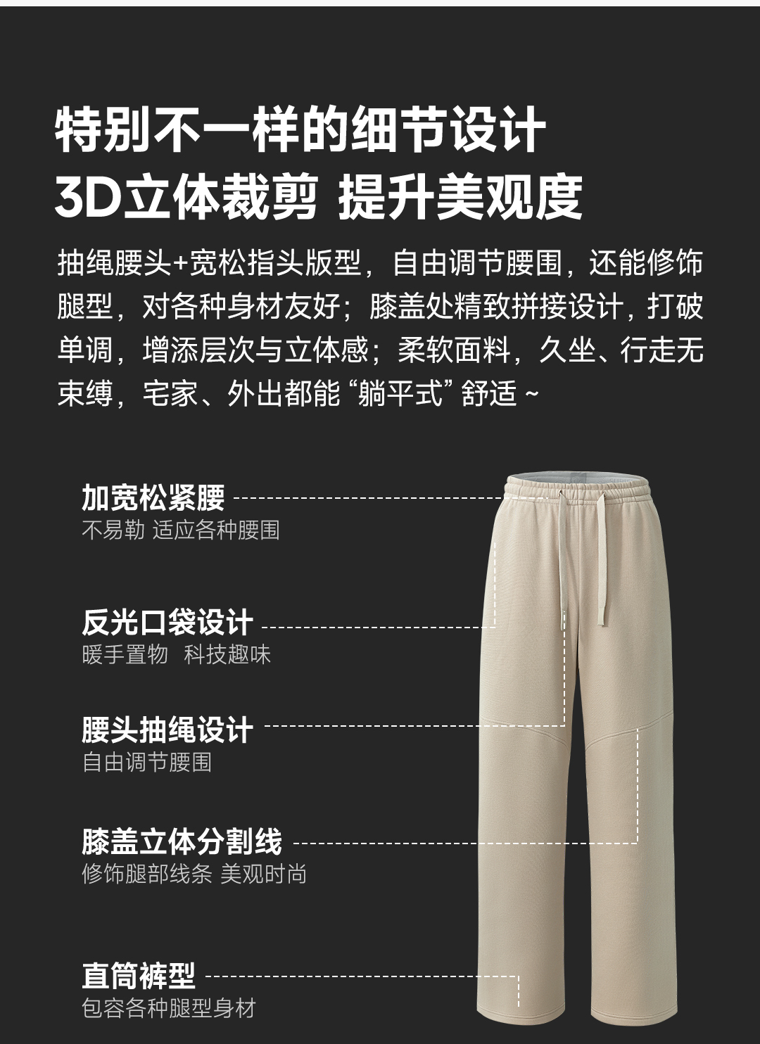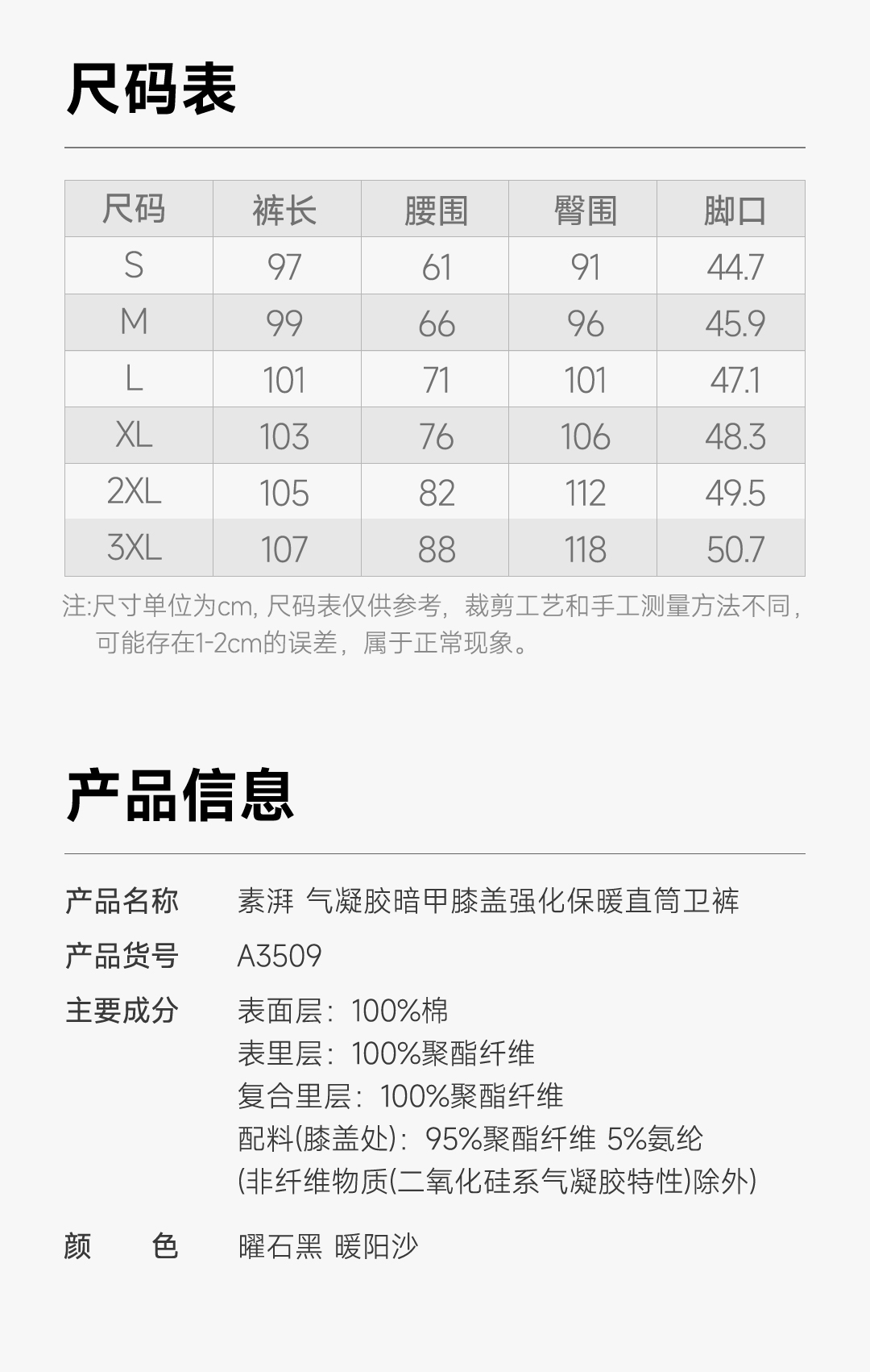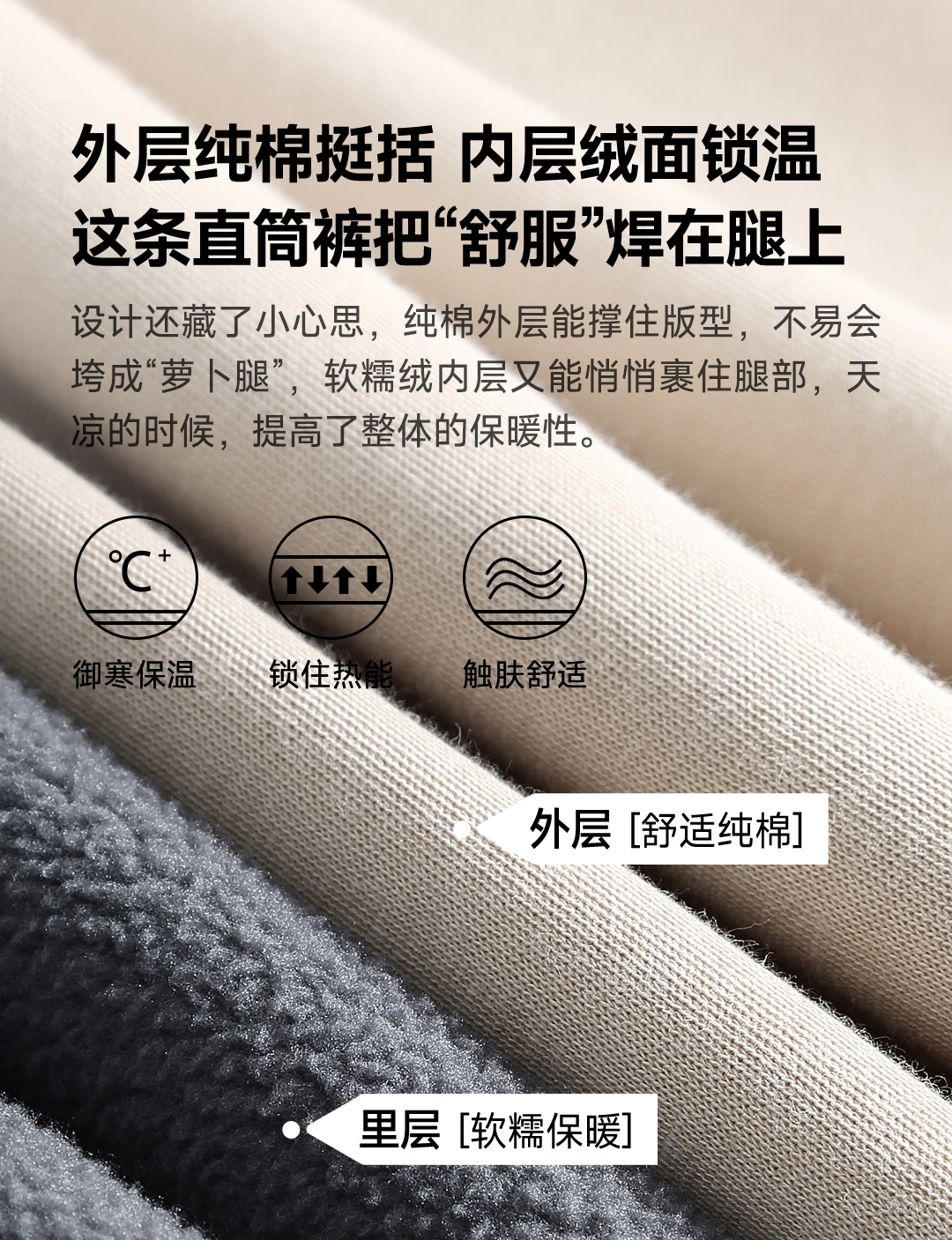混知推荐【外层纯棉挺括 内层绒面锁温】素湃气凝胶抗寒直筒卫裤A3509 立体剪裁 细腻柔软