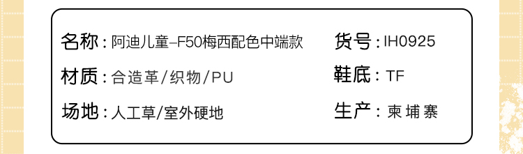 ADIDAS/阿迪达斯F50 LEAGUE TF J MESSI中端F50梅西配色TF儿童足球鞋IH0925