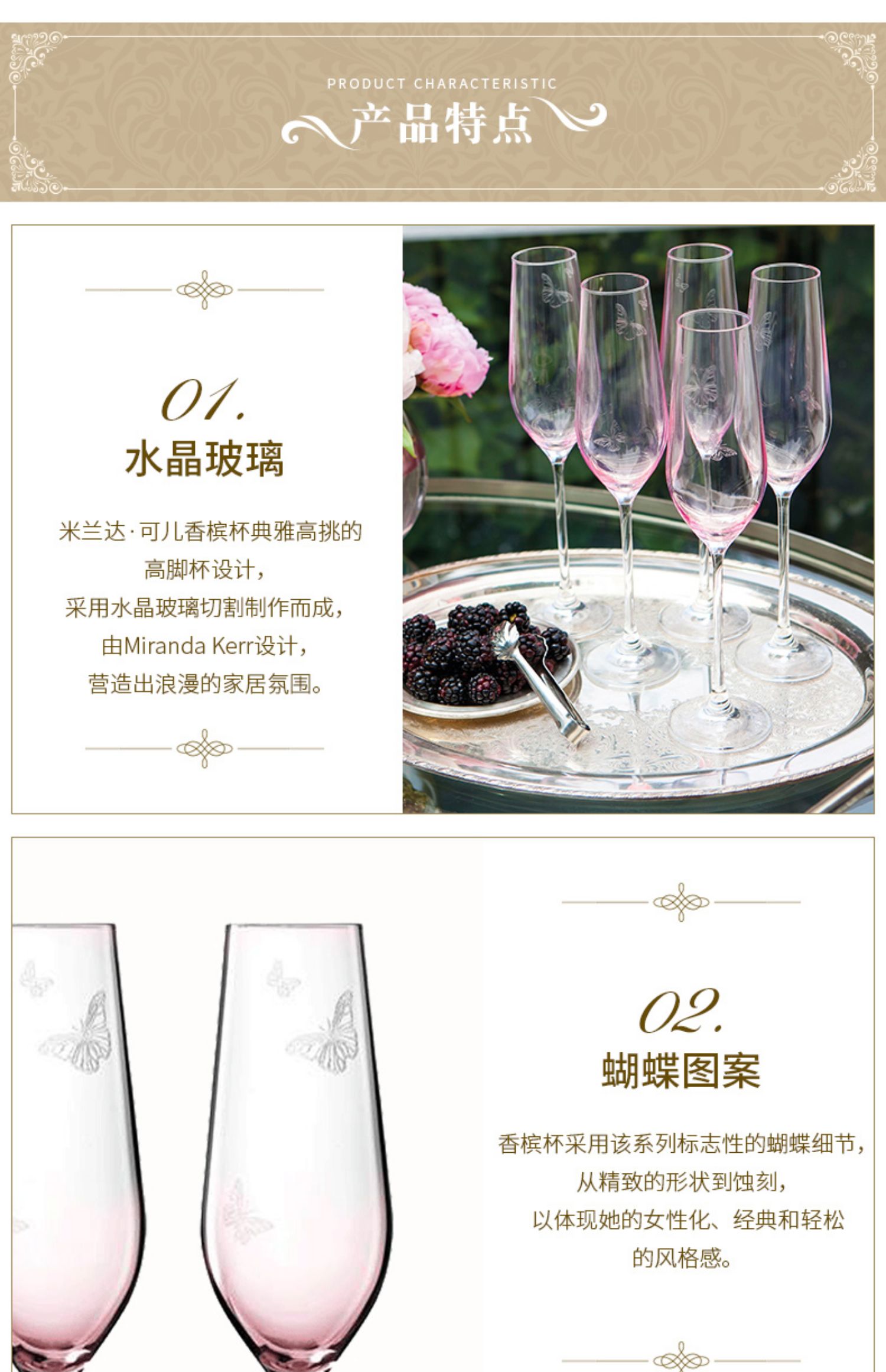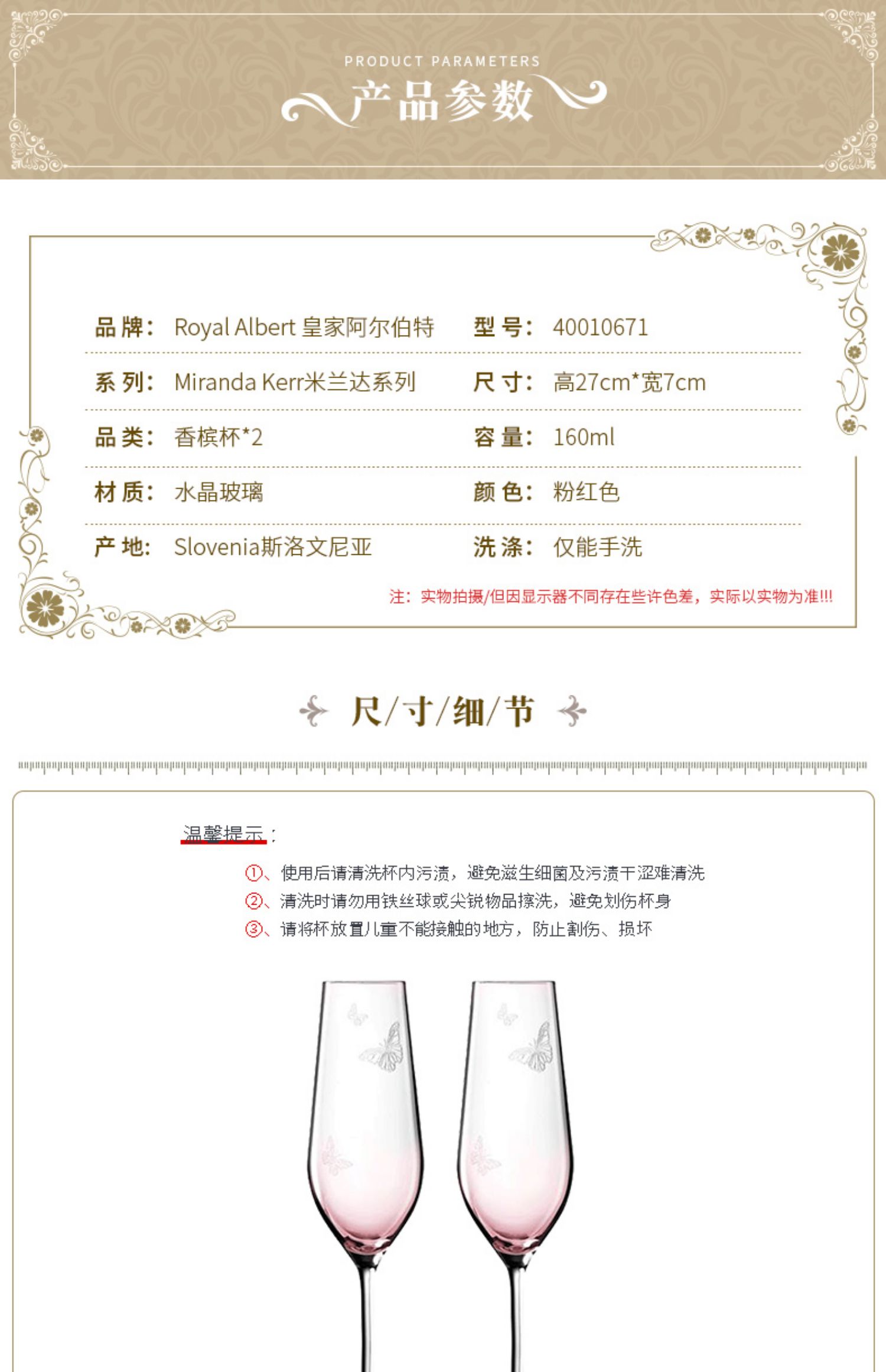 RoyalAlbert 皇家阿尔伯特Miranda联名水晶玻璃酒杯香槟杯礼盒一对