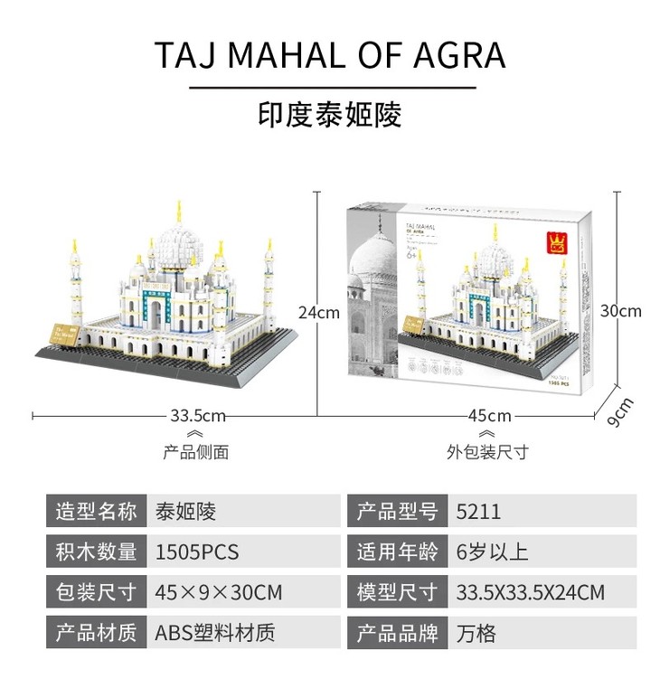 万格印度阿格拉泰姬陵5211世界名筑儿童启蒙建构拼插积木