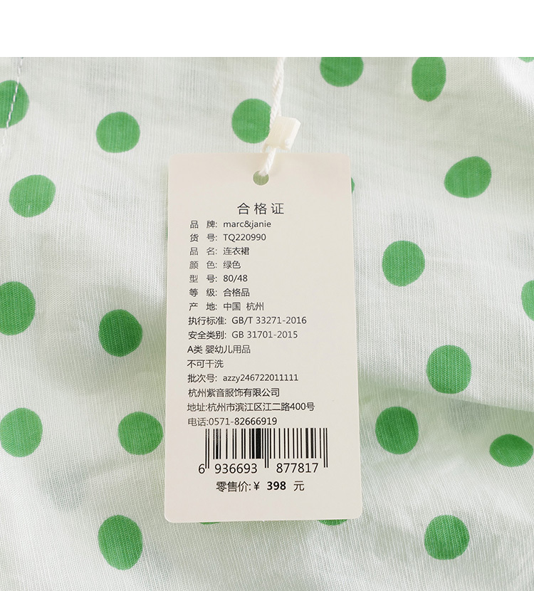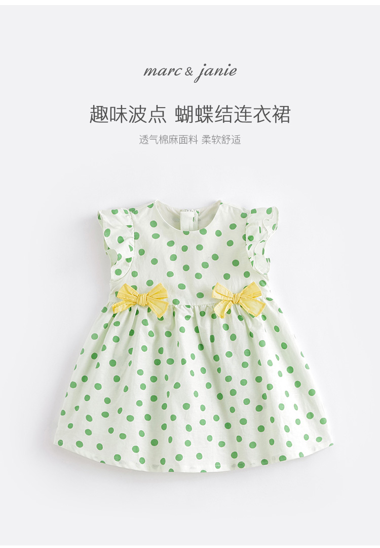 马克珍妮女童蝴蝶结波点短袖连衣裙220990