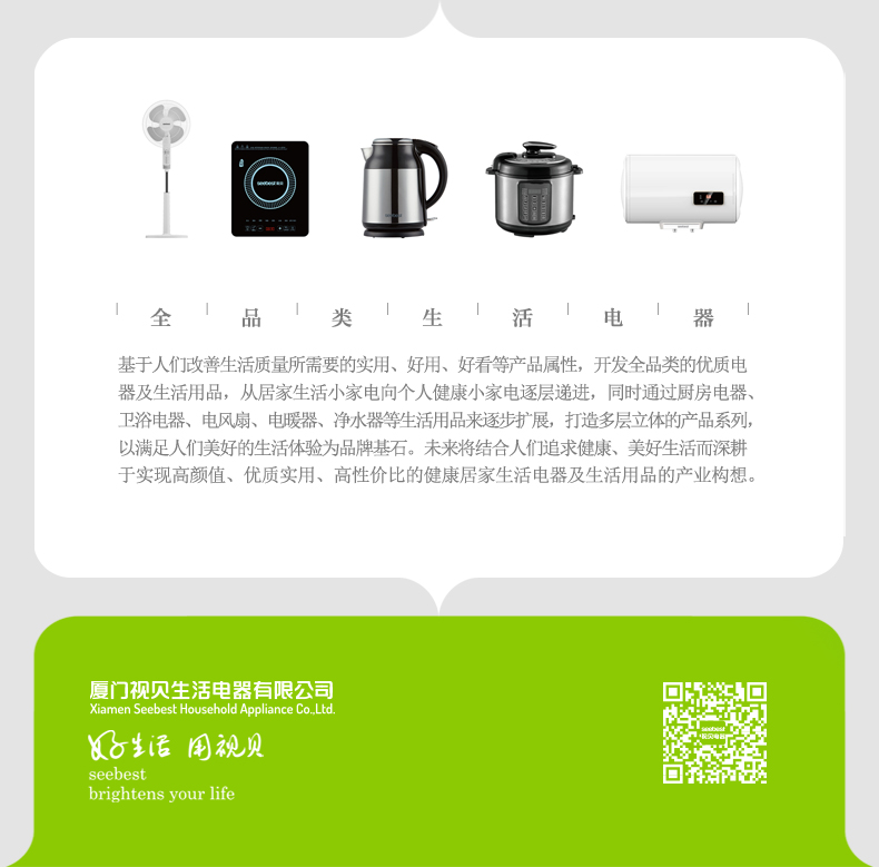 - 厦门视贝科技有限公司是集产品自主设计,研发,生产,销售于一体的高科技企业。拥有80000平方米的制造厂房,核心员工2000多人。产品线涵盖照明、电工,卫浴,线路,集成风暖等领域。