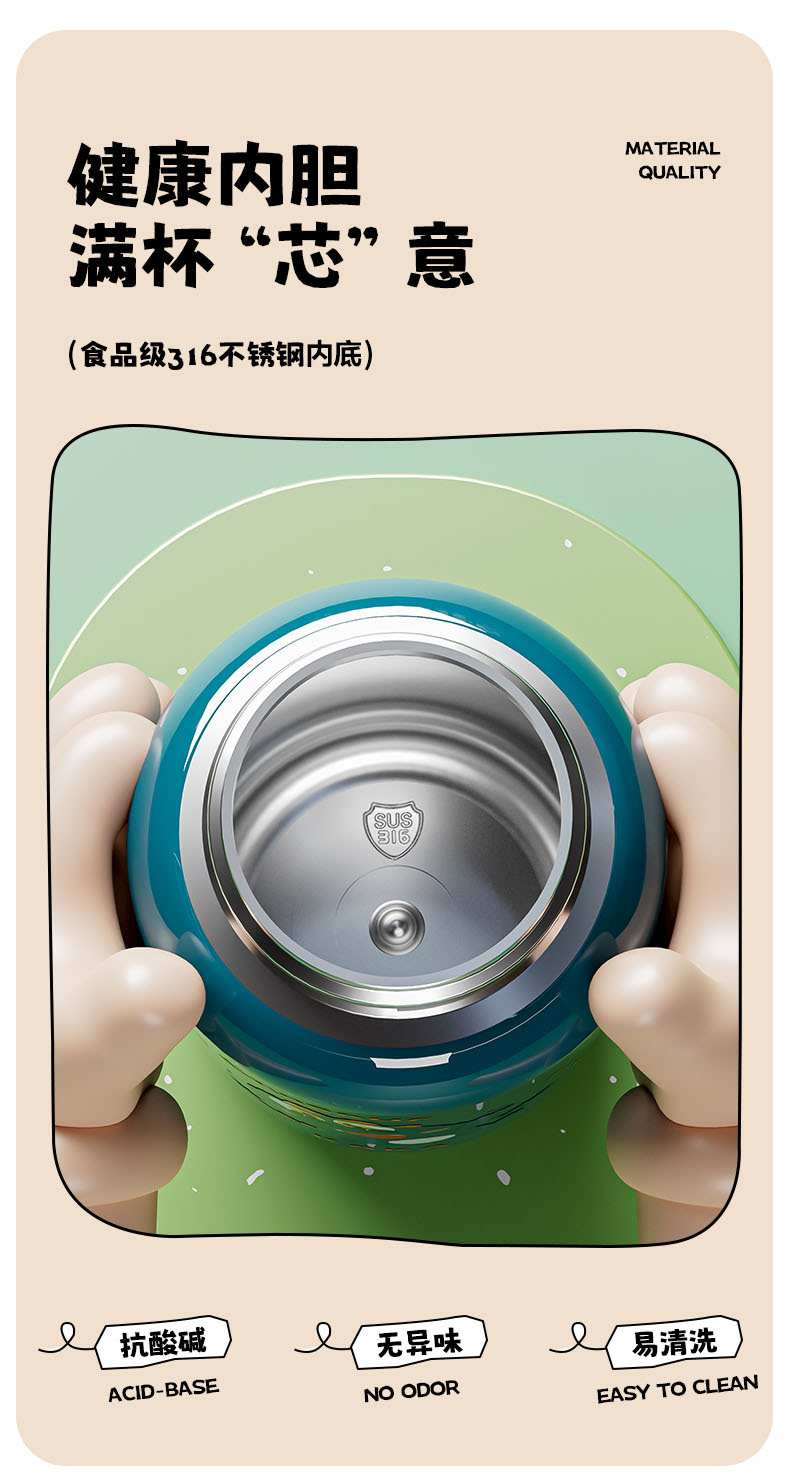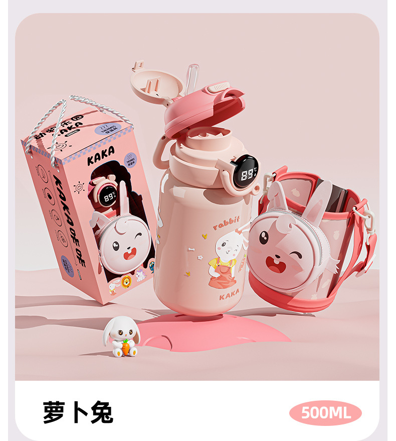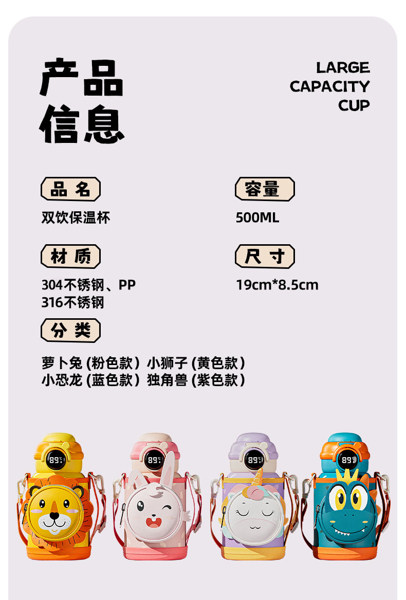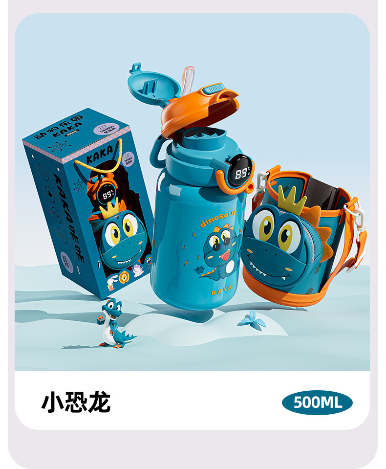 智能儿童保温杯 316不锈钢卡通可爱带杯套儿童水杯吸管杯子高颜值