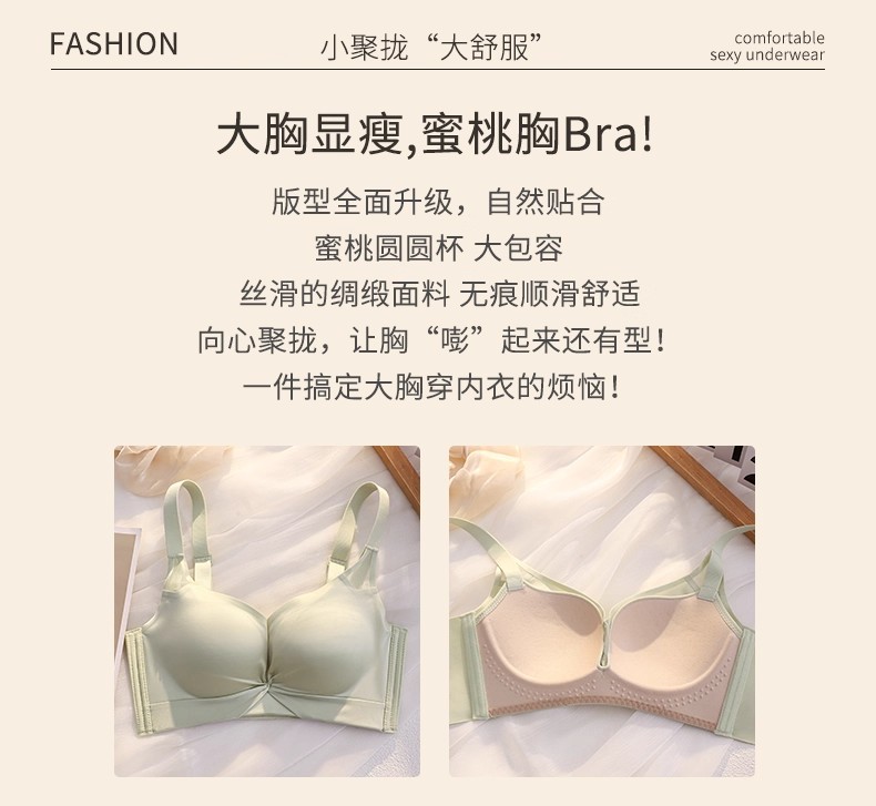 薄款无痕内衣女薄款大胸显小聚拢收副乳防下垂调整型无钢圈文胸罩 商品图2