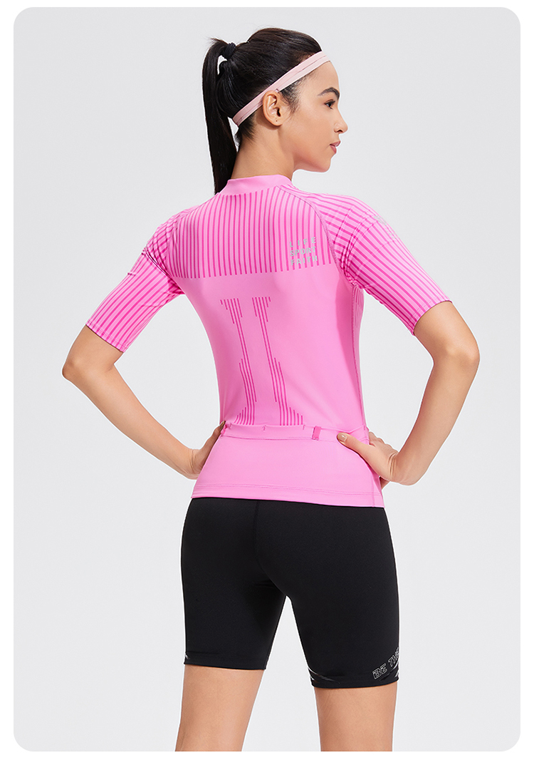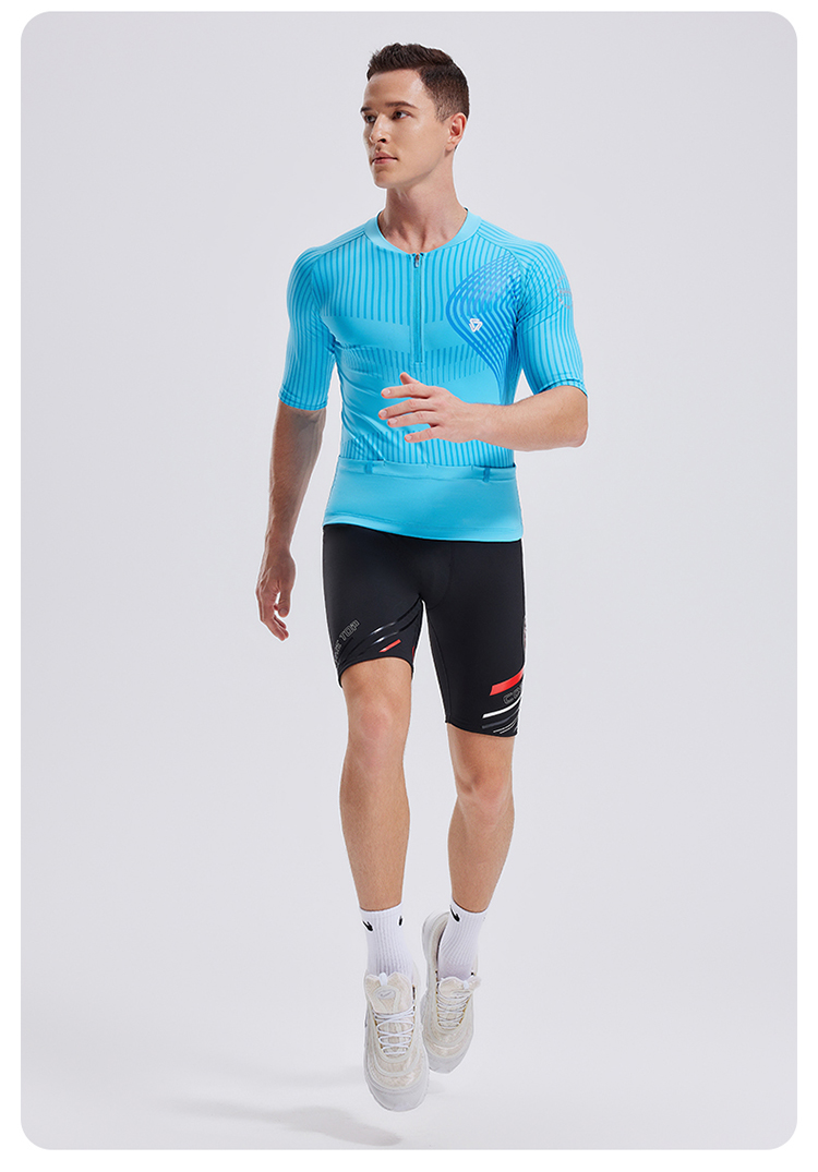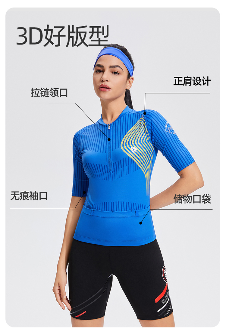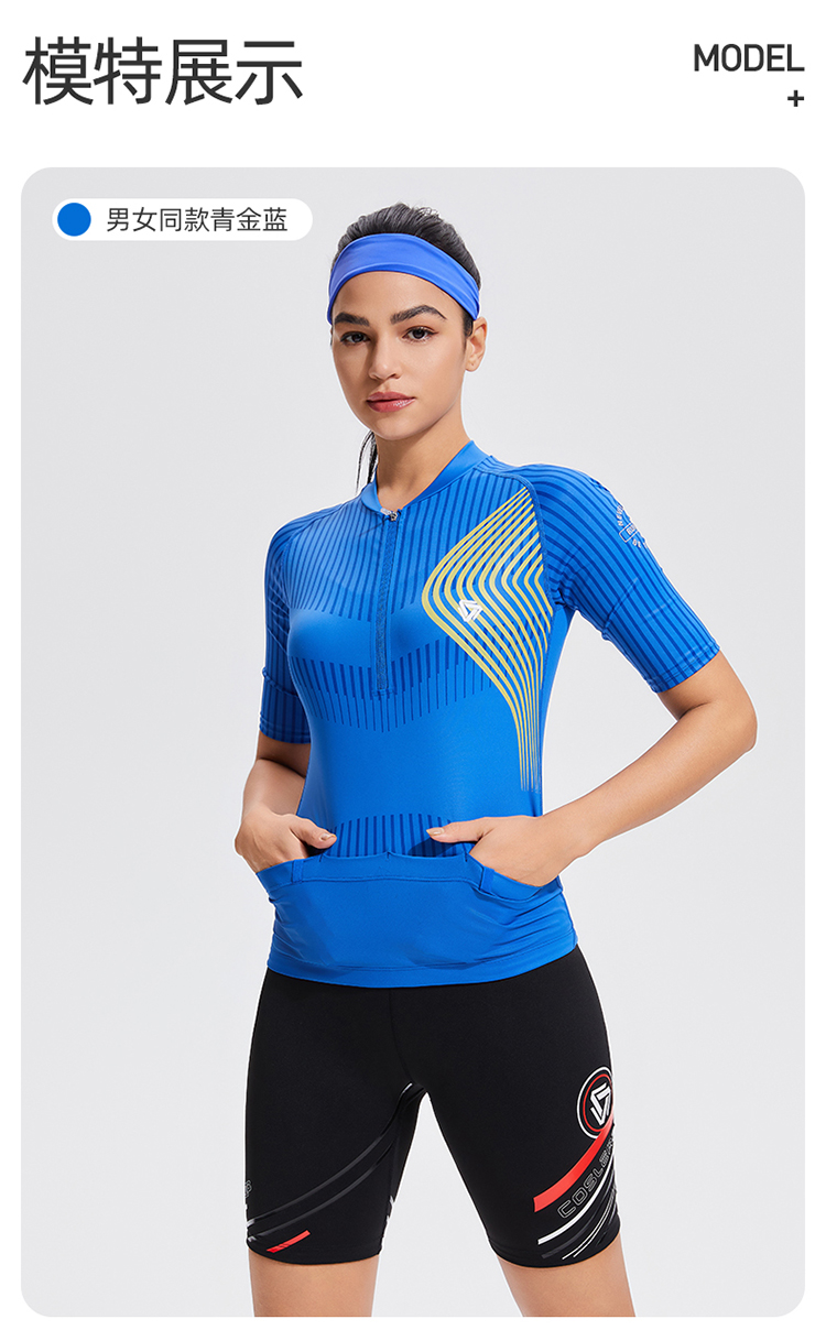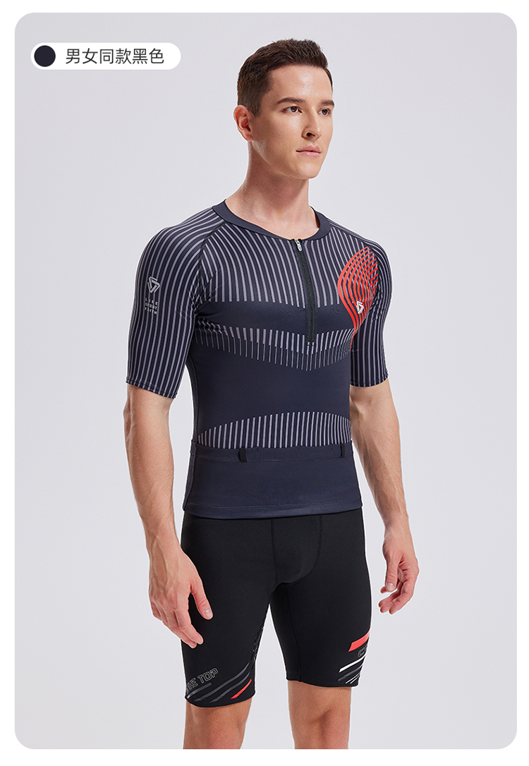 春夏科里芙男女同款半拉链速干运动短袖带口袋压缩衣跑步骑行服