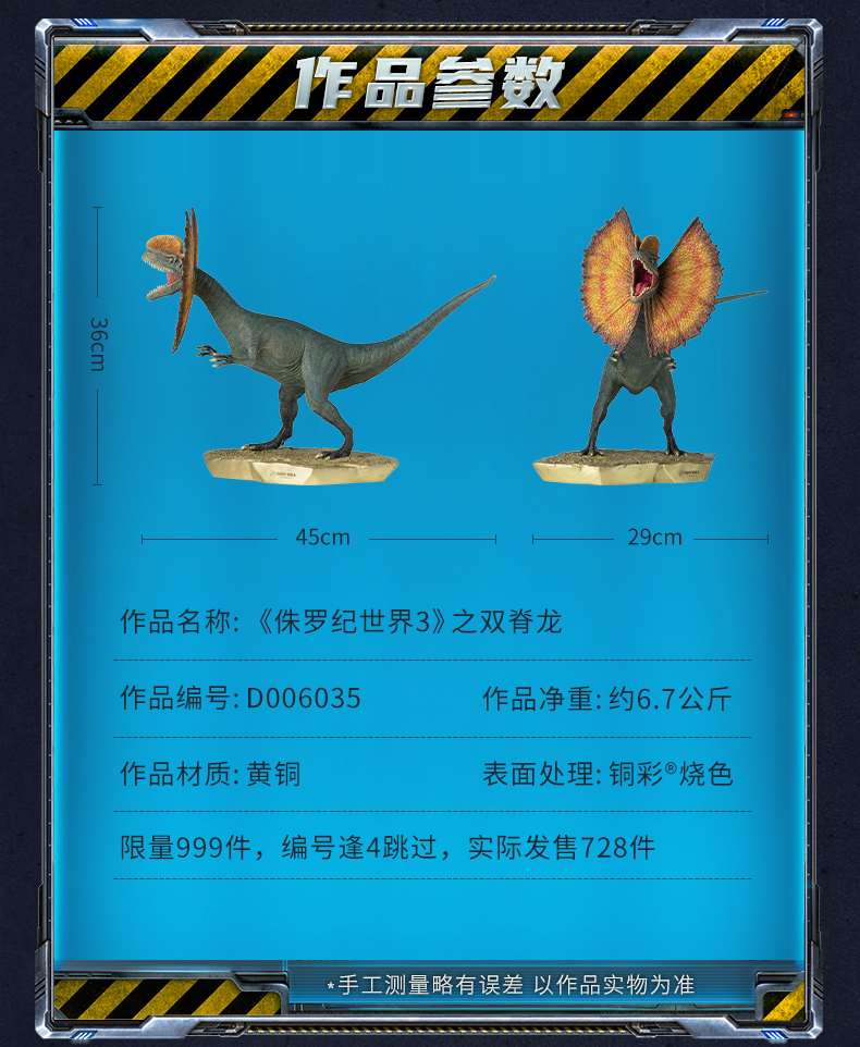 铜师傅 全铜摆件《侏罗纪世界3》之双脊龙 铜工艺品礼品桌面摆件
