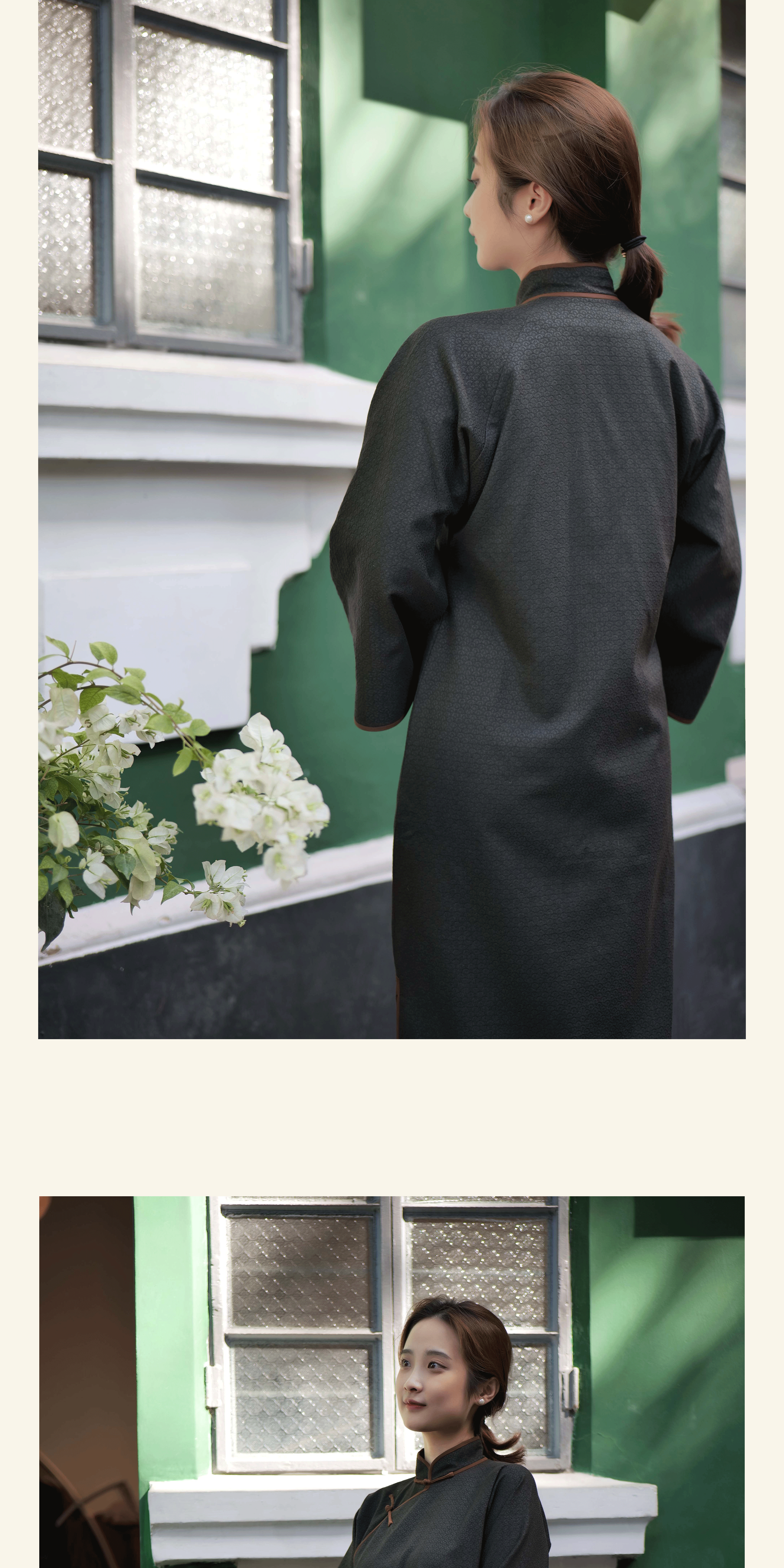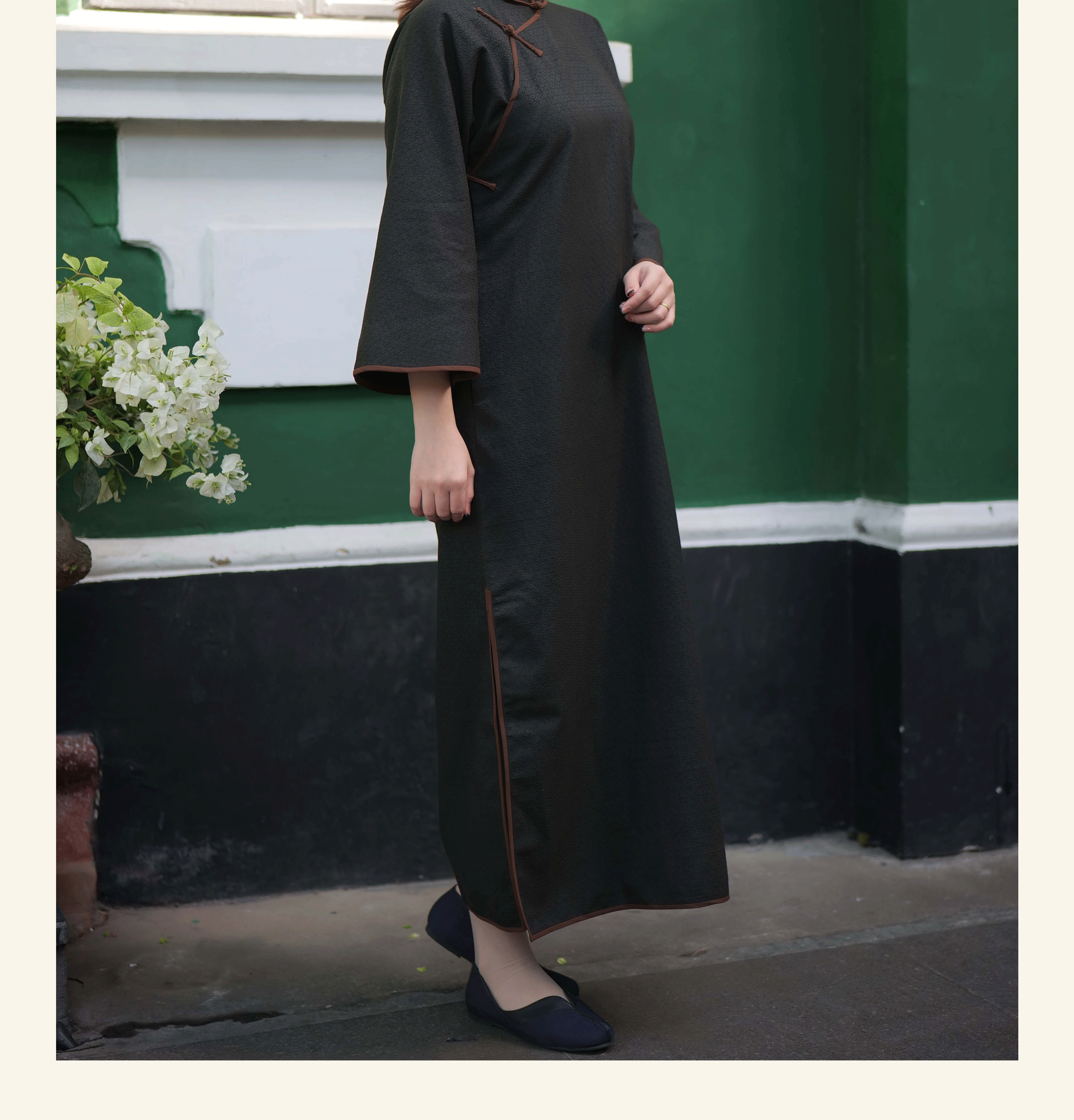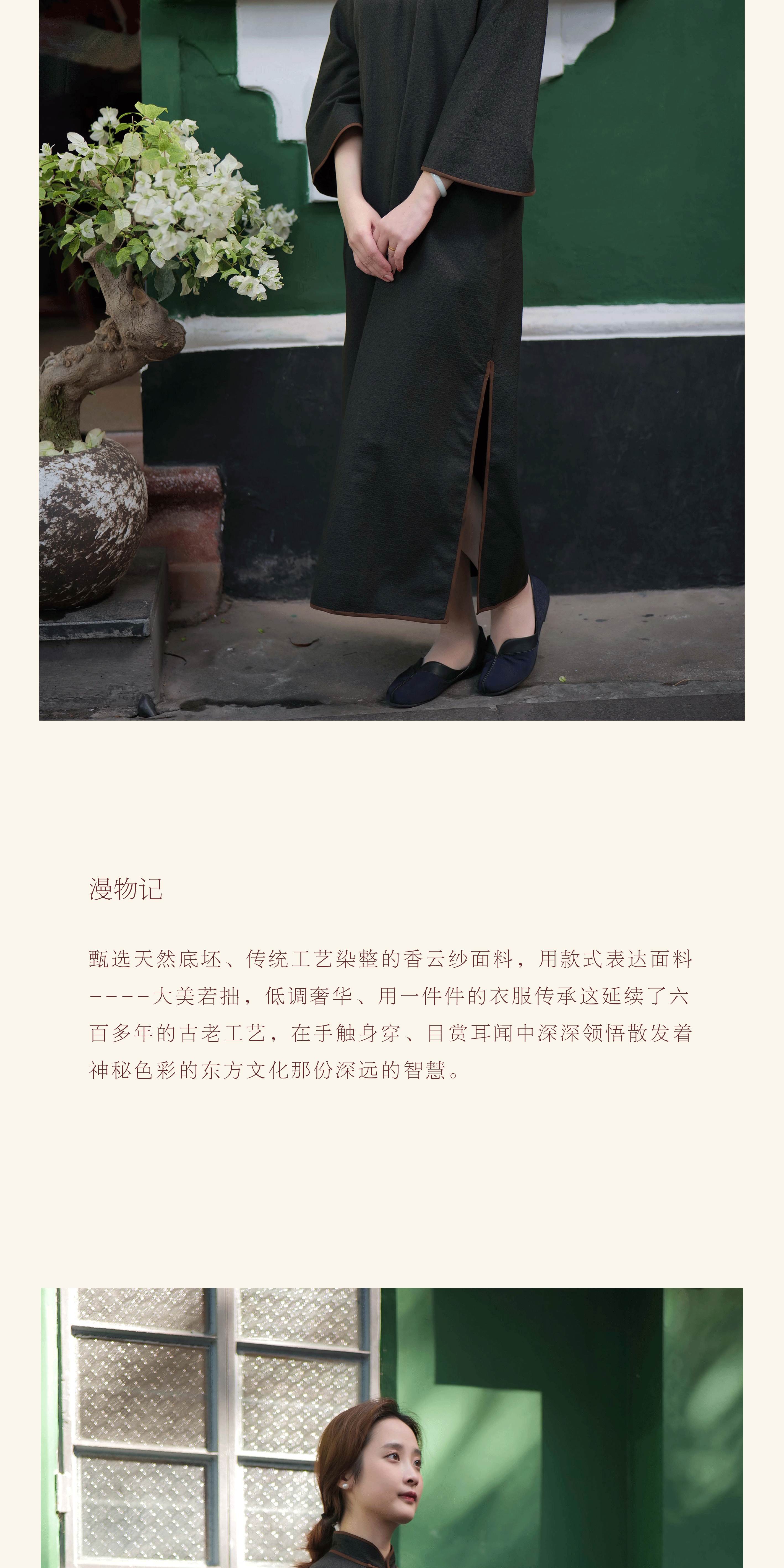漫物记香云纱柞蚕丝喇叭袖连肩旗袍XYS-W030