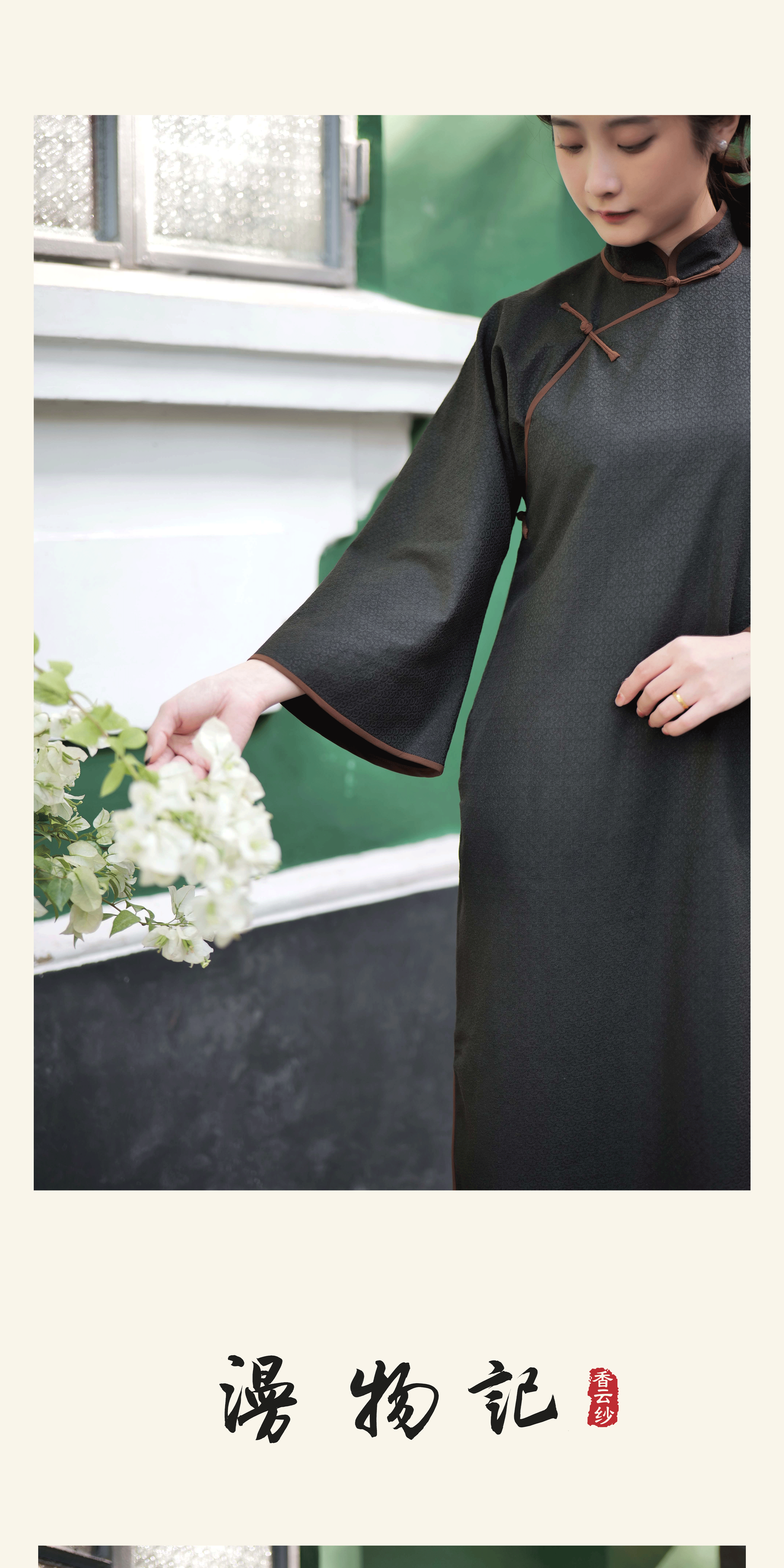漫物记喇叭袖三粒扣香云纱旗袍xys-173