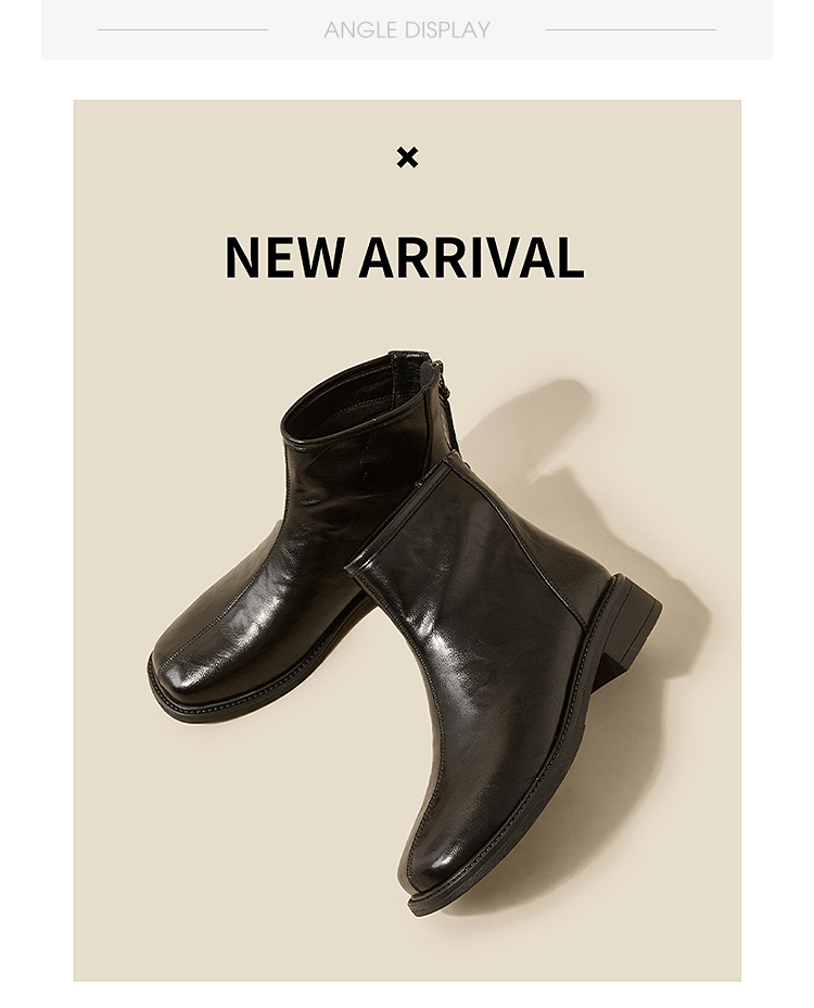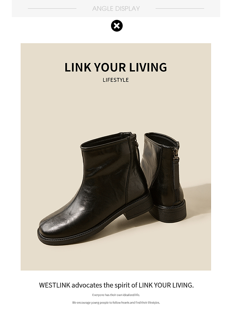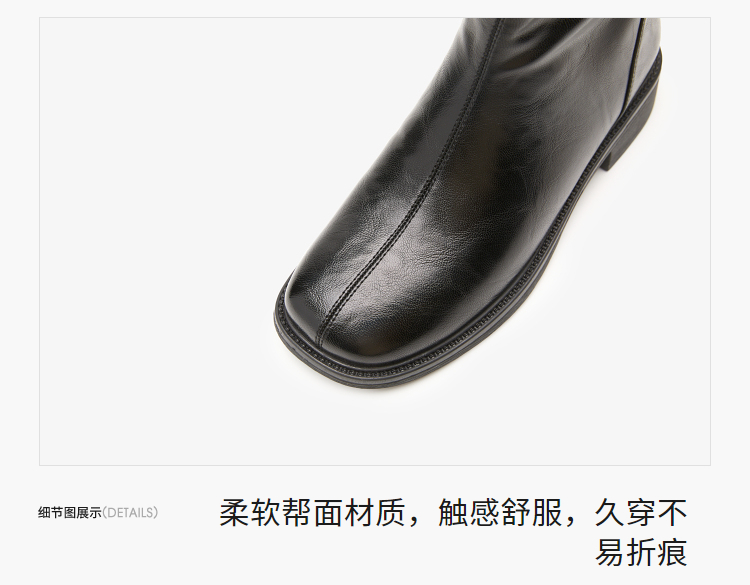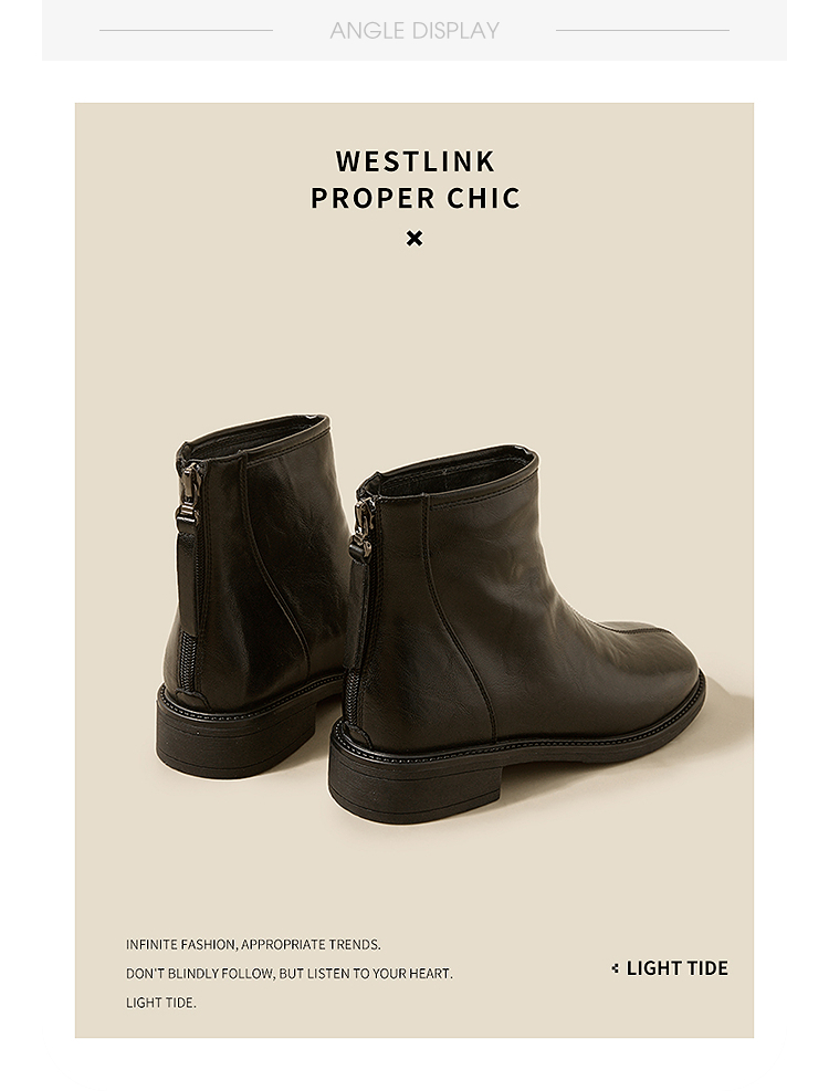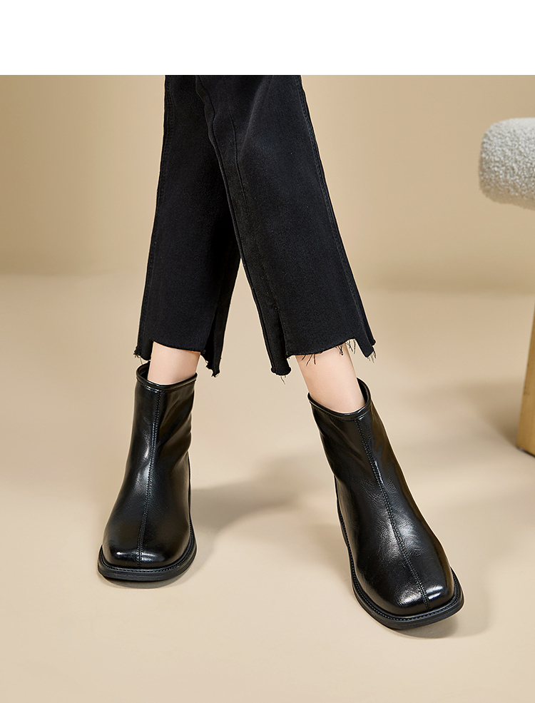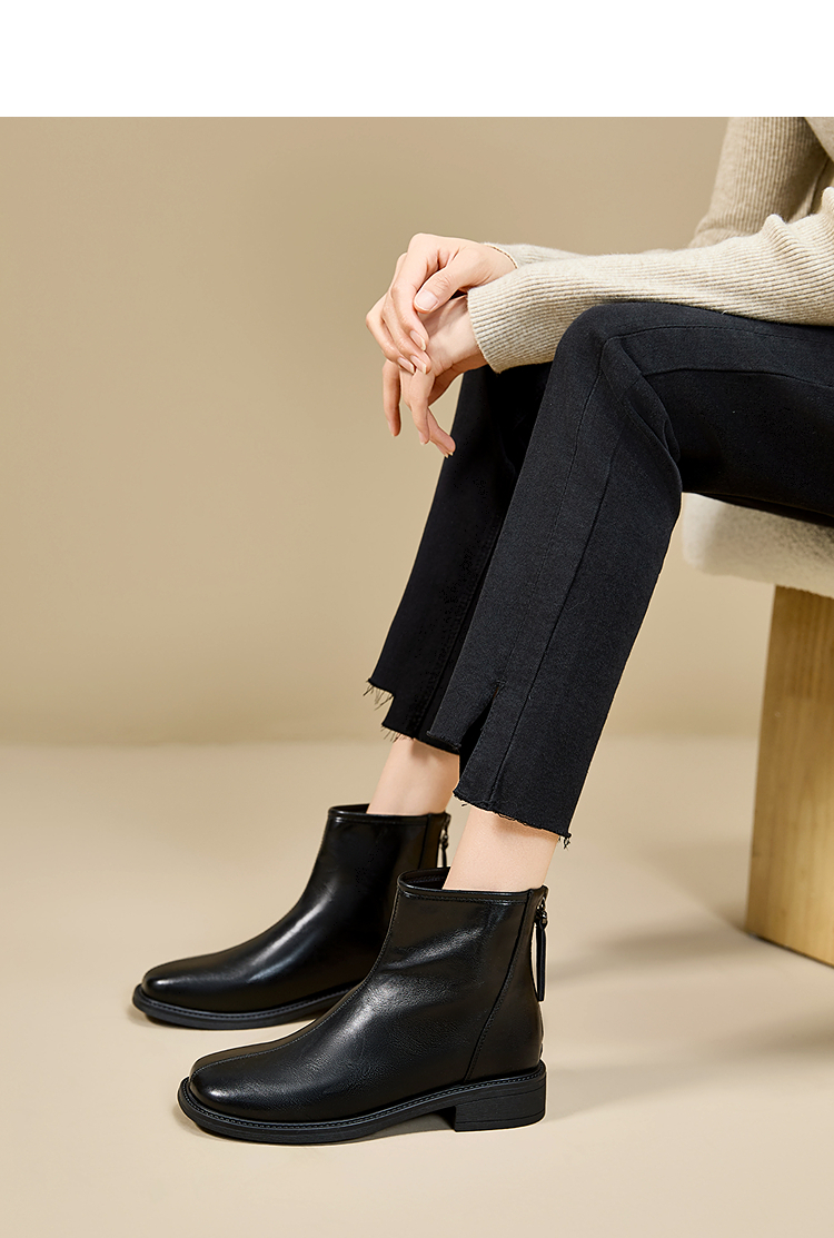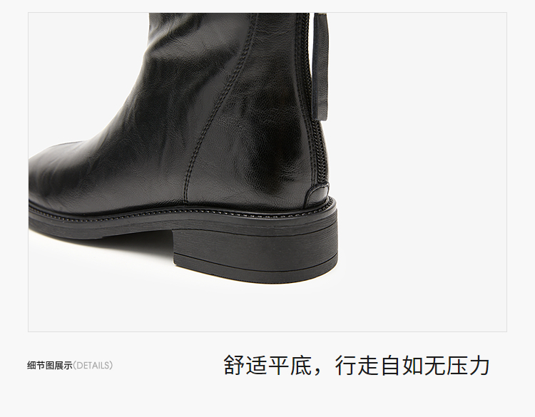 西遇粗跟瘦瘦靴女新款秋冬舒适中跟通勤单靴子圆头黑色短靴V2257254