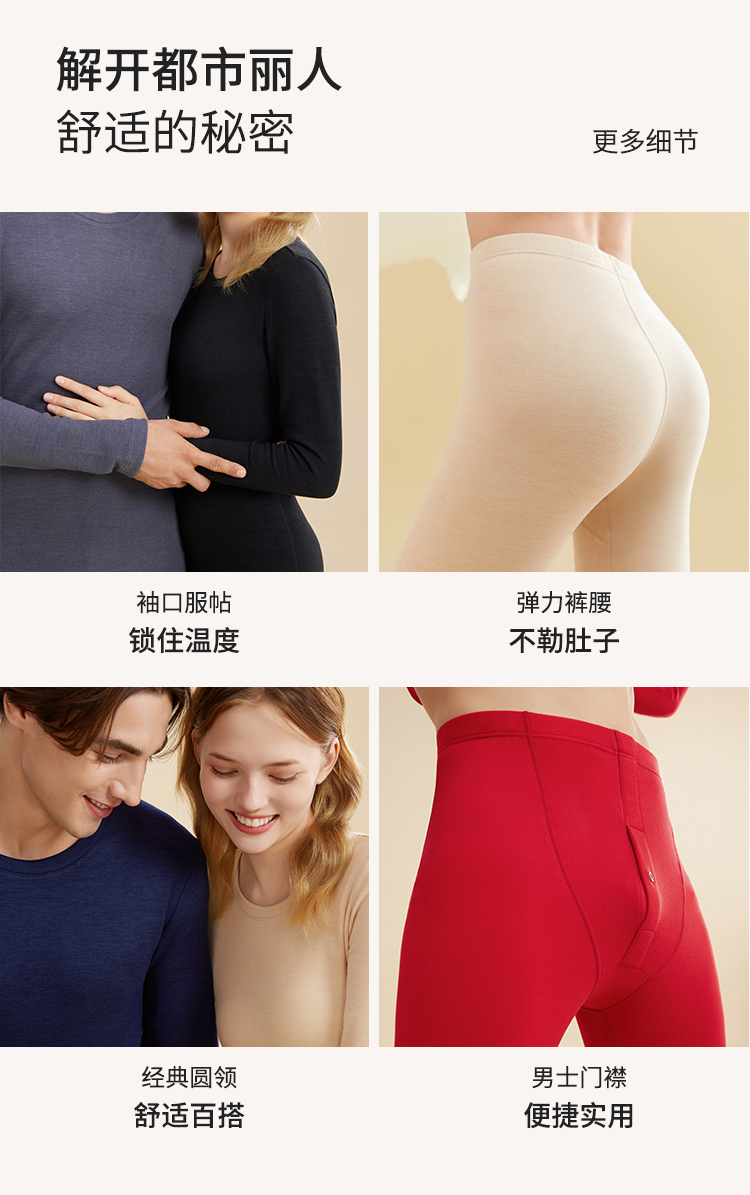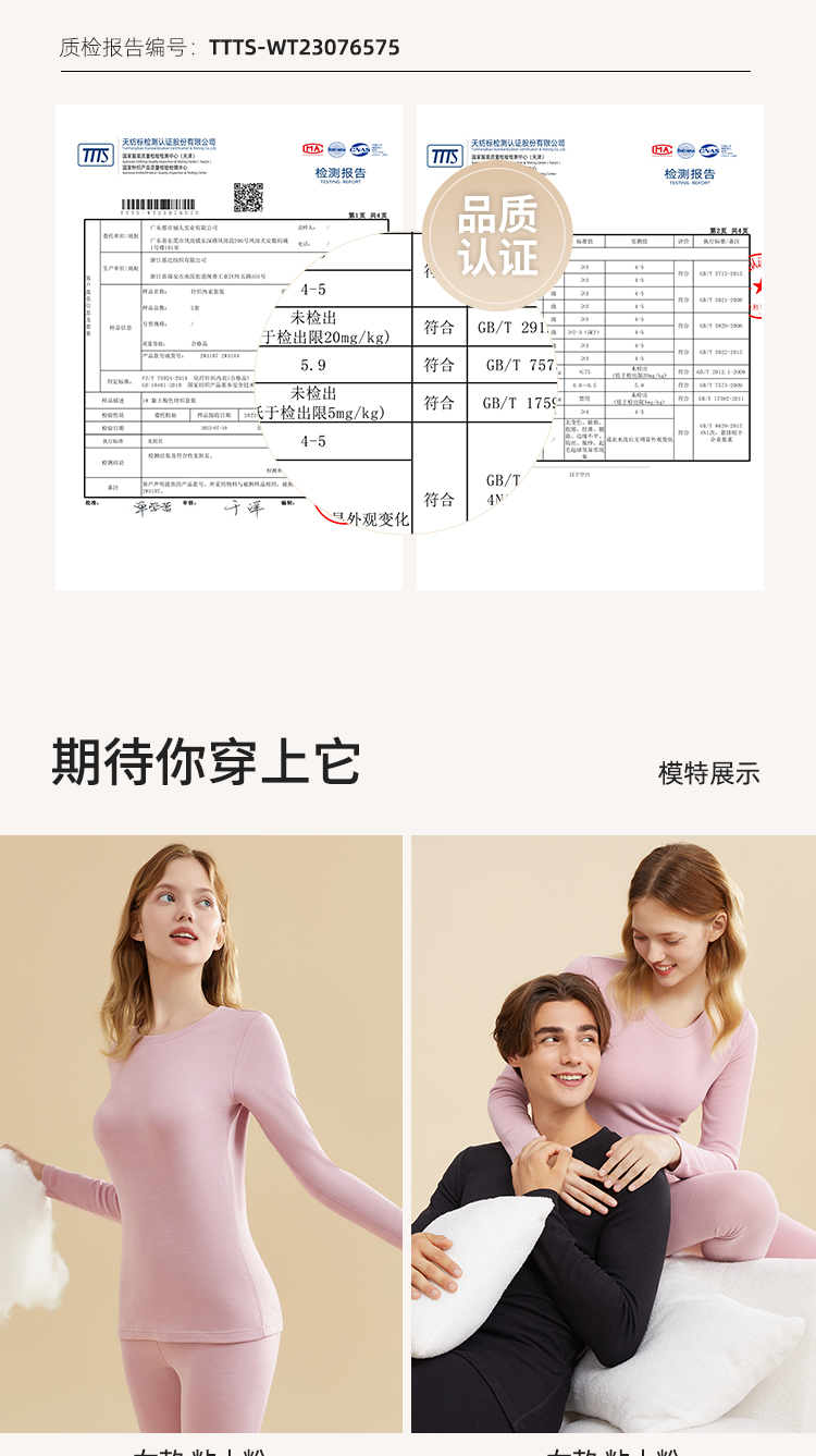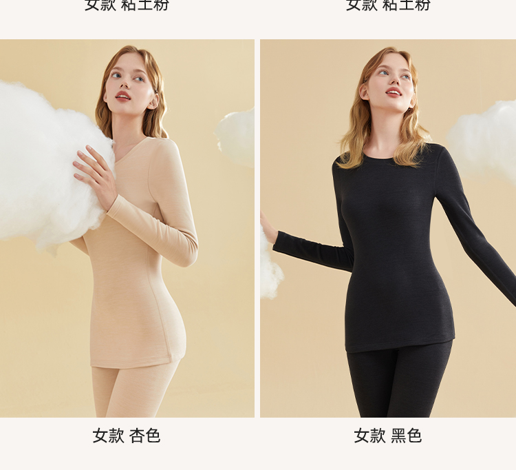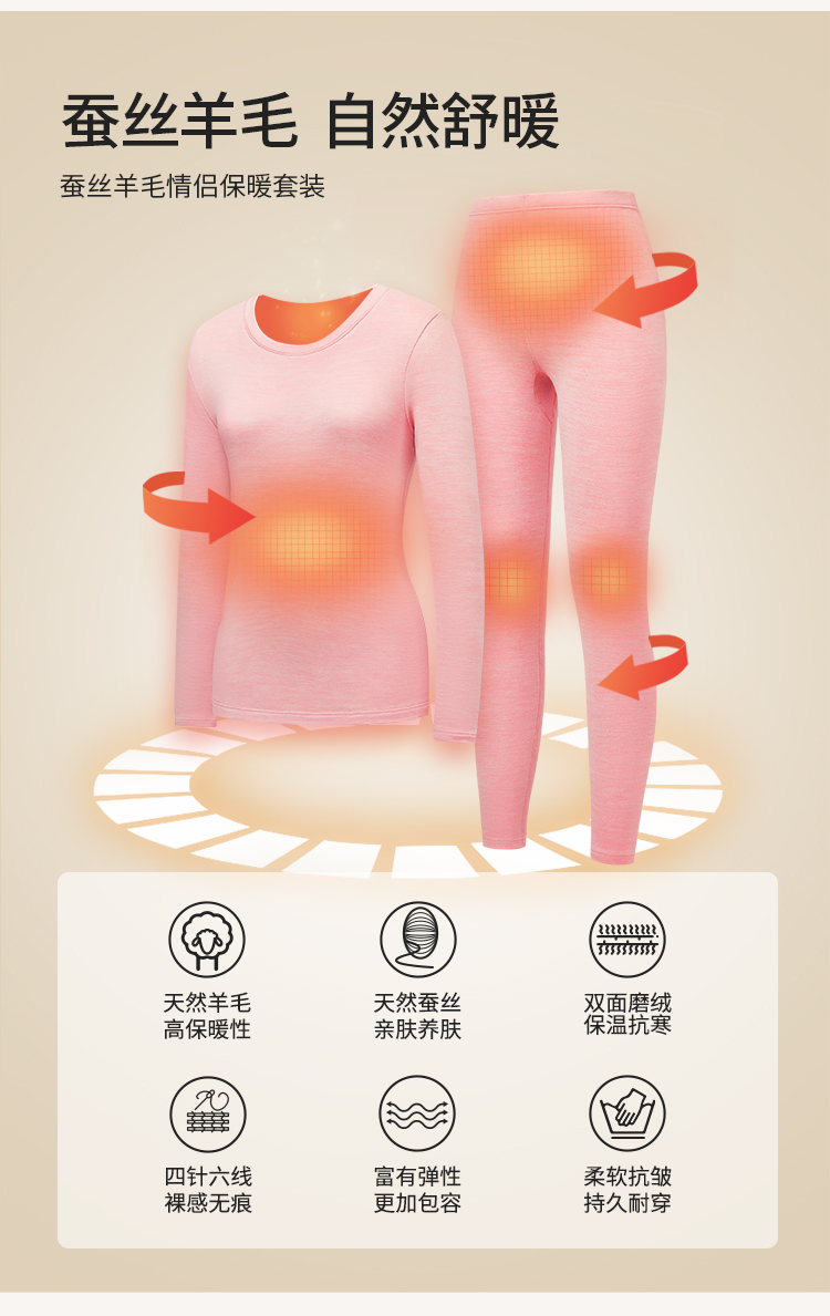 都市丽人女士发热纤维套装圆领蚕丝羊毛绒保暖衣2W31A4