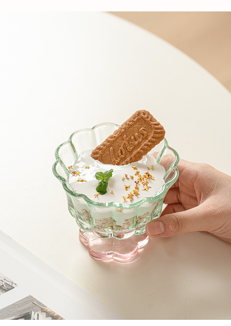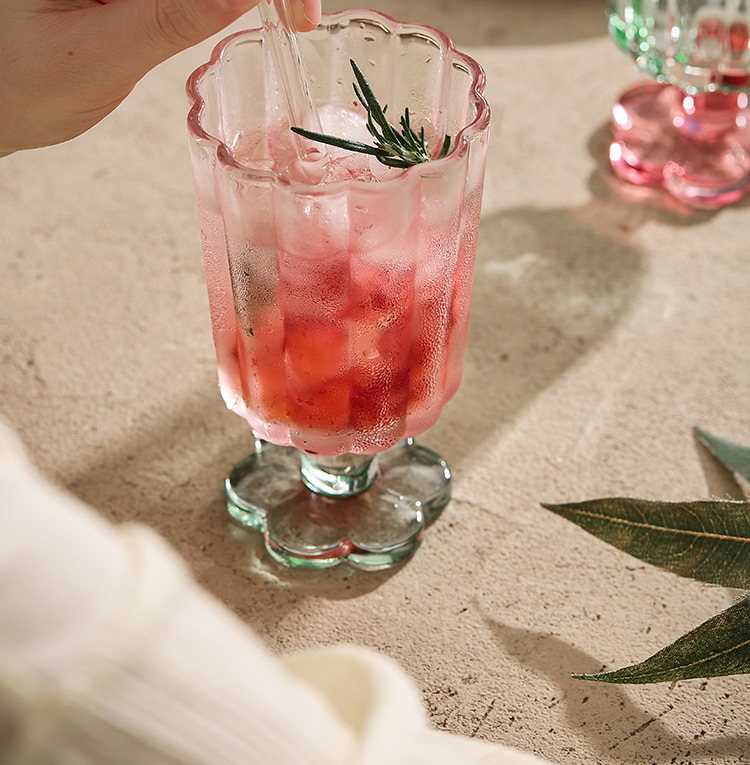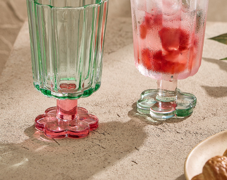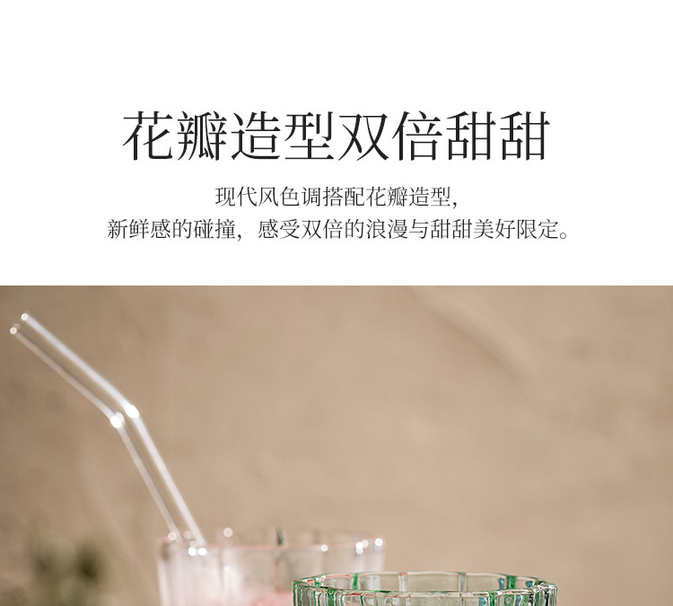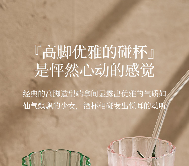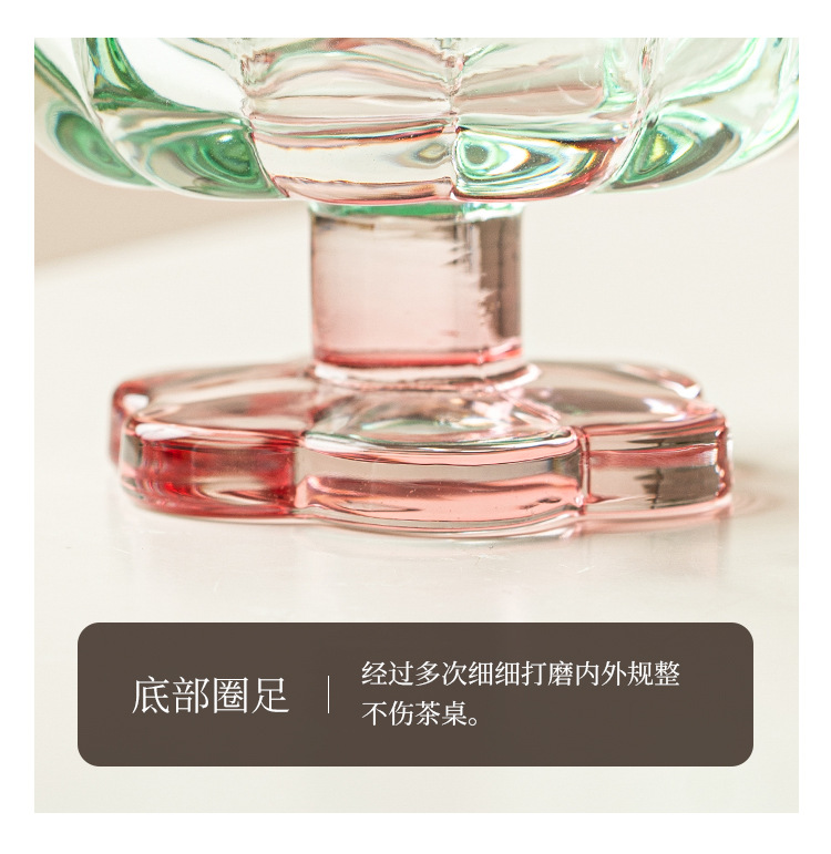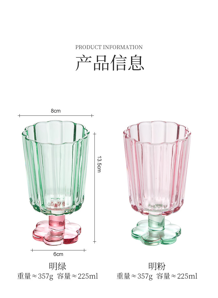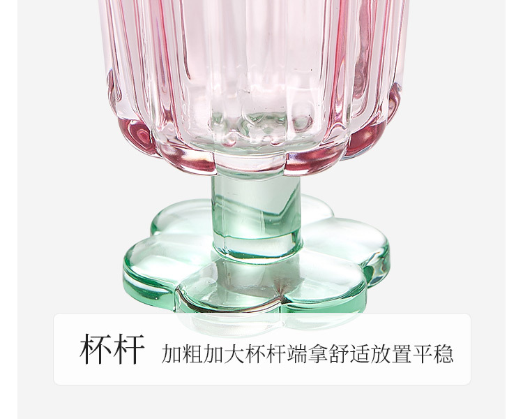 【景德镇精选花开玻璃杯】中古拼色高脚玻璃杯ins风高颜值花朵香槟红酒冰淇淋冷饮喝水杯子