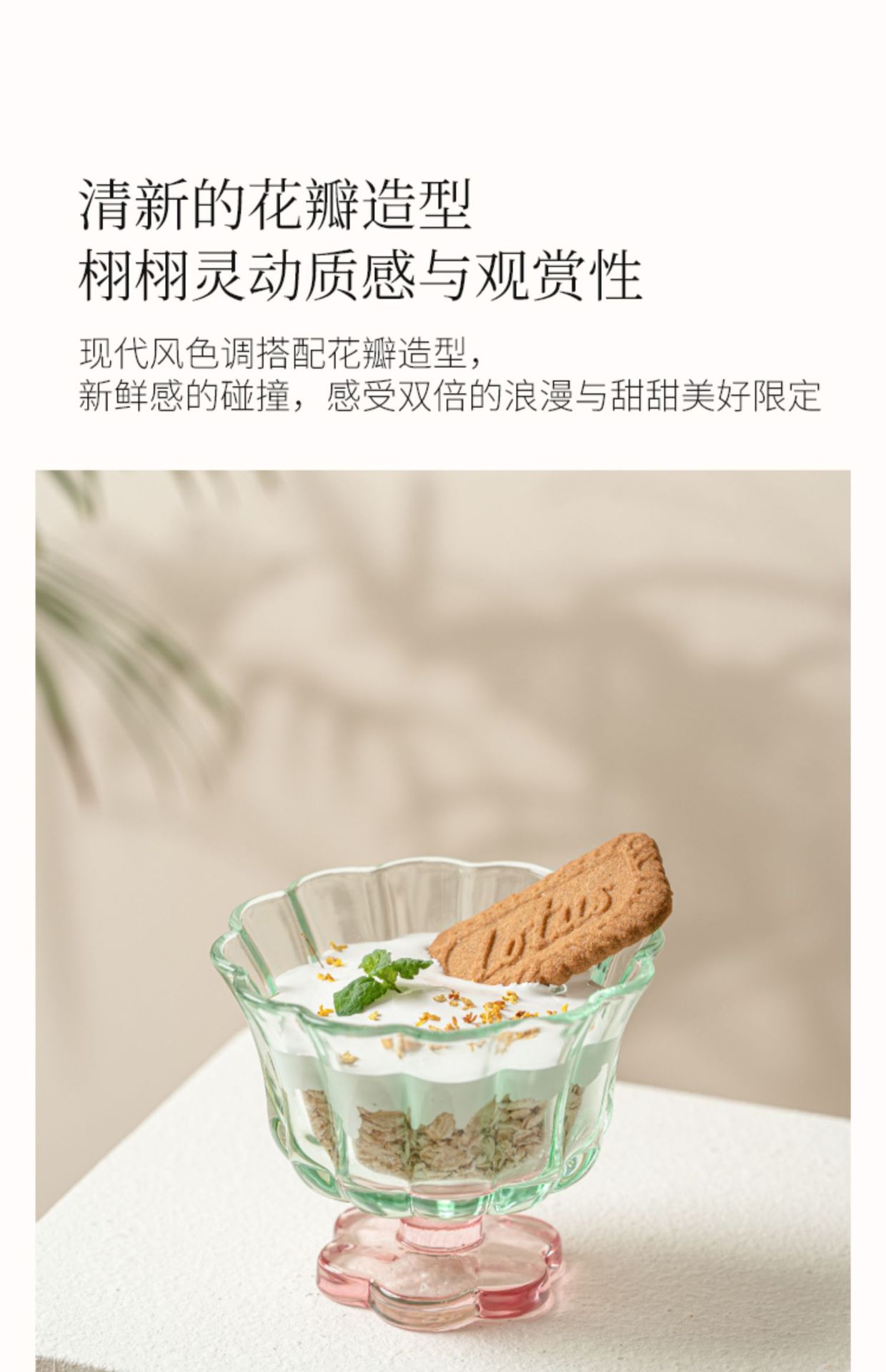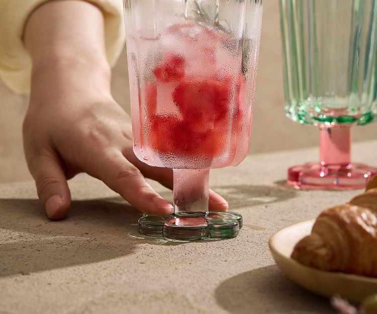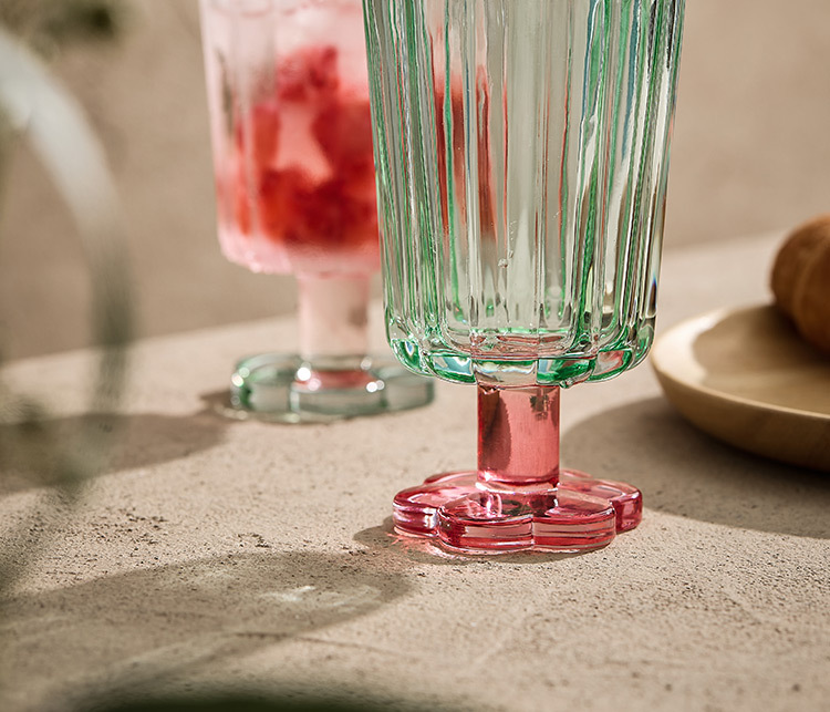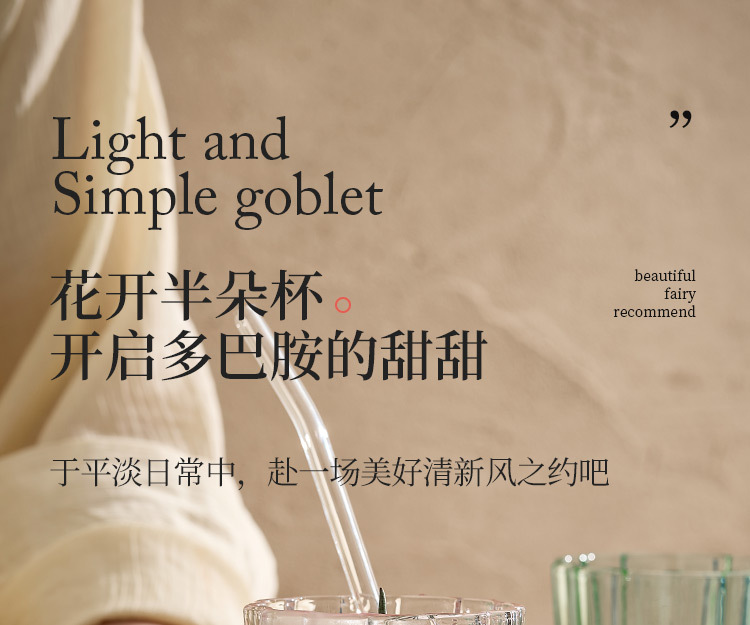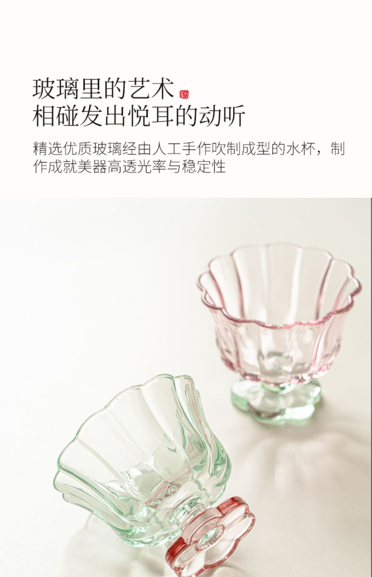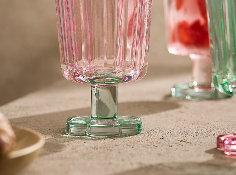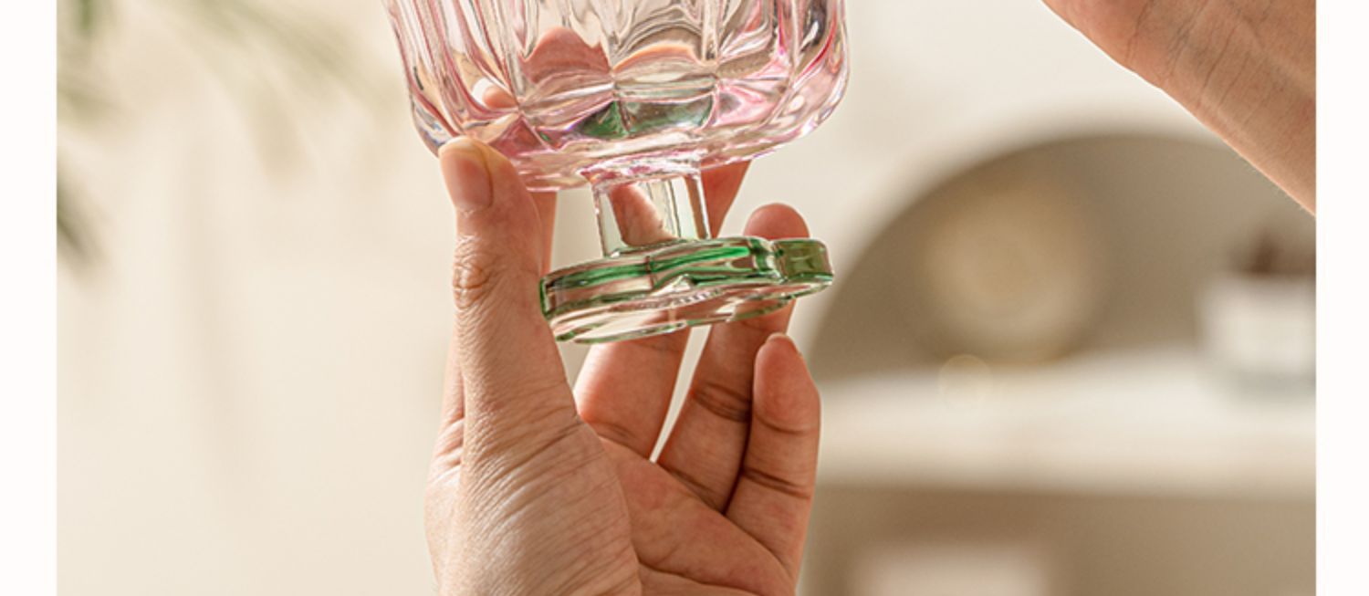 【景德镇精选花开玻璃杯】中古拼色高脚玻璃杯ins风高颜值花朵香槟红酒冰淇淋冷饮喝水杯子