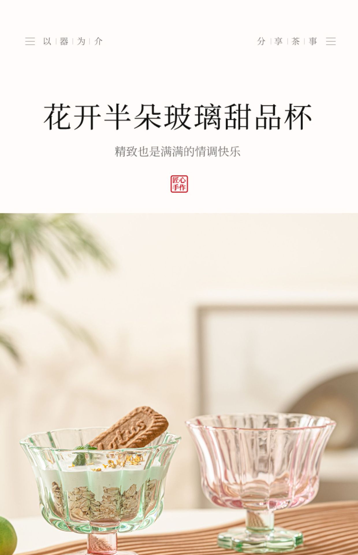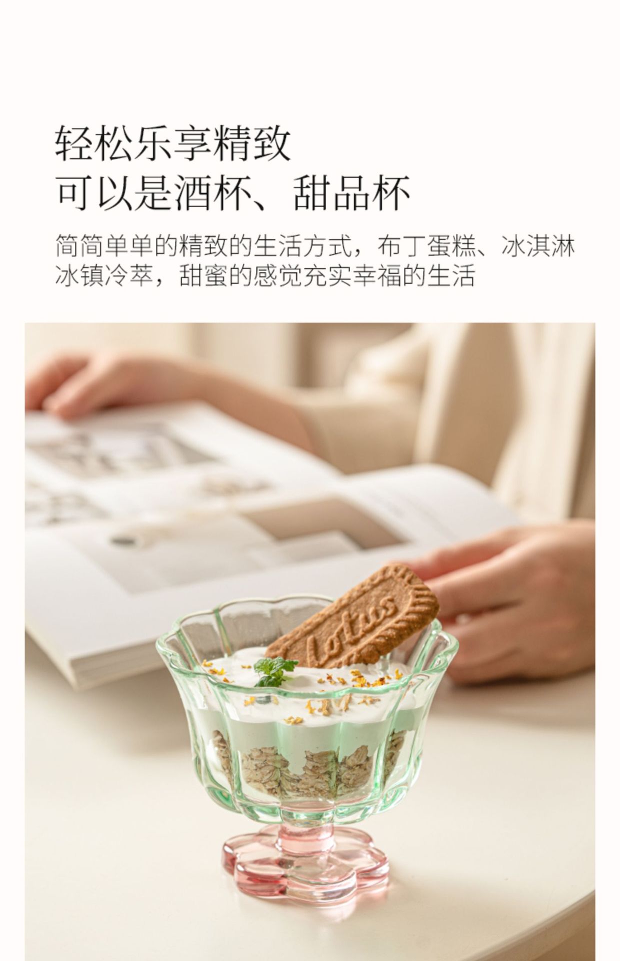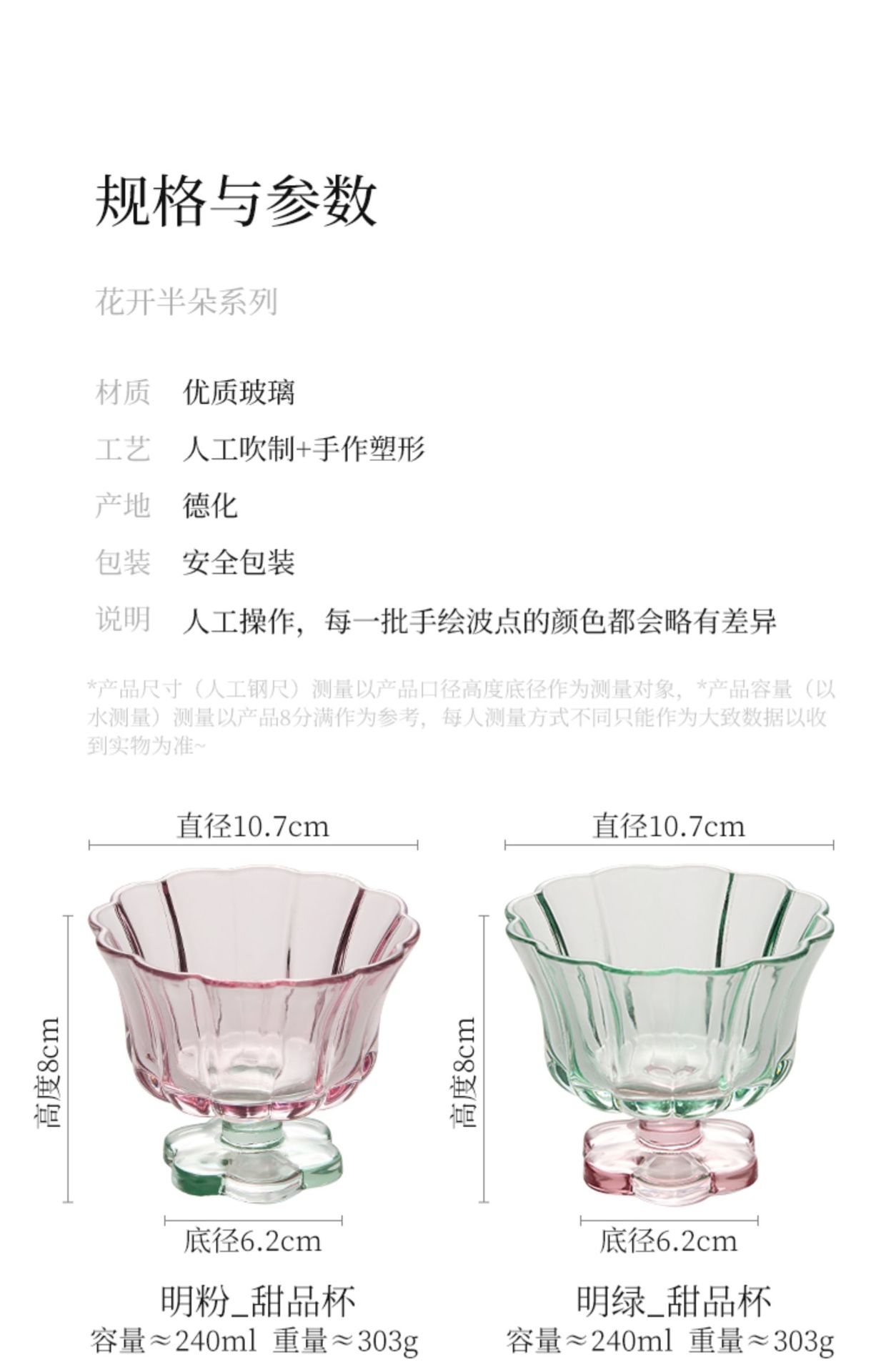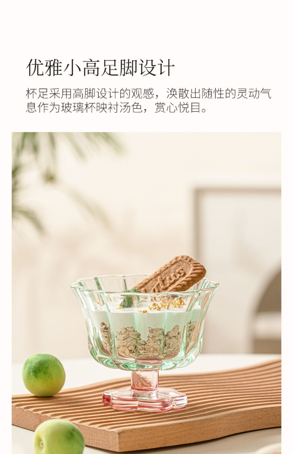 【景德镇精选花开玻璃杯】中古拼色高脚玻璃杯ins风高颜值花朵香槟红酒冰淇淋冷饮喝水杯子