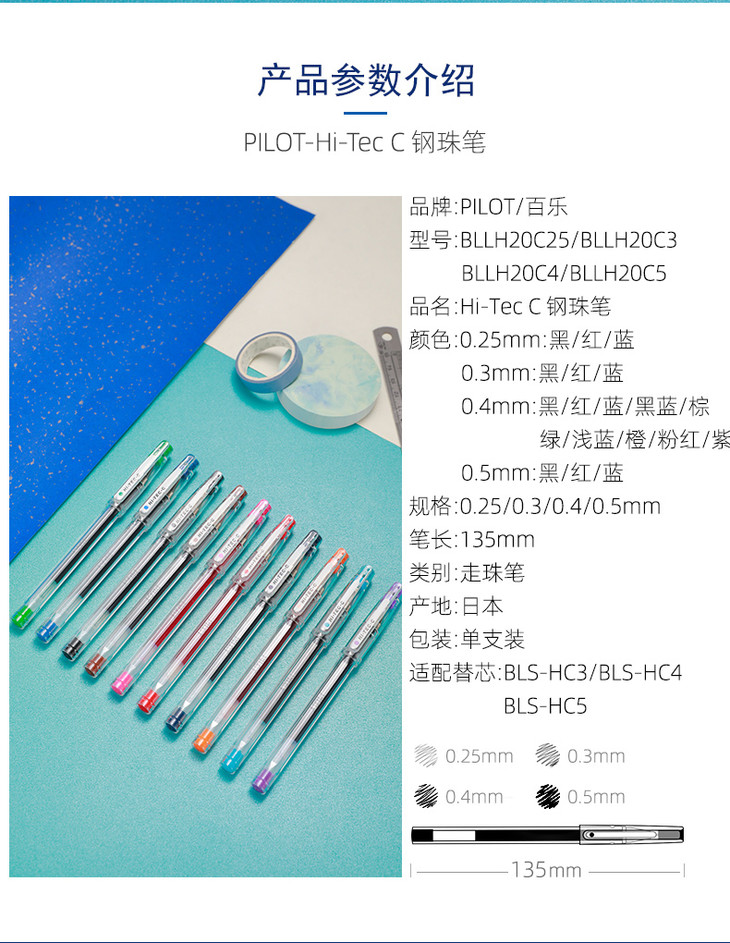 PILOT/百乐BLLH20C3钢珠笔中性笔针管式啫喱笔