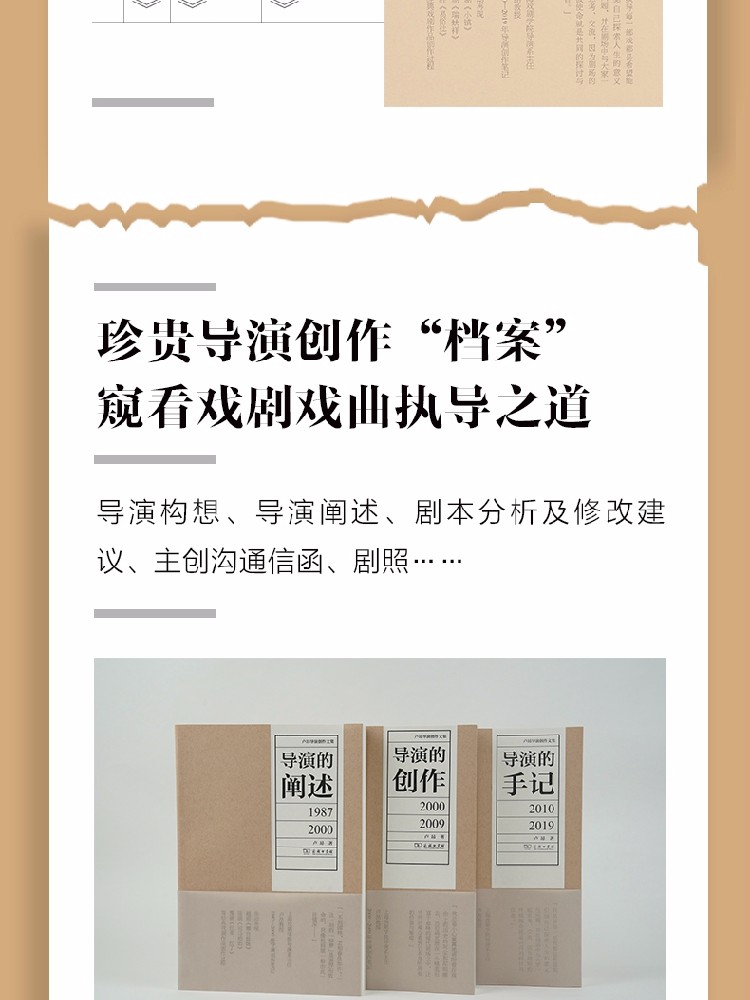 编辑推荐:《导演的创作:2000—2009》精选上海戏剧学院导演系主任卢昂教授2000—2009年间21部戏剧作品的导演创作笔记,并收录导演阐述、导演构想、剧本分析及修改建议,以及与各个艺术创作部门沟通信函等珍贵资料,详细、专业、生动,是*佳的研习戏剧创作的书籍。