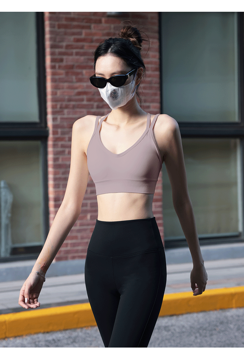 beemen一体式文胸性感美背外穿健身跑步运动内衣聚拢防震速干瑜伽背心