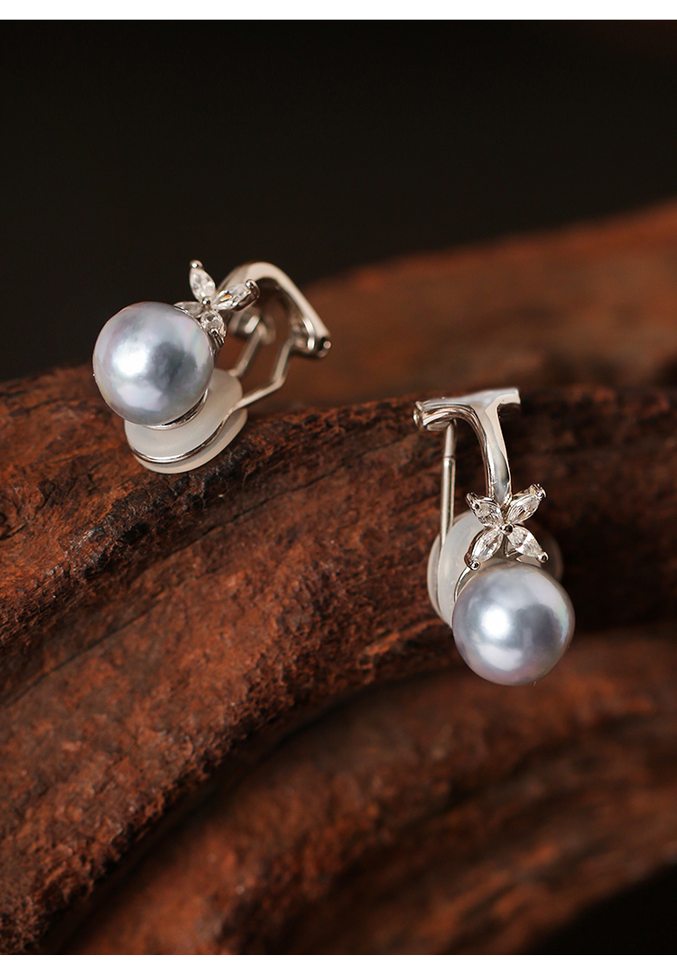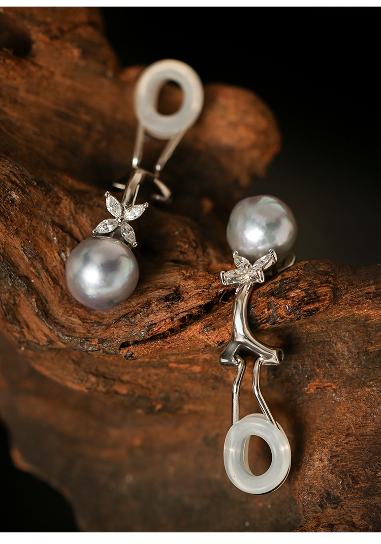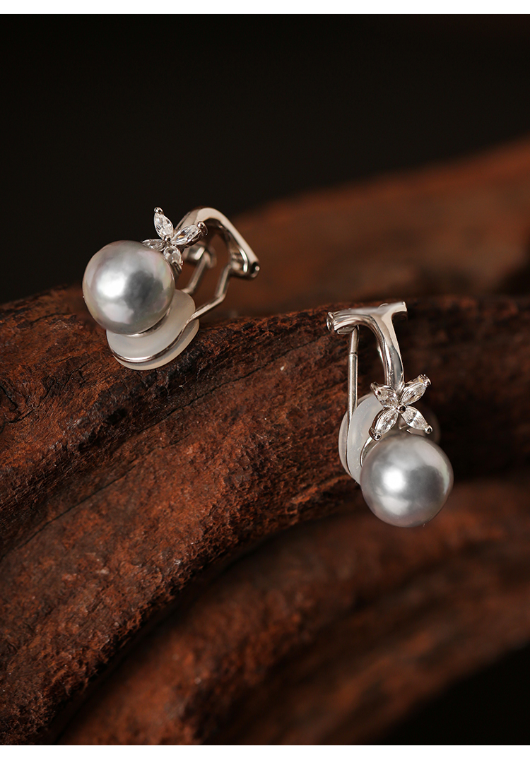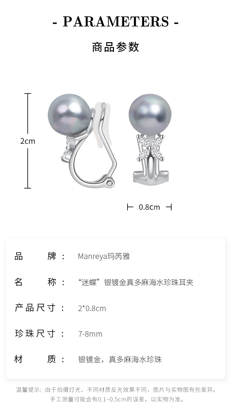 Manreya玛芮雅迷蝶银镀金真多麻海水珍珠耳夹无耳洞耳饰