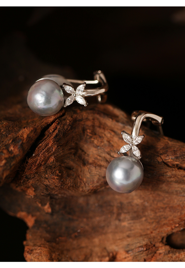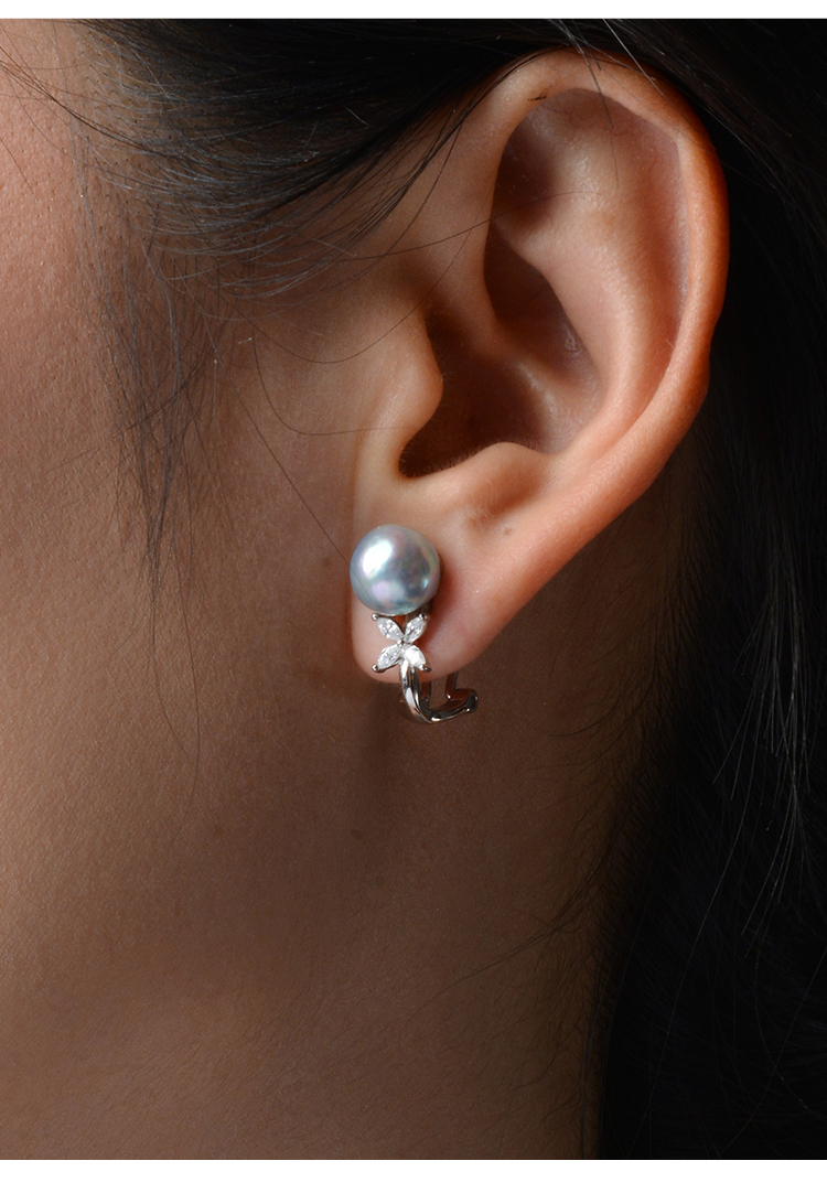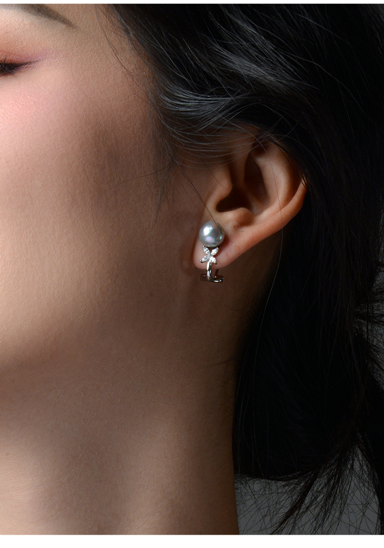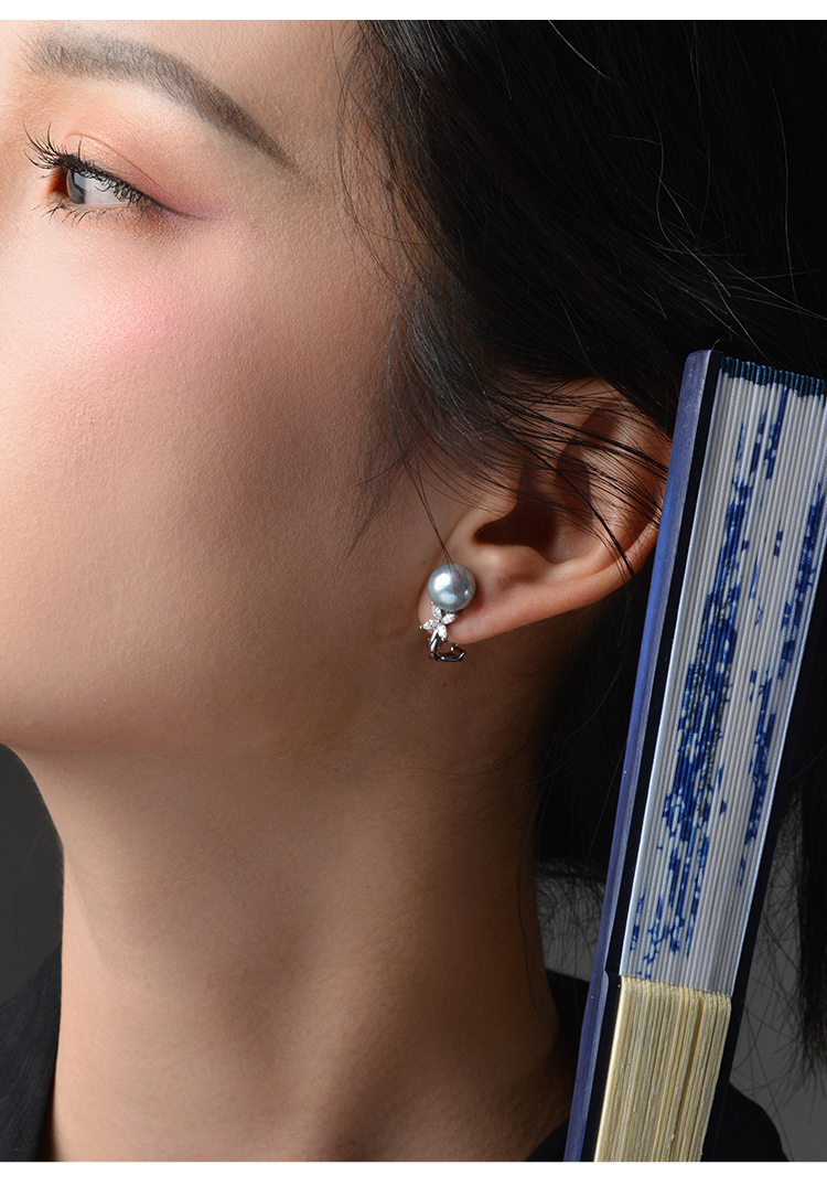 Manreya玛芮雅迷蝶银镀金真多麻海水珍珠耳夹无耳洞耳饰