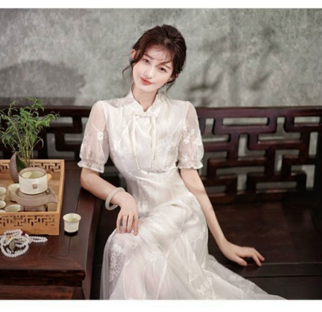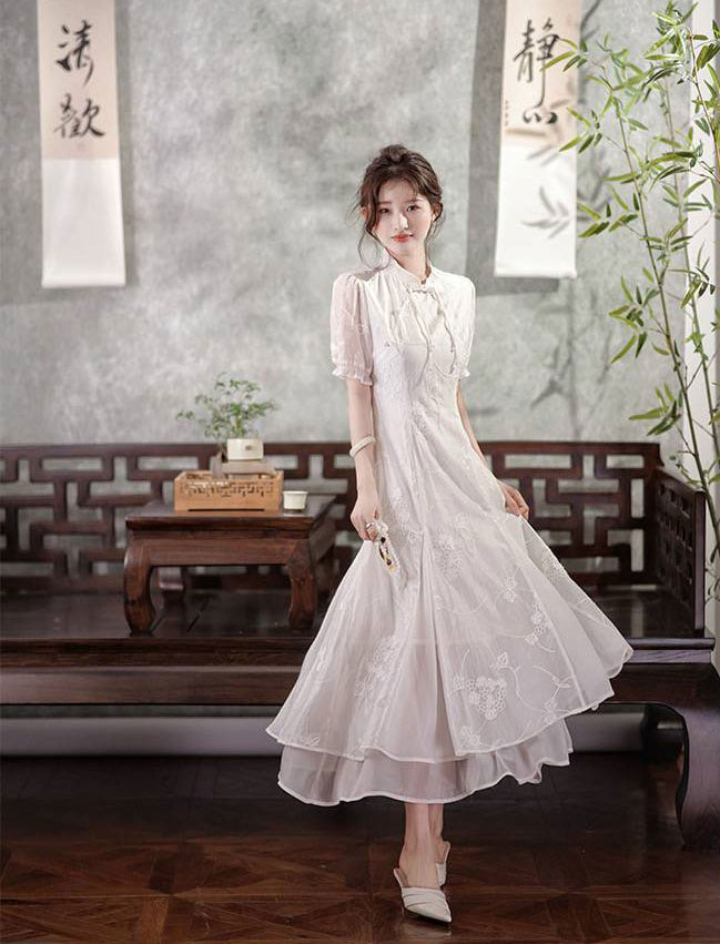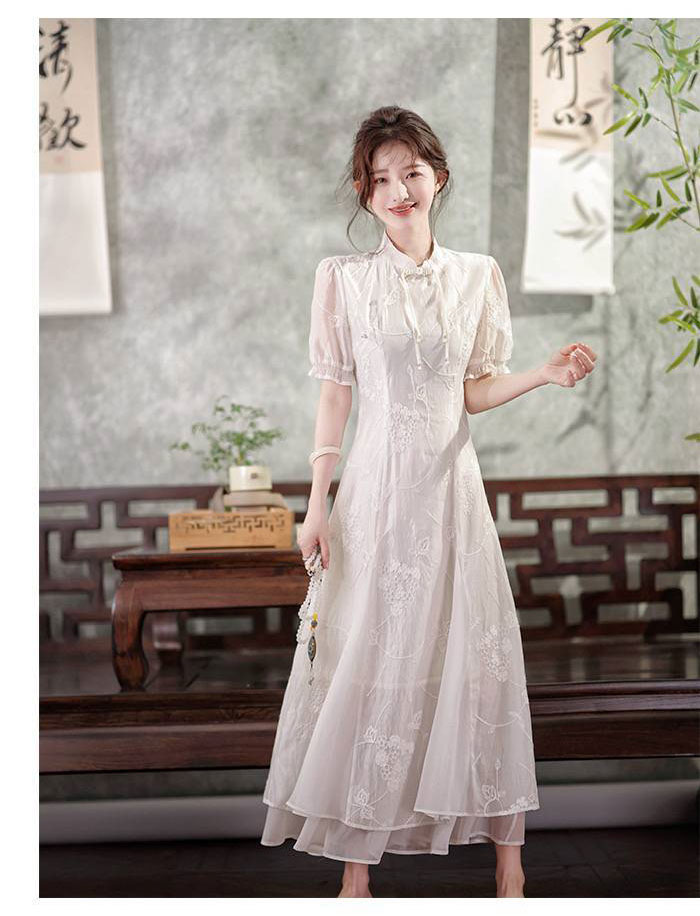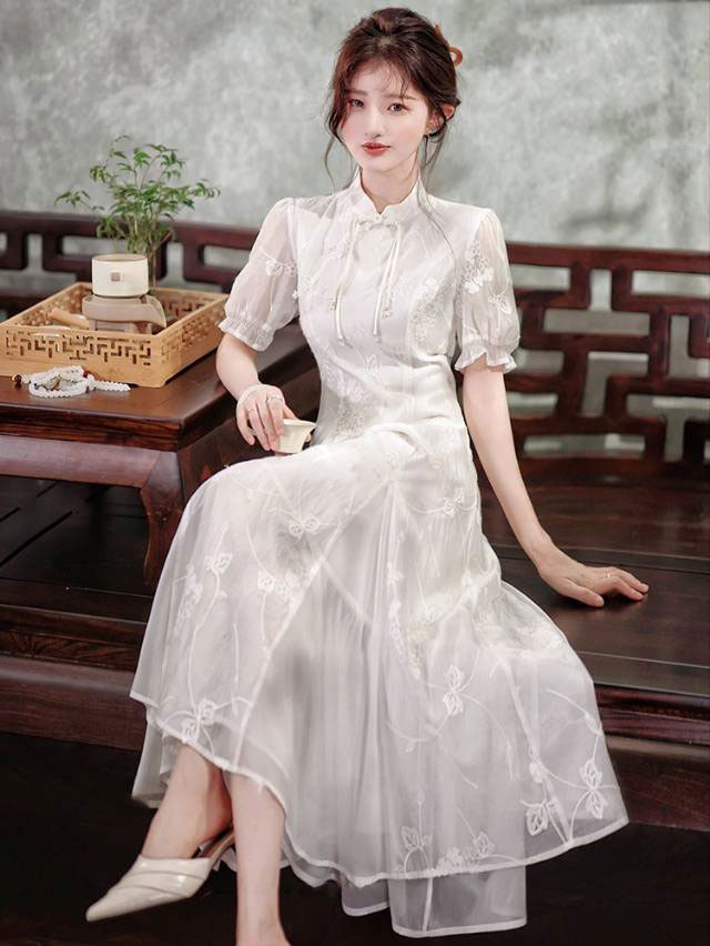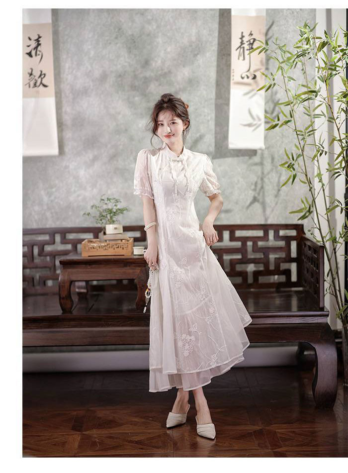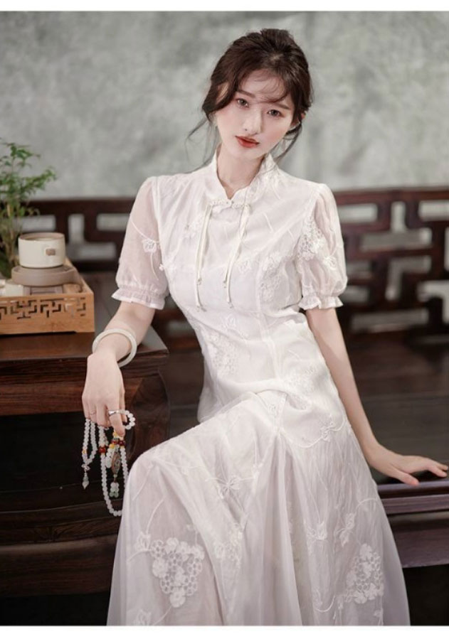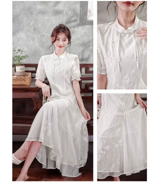 品名:MOMOTIABIN 白玉仙气刺绣旗袍连衣裙-2839