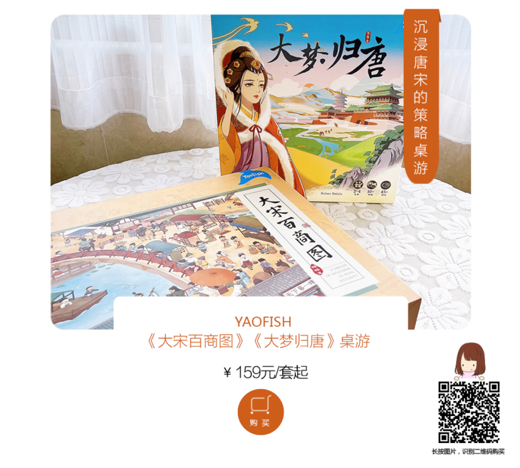 今天给大家推荐的这两款桌游,是YAOFISH的《大宋百商图》和《大梦归唐》,有非常详尽的历史背景植入,高度还原北宋繁华的市井商业、和沉浸式体验如何在唐朝长安当信使。