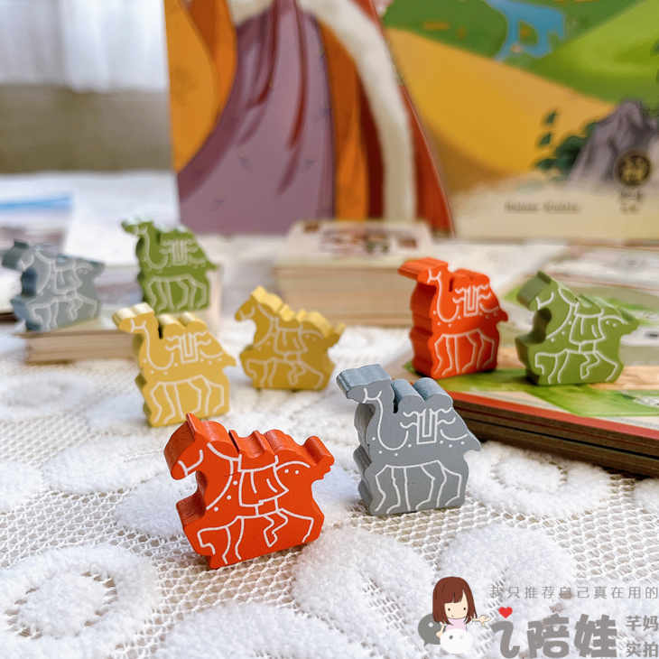 《大梦归唐》的棋子,是骆驼和马两种可选,经过草原和戈壁的交界时,要更换不同的棋子。(这个玩法在我之前推荐的《千年丝路》桌游中也有,陆上用骆驼、海上用船)