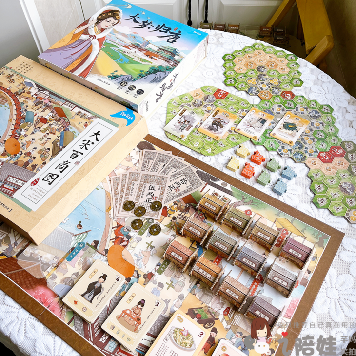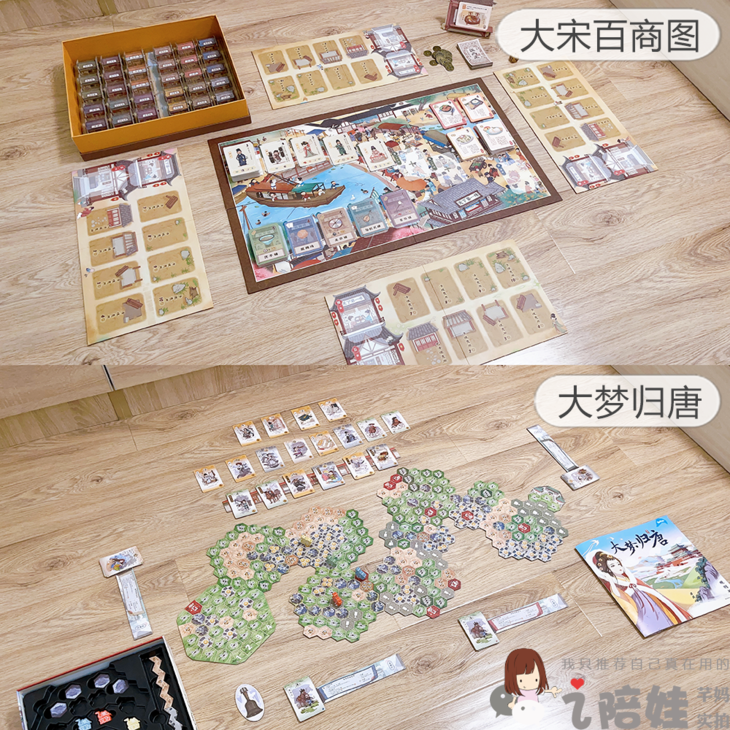 要说这个《大宋百商图》和另外一个桌游《大梦归唐》,也是芊芊最近“重开率”特别高的桌游。为了多玩两局,作业都比平时写的快了。
