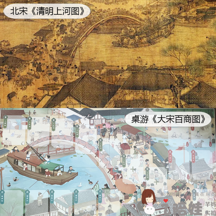 一看游戏底板,芊芊就联想起《清明上河图》最著名的卡桥那一段,而这个游戏的背景,也正是重现汴梁的市井繁华。