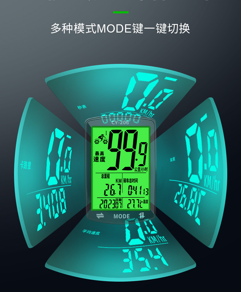 【多功能骑行表】无线公路山地自行车码表骑行测速器里程表单车迈速表记速度时速表。ry