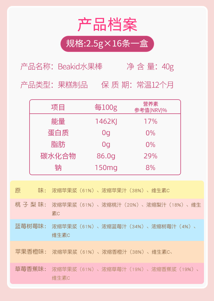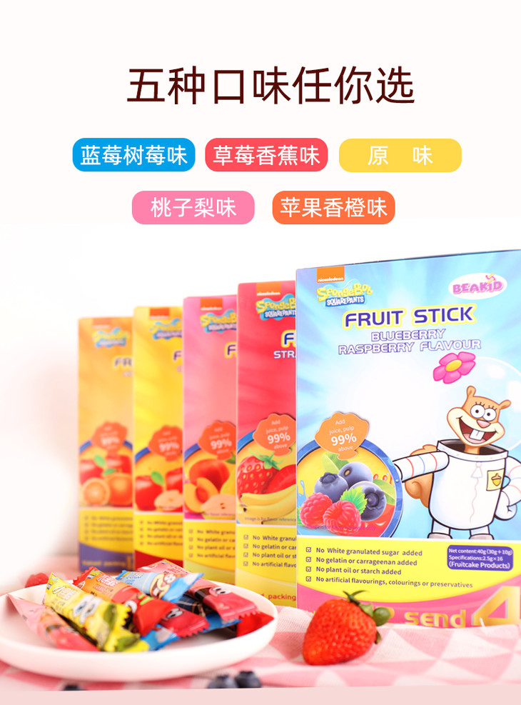 【Beakid海绵宝宝】水果棒 40g*5