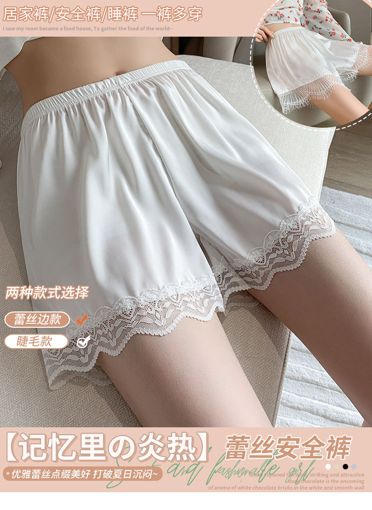 买一送一白色安全裤女防走光夏季薄款冰丝打底裤可外穿不卷边宽松蕾丝花边