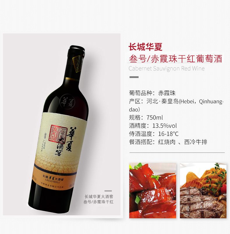 中粮长城华夏大酒窖伍号 赤霞珠干红葡萄酒 整箱750ml*6瓶包邮