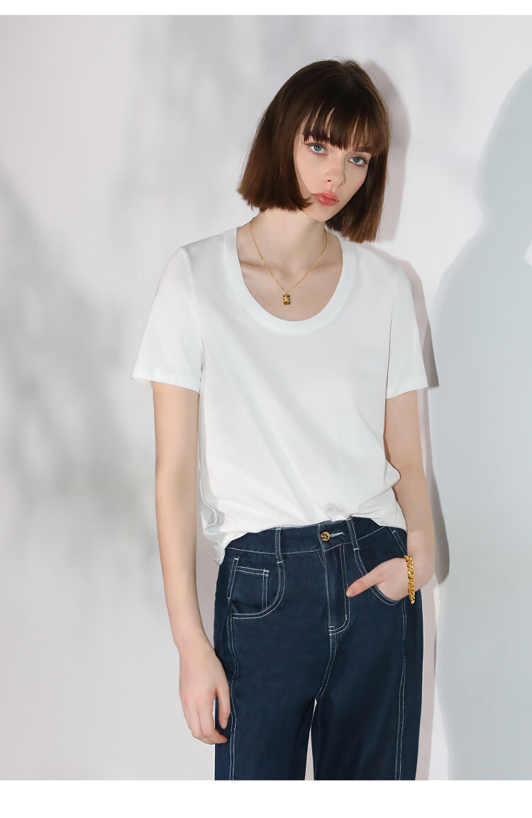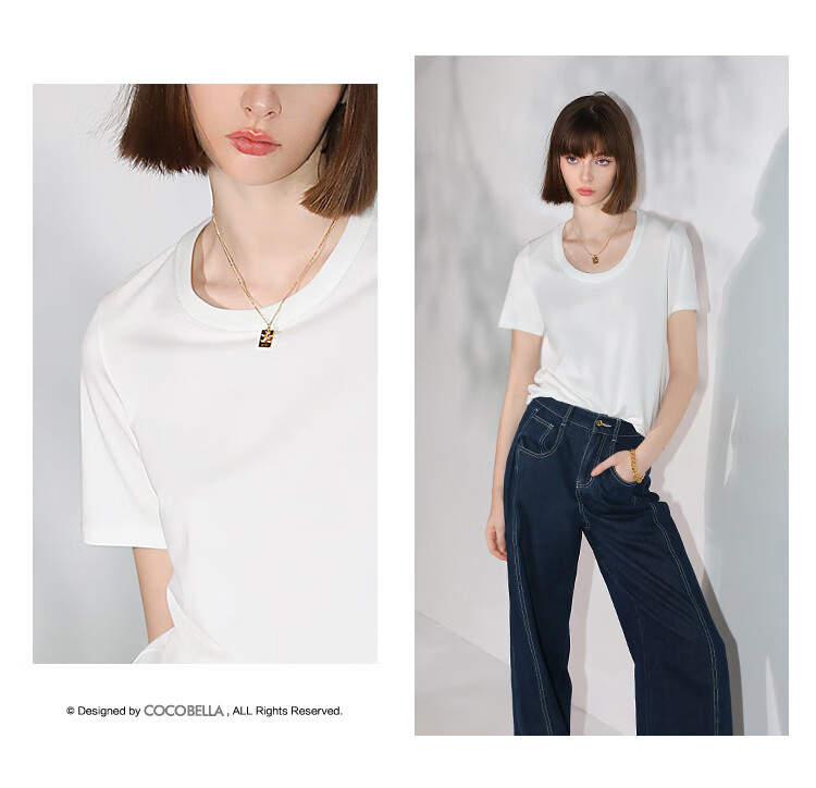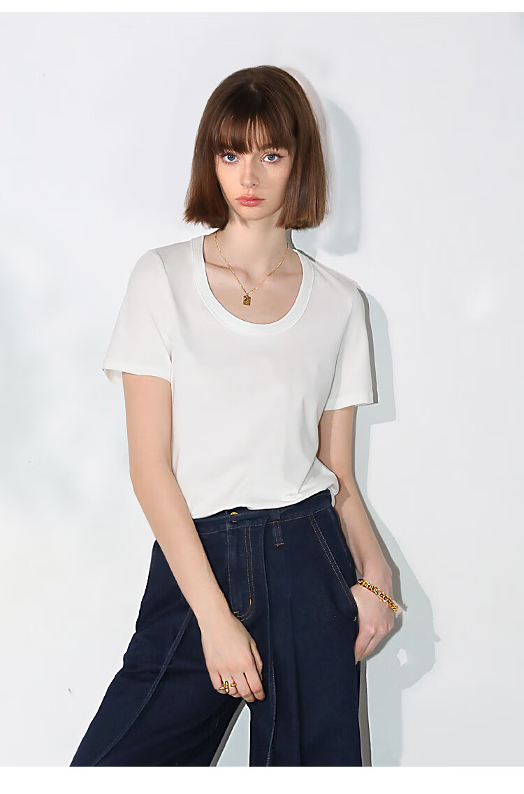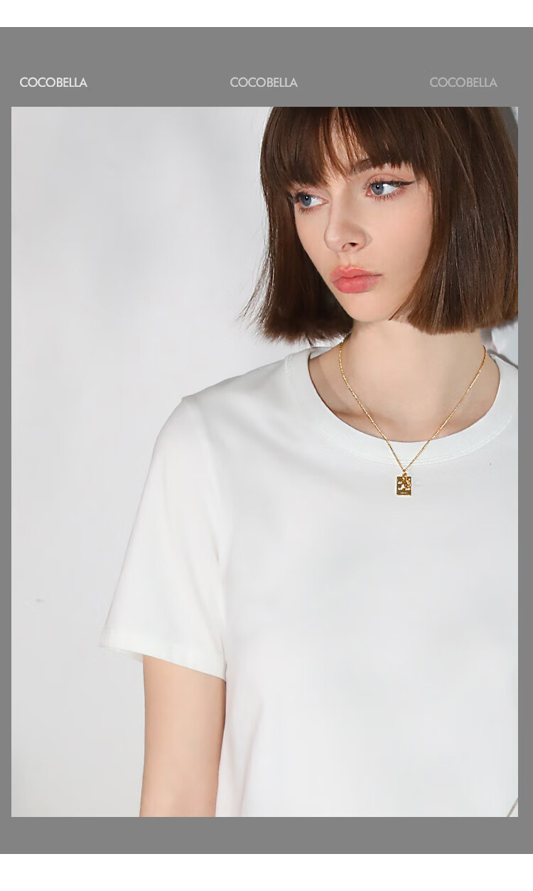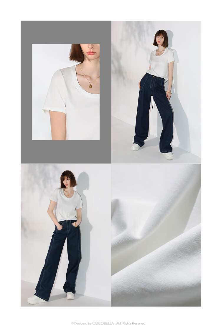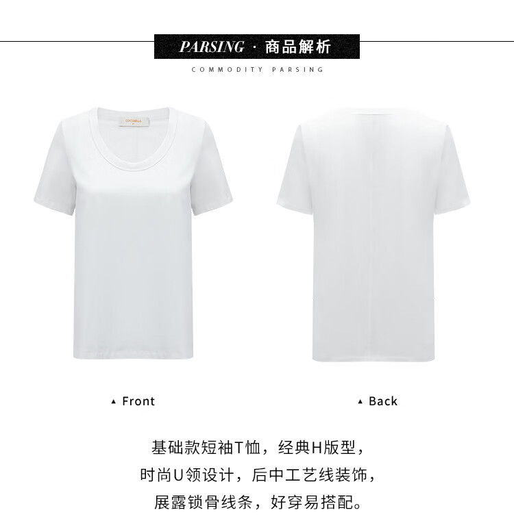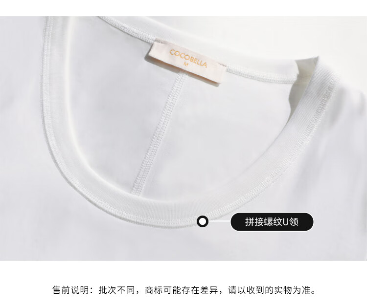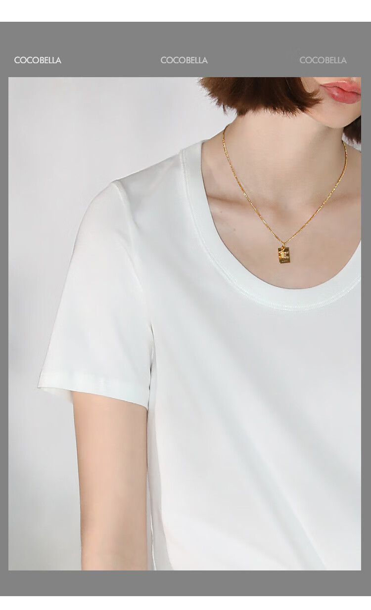 COCOBELLA科技三防易打理白色防污渍短袖T恤女U领上衣TS117