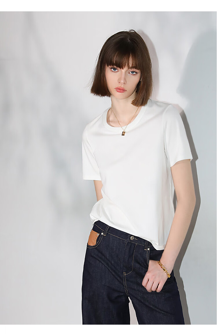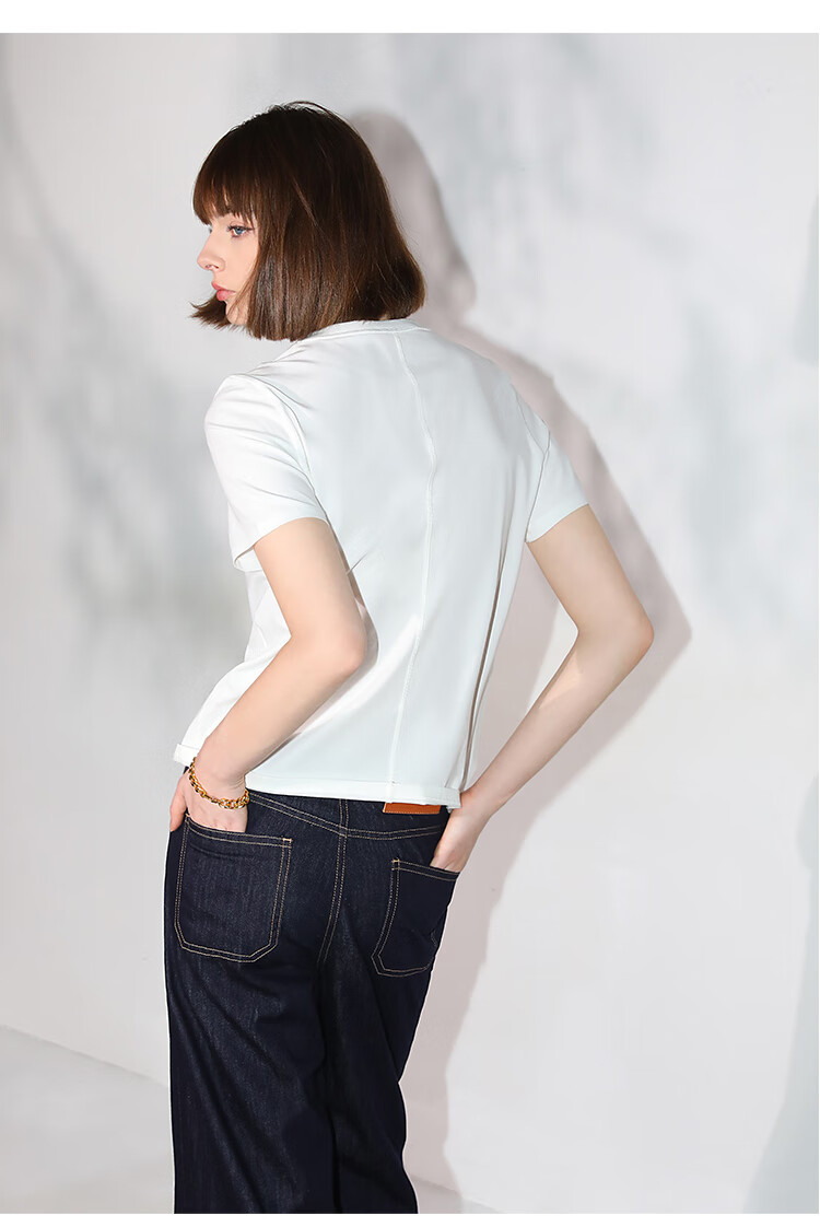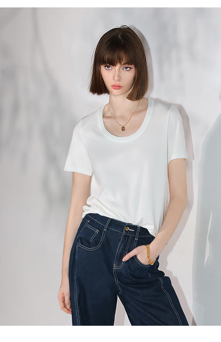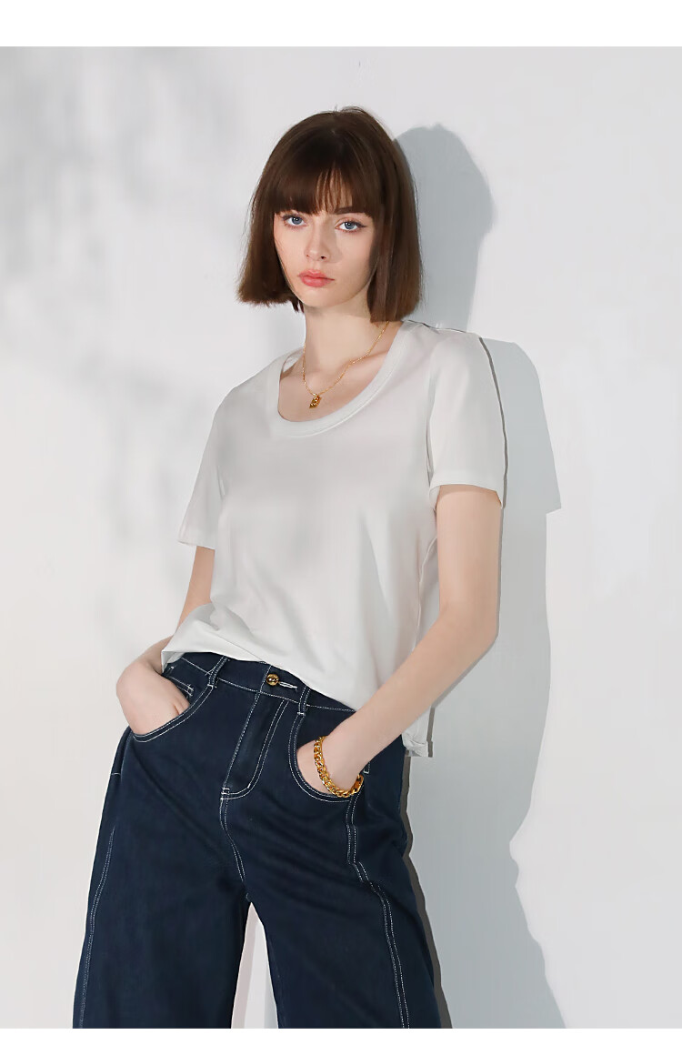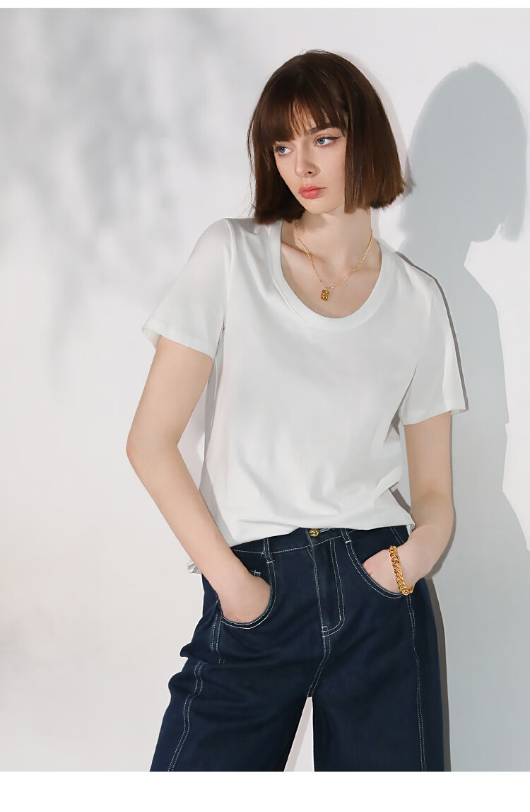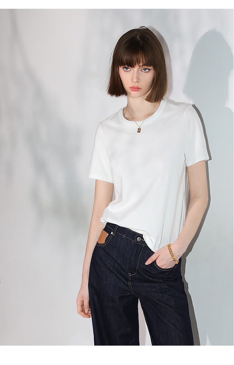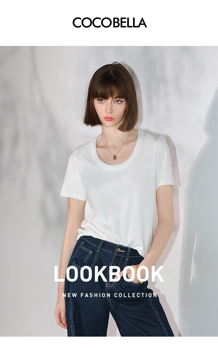COCOBELLA科技三防易打理白色防污渍短袖T恤女U领上衣TS117