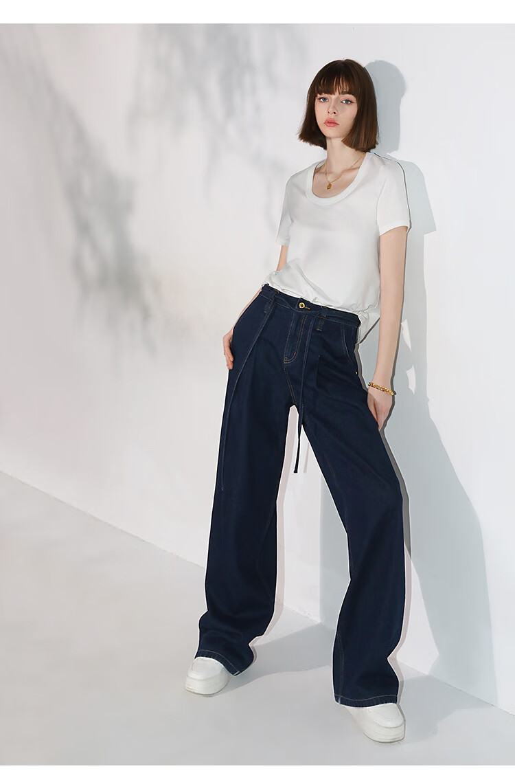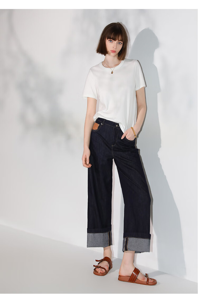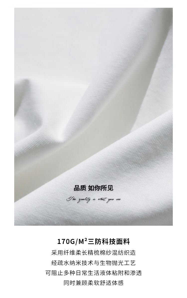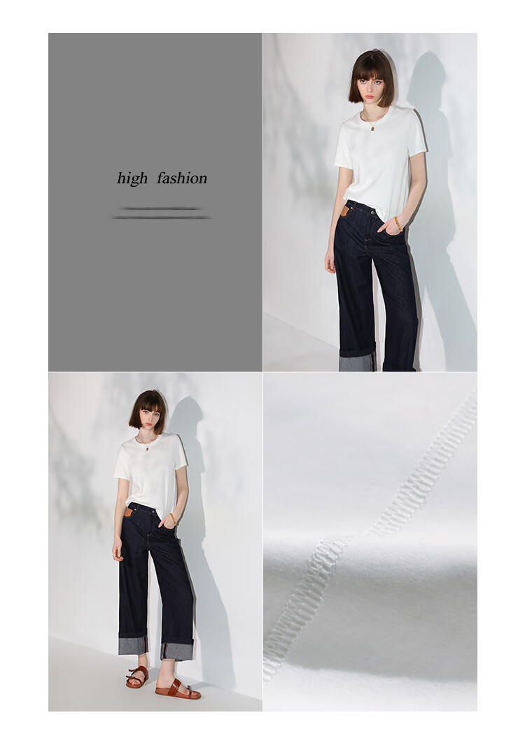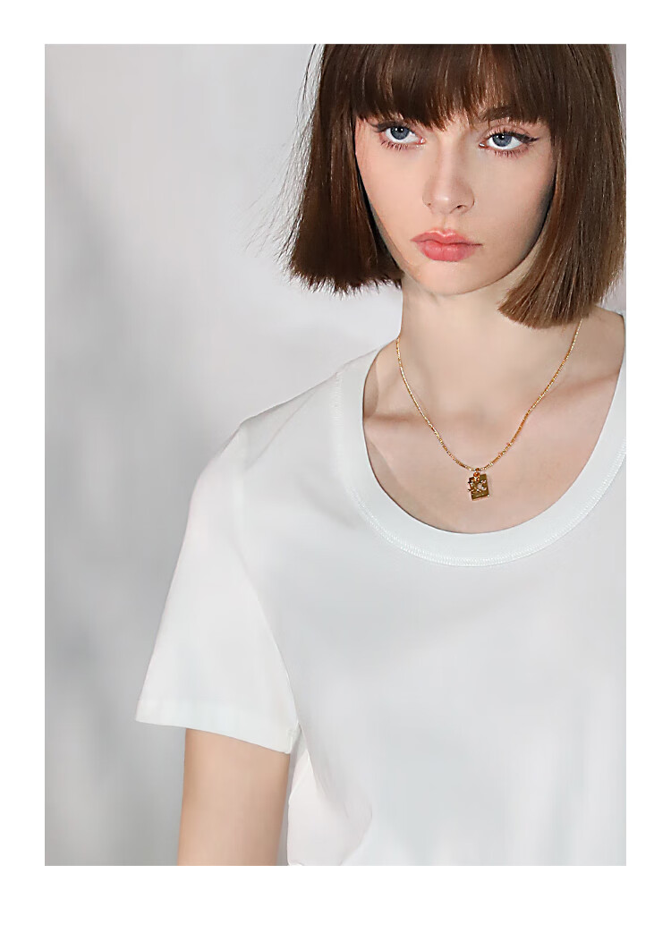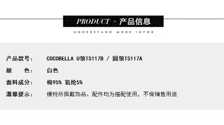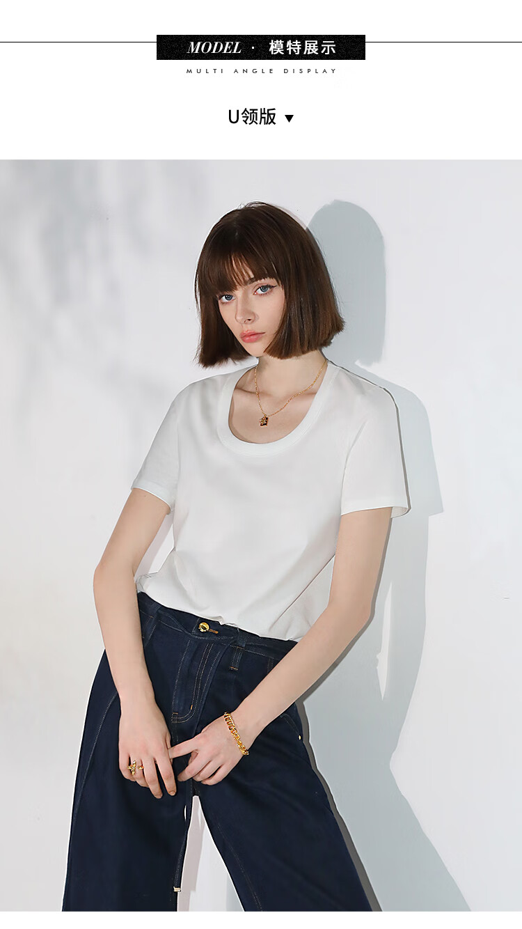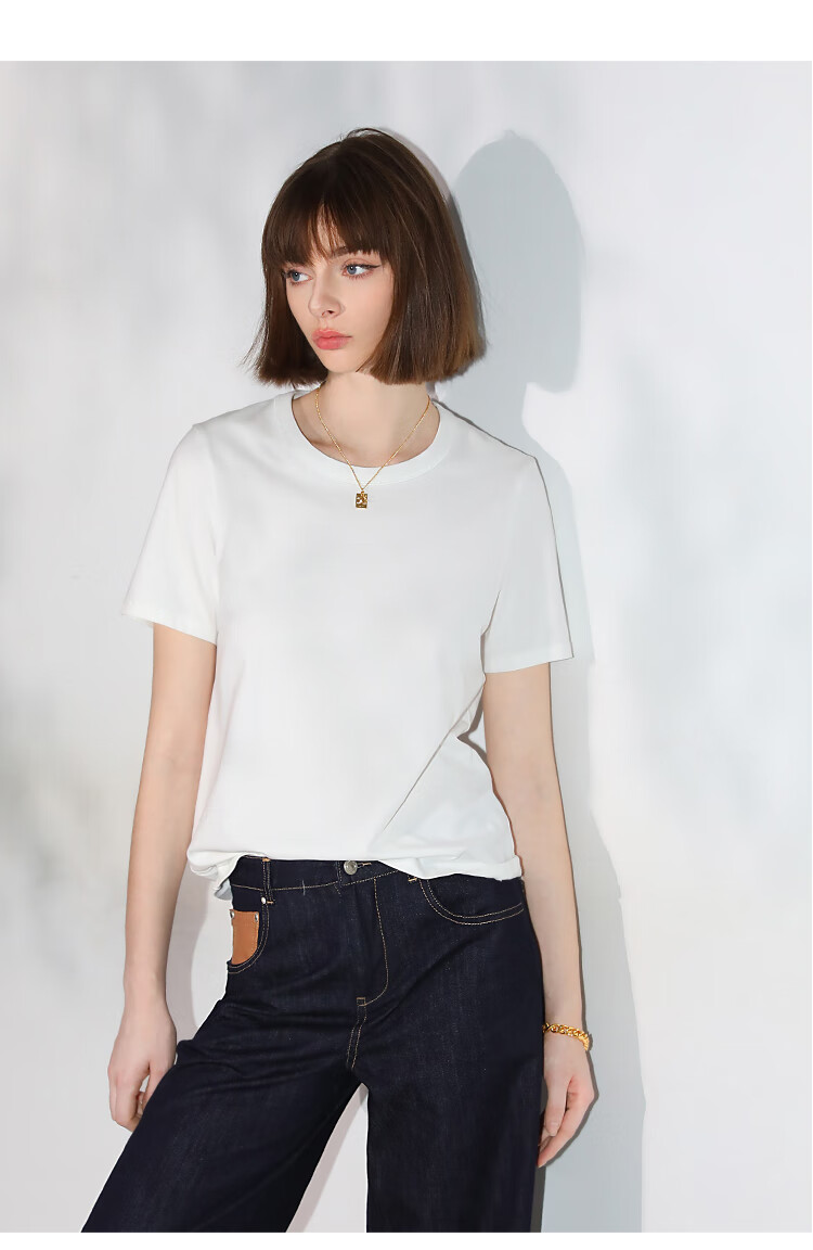 COCOBELLA科技三防易打理白色防污渍短袖T恤女U领上衣TS117