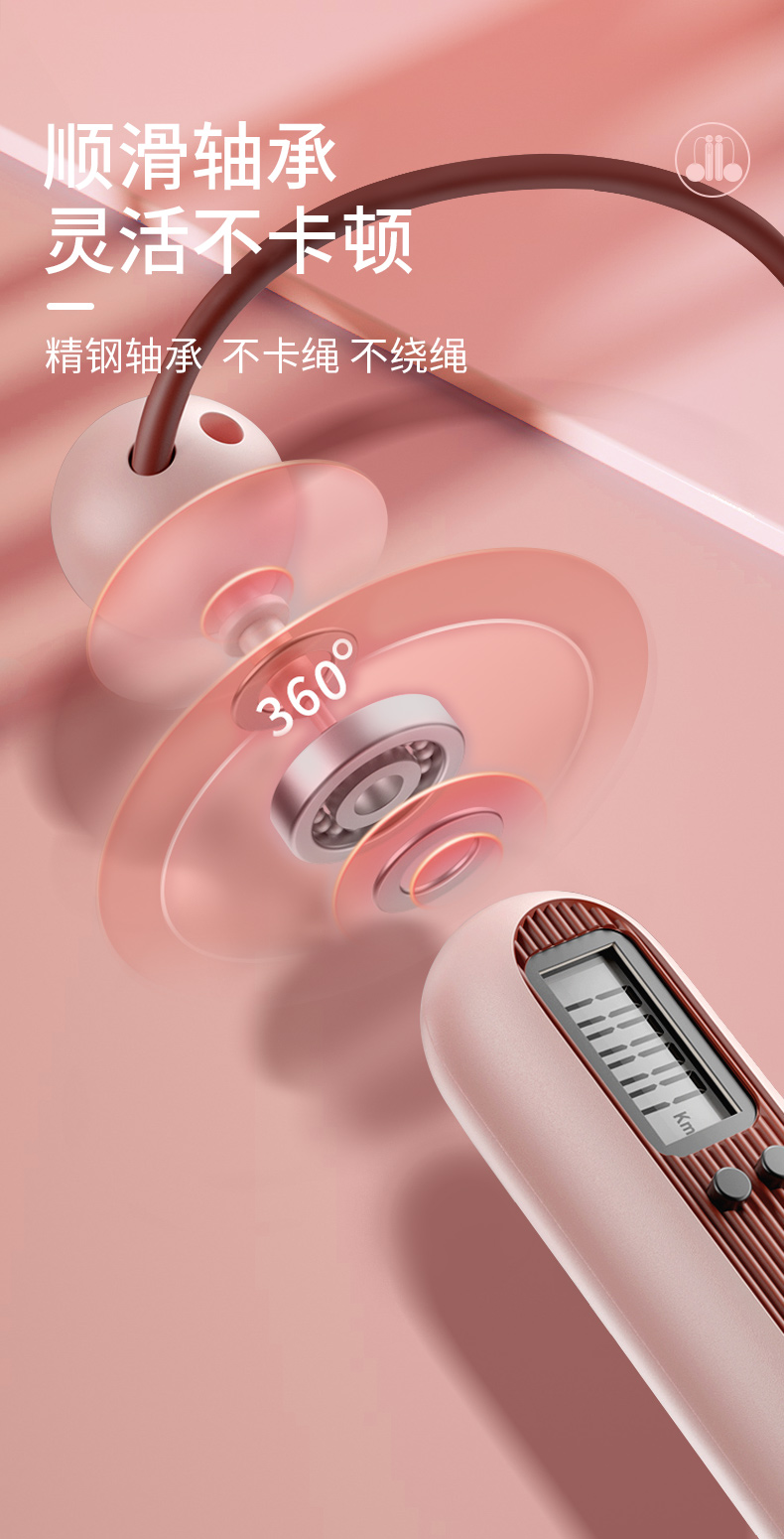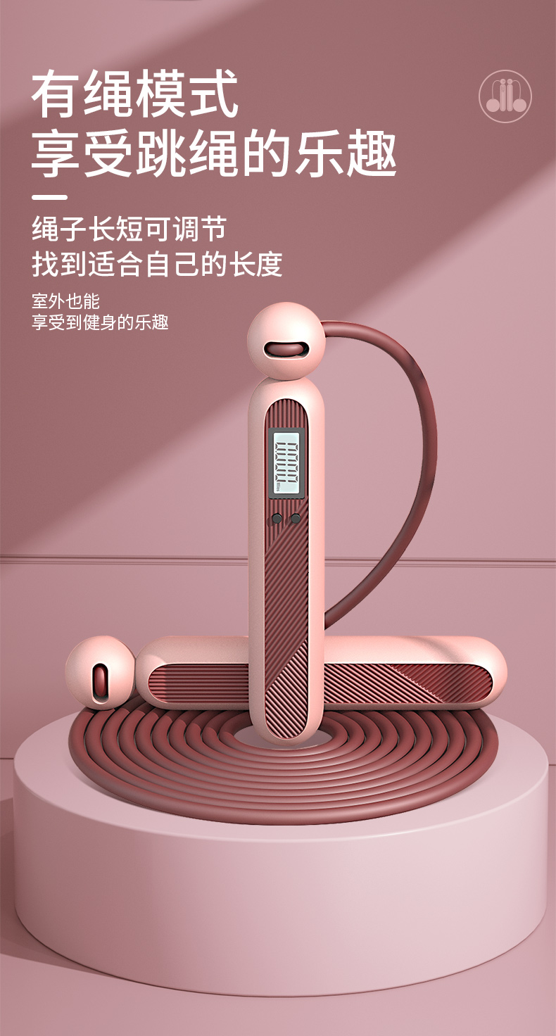 凯速智能计数负重钢丝有绳+无绳两用跳绳KJ36(胭脂粉)【XPTX】