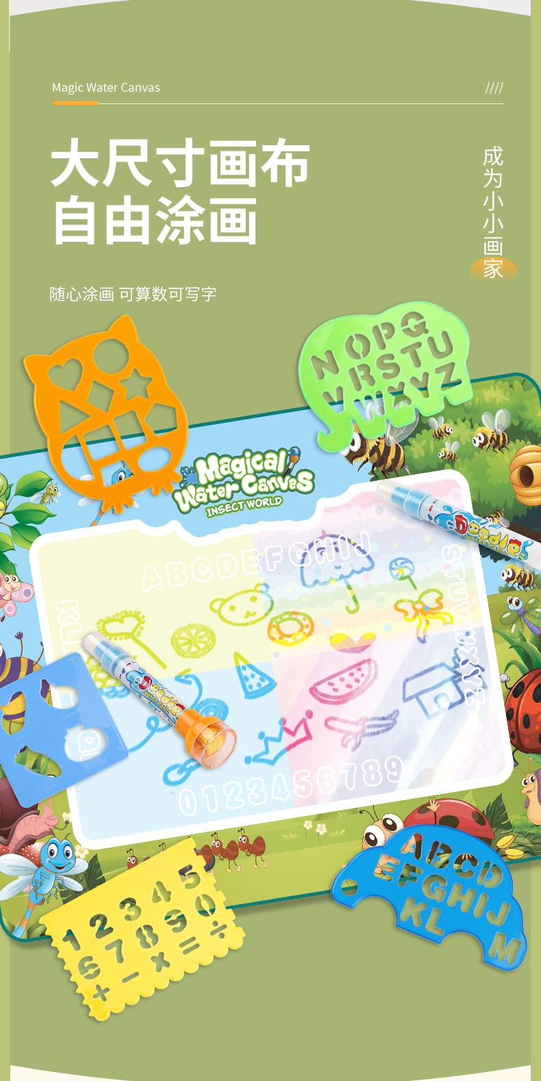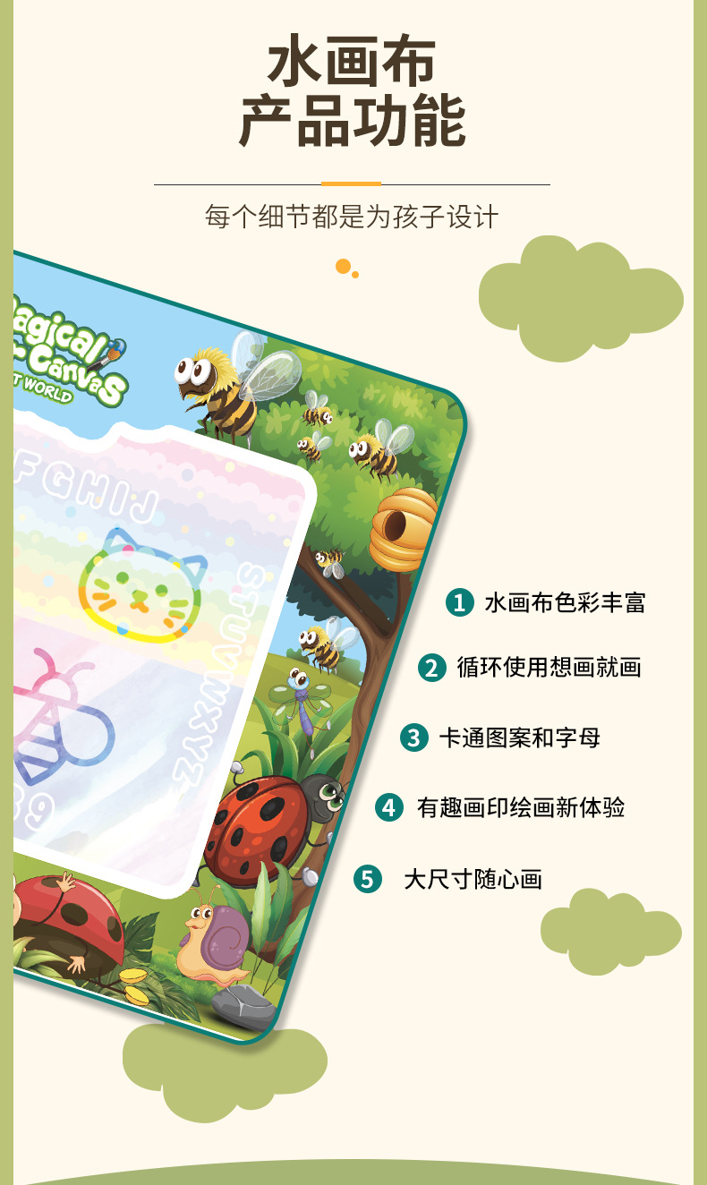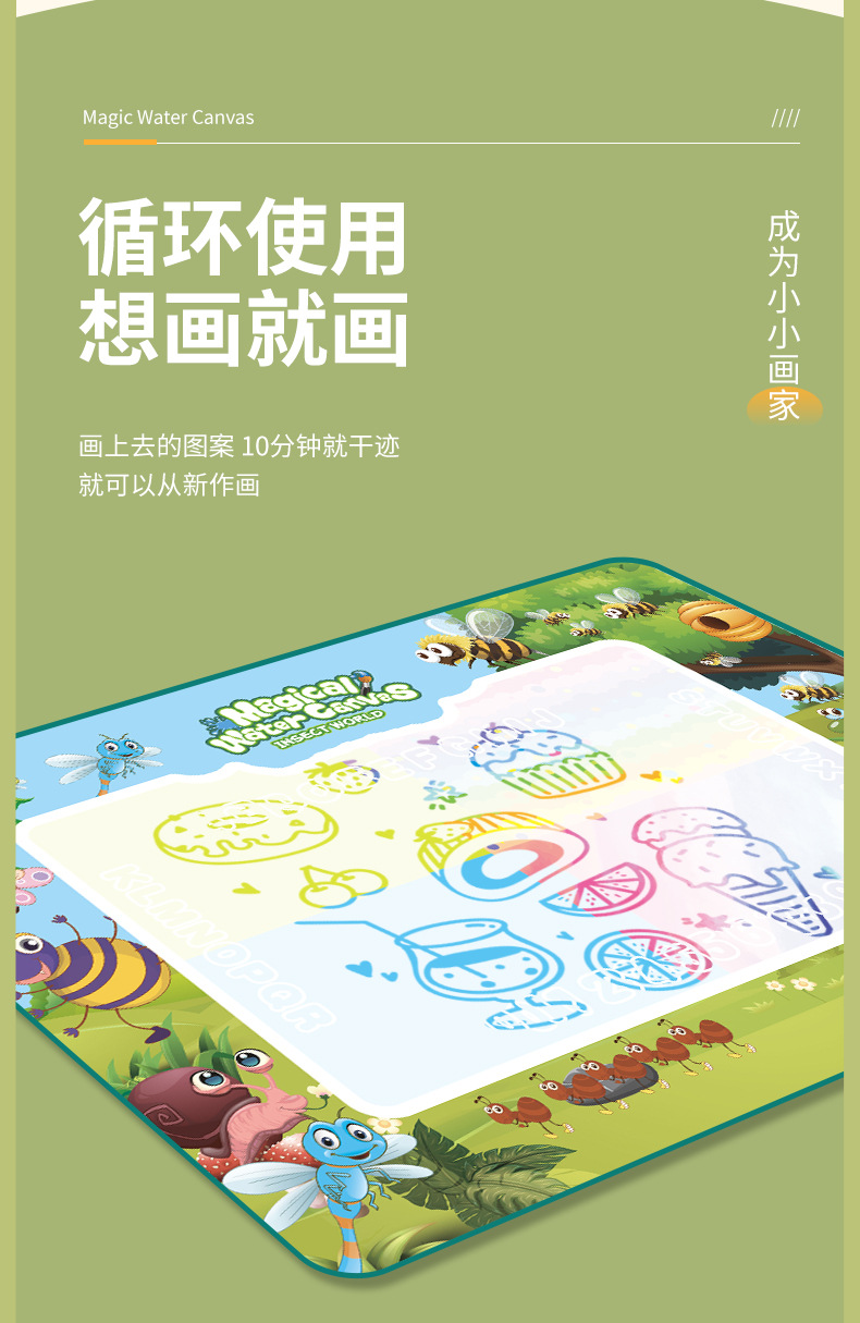 【魔法水画家】水画布 水魔法学习毯 水写布儿童画画 超大号清水反复涂鸦神奇水画毯