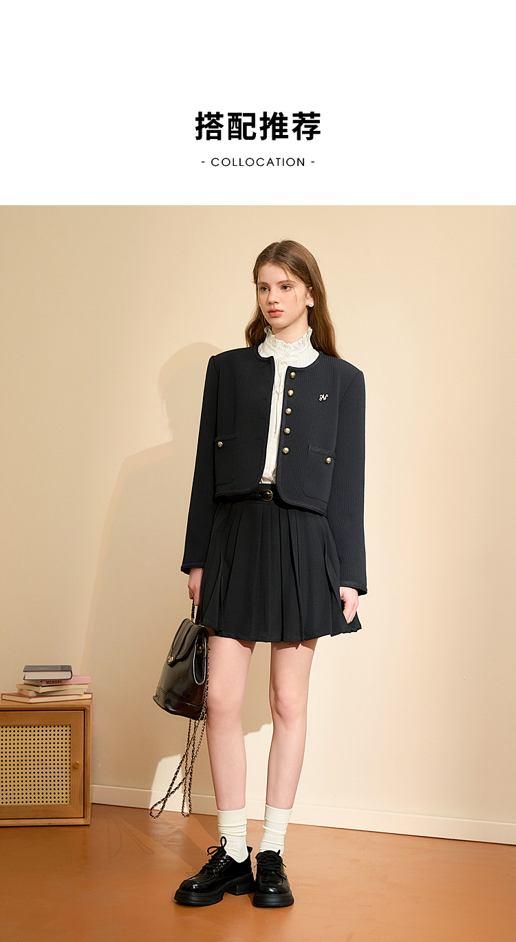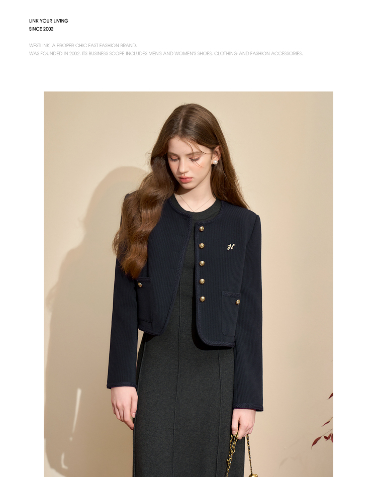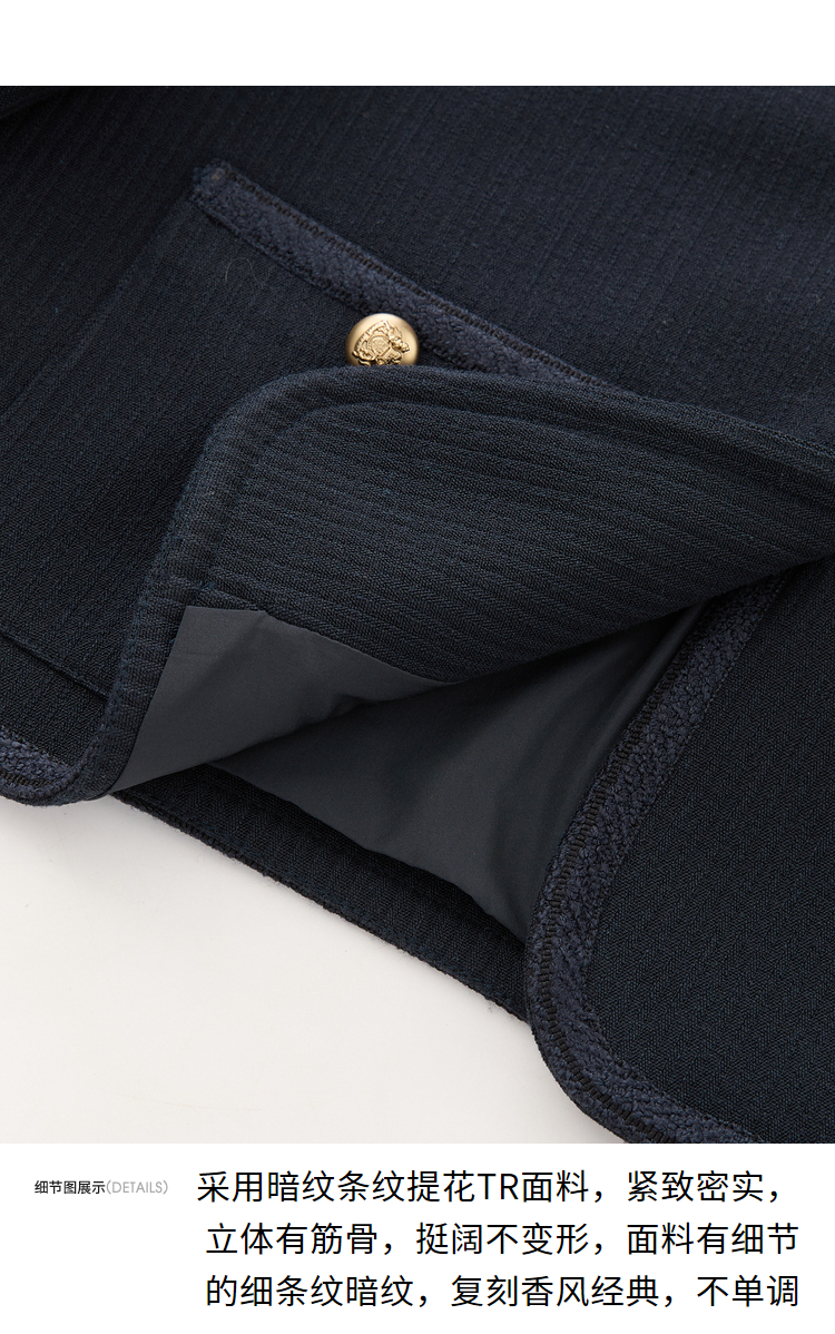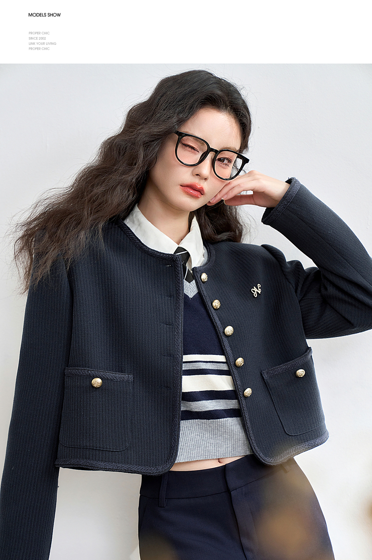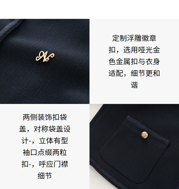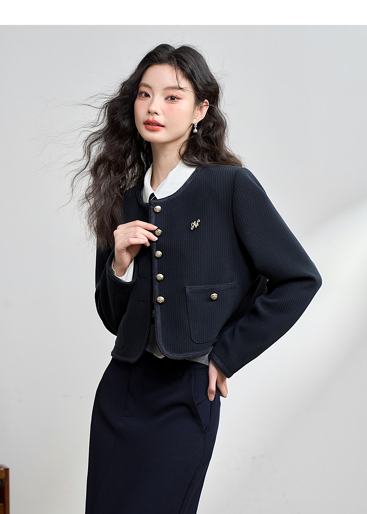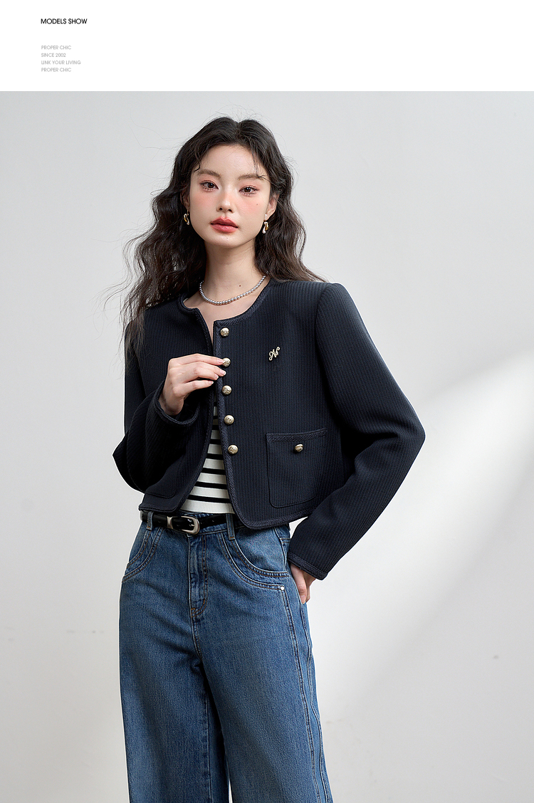 经典优雅小香风学院风短款外套女秋高级感徽章扣提花外套V3442507