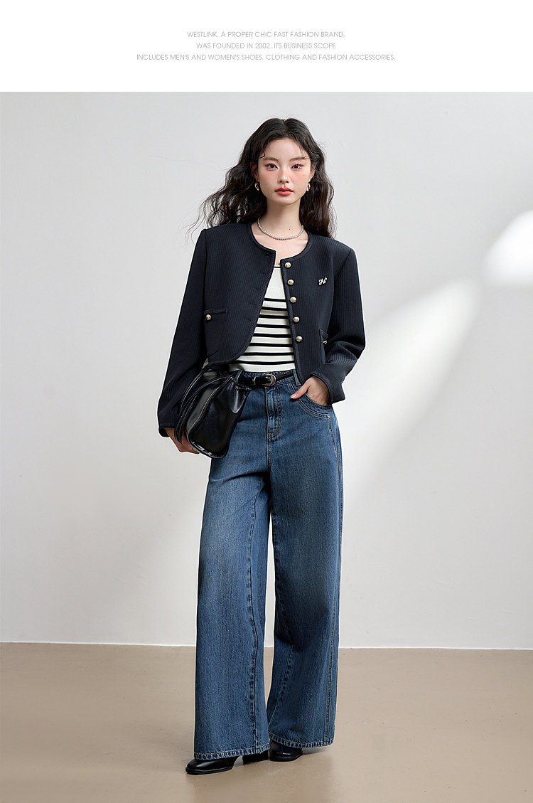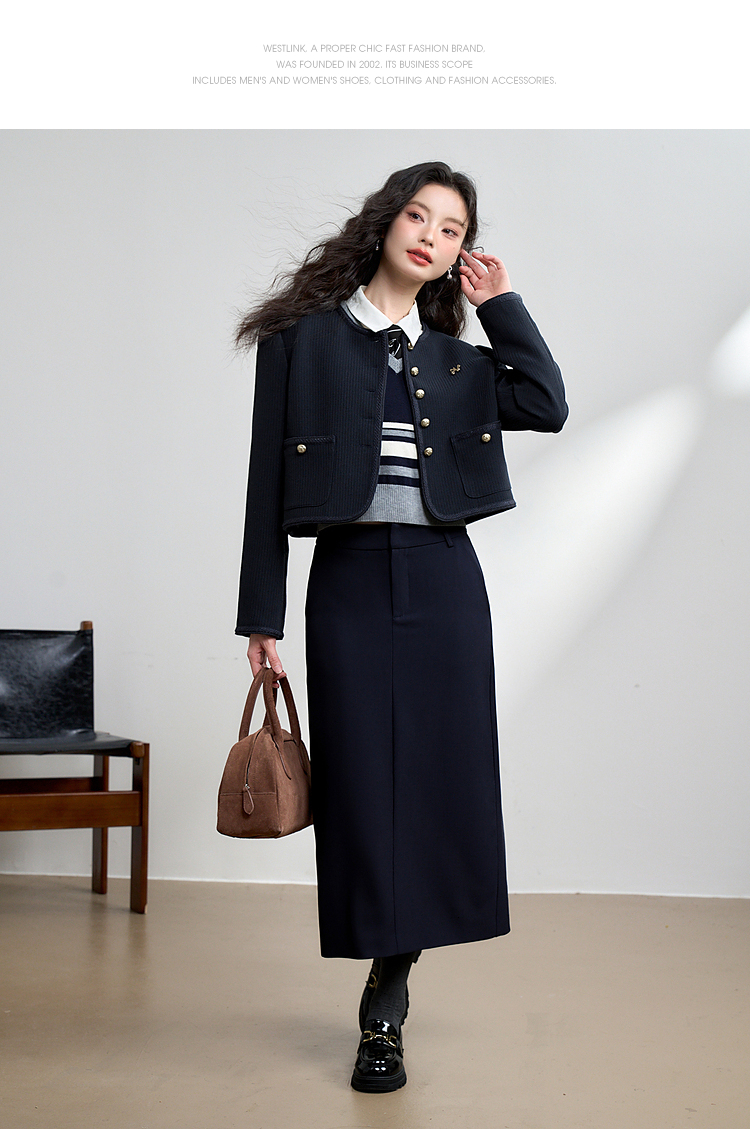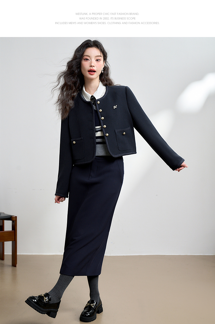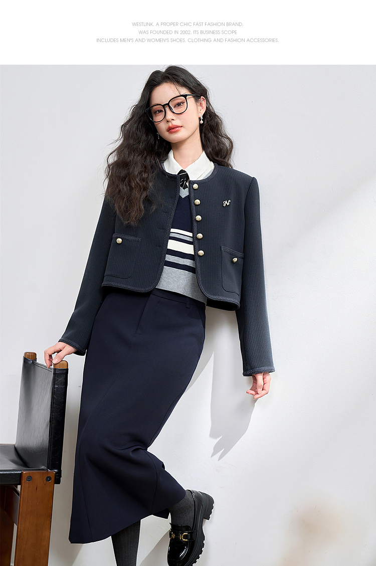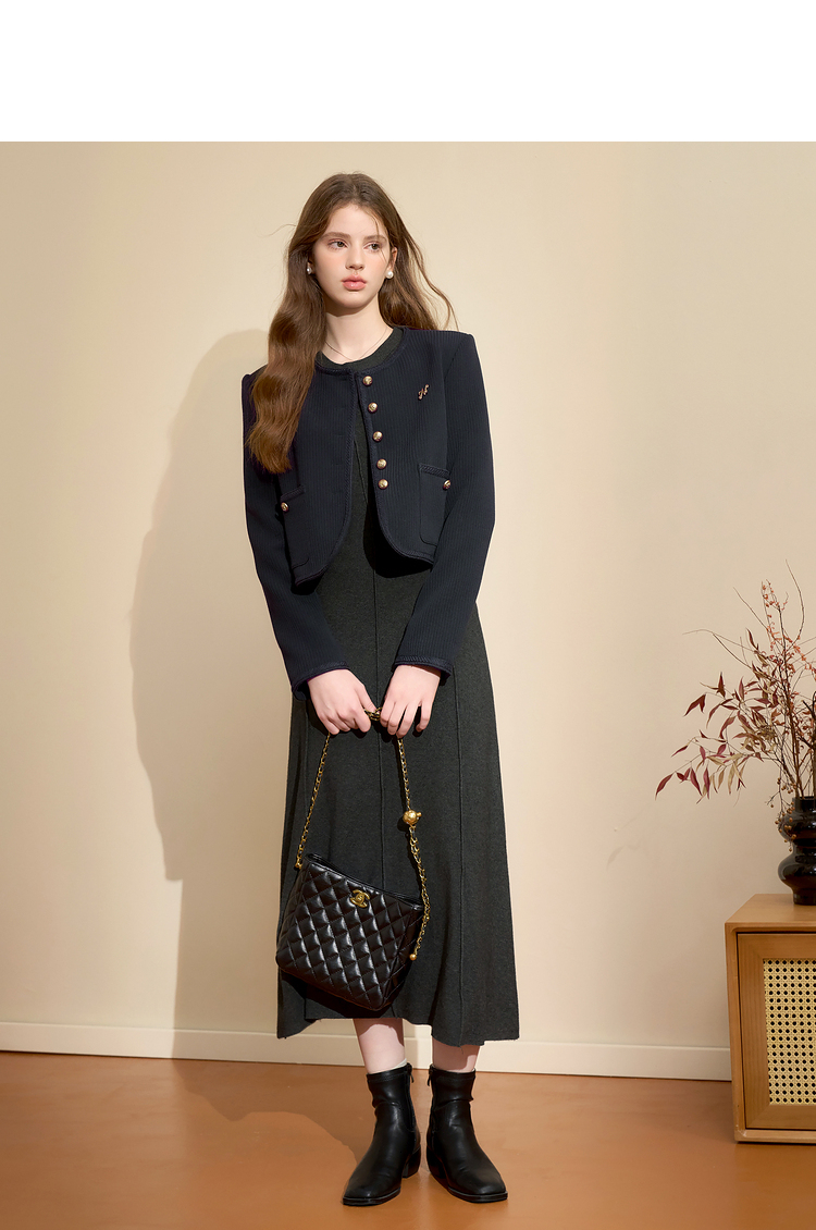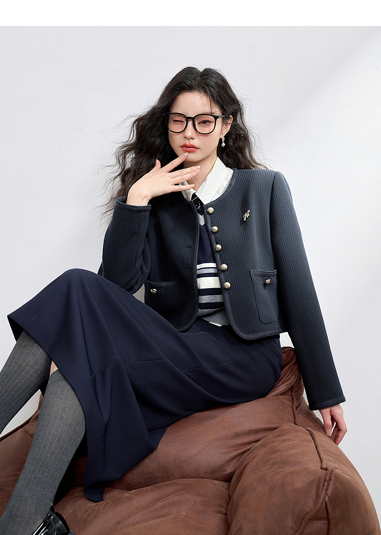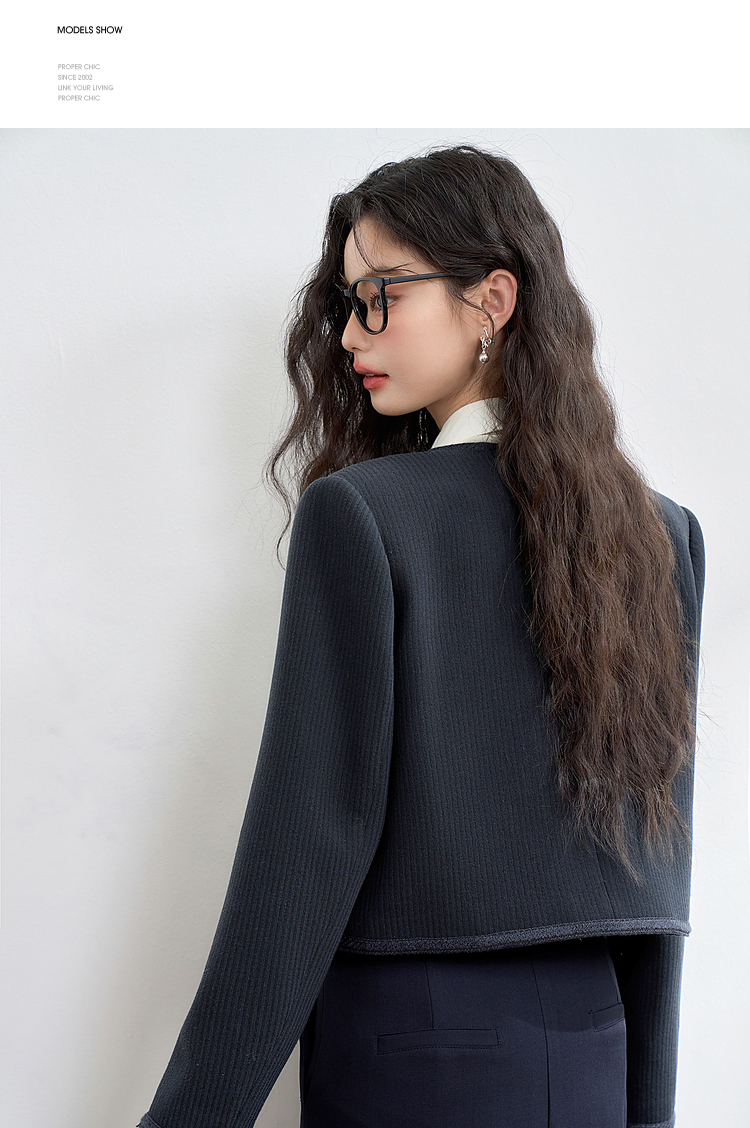 经典优雅小香风学院风短款外套女秋高级感徽章扣提花外套V3442507