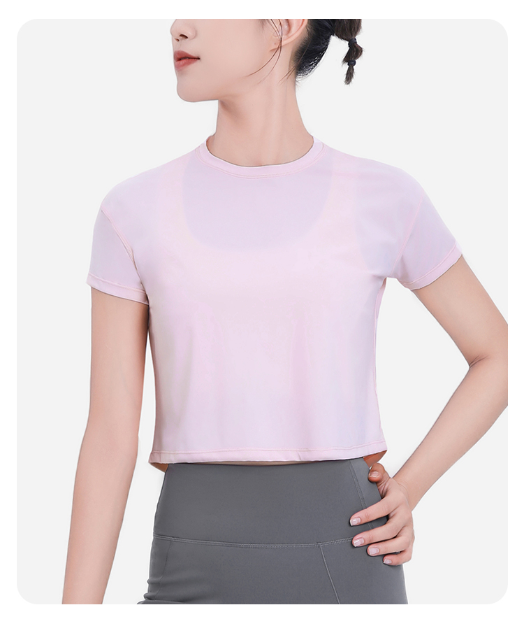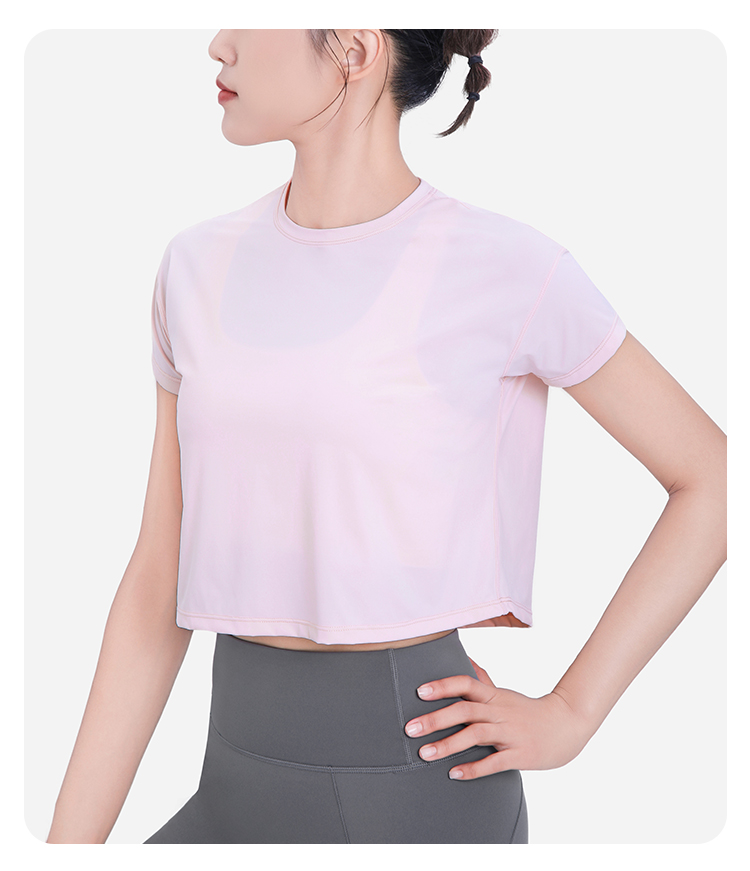 BWELL后背网纱拼接修身运动短袖T恤BWY7592
