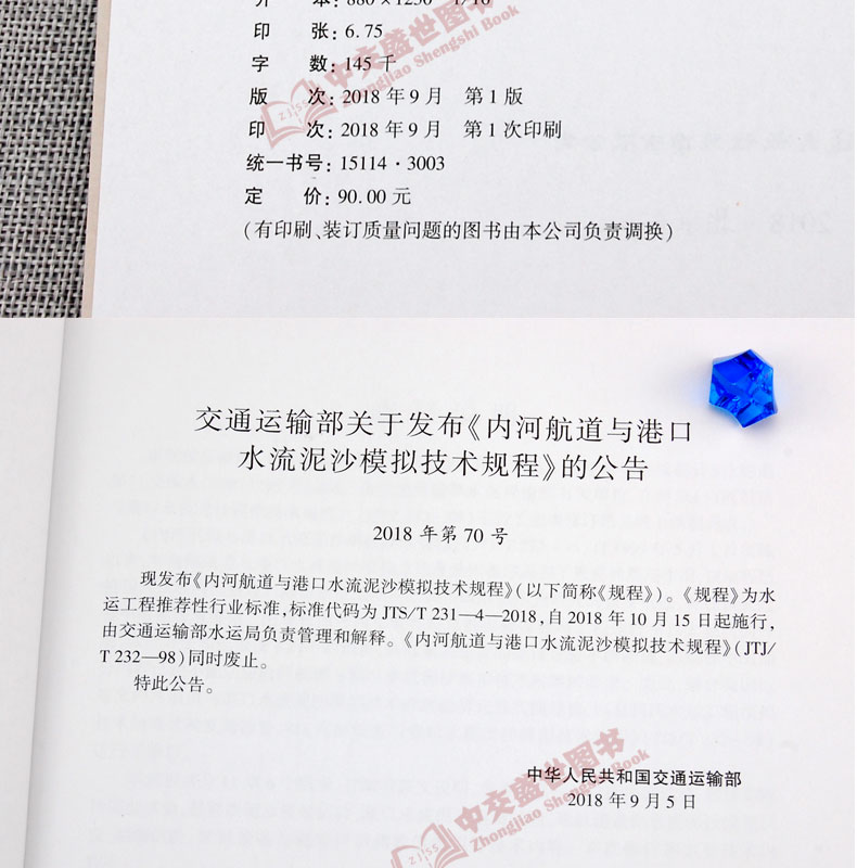 书名:内河航道与港口水流泥沙模拟技术规程JTS/T231-4-2018