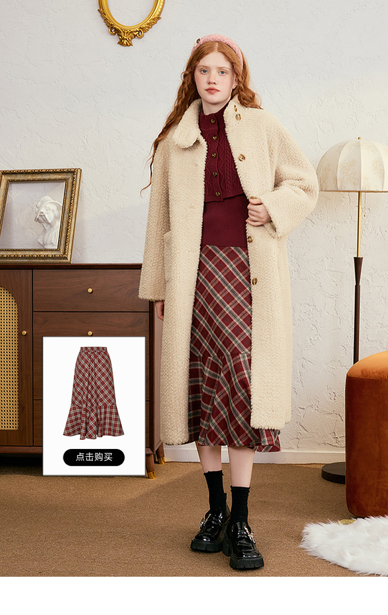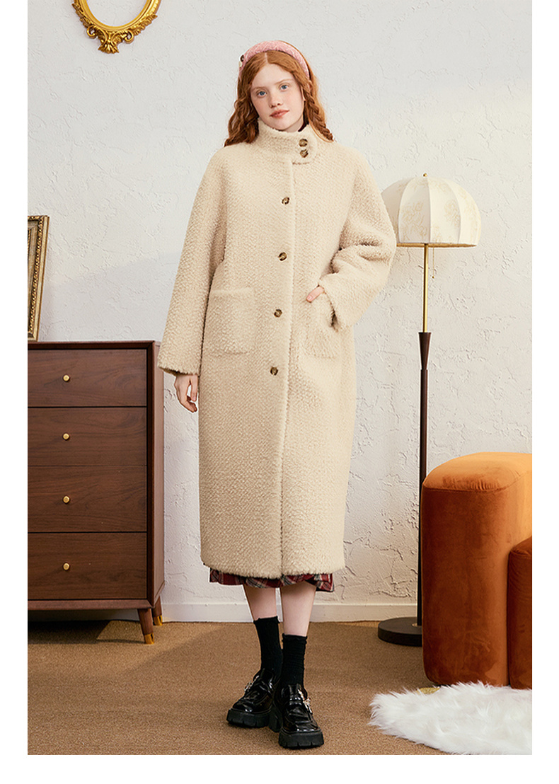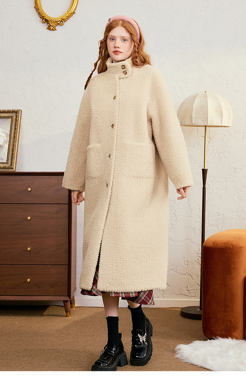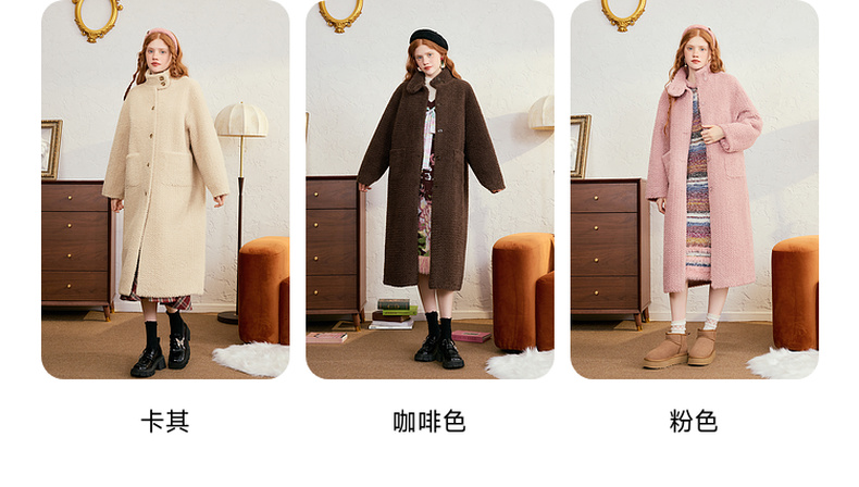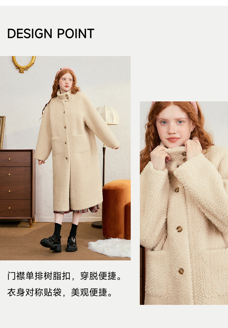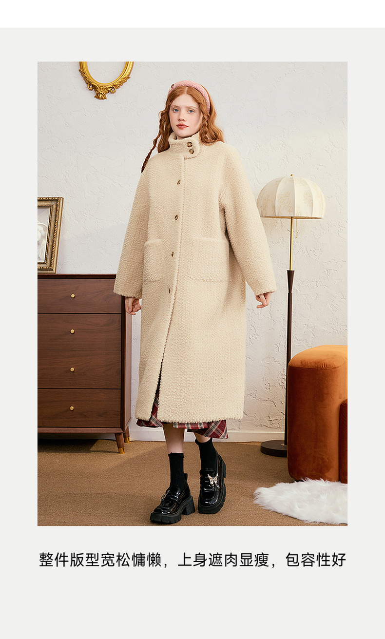 【暖冬内购】两三事 奶昔映雪 2024冬季新款时尚围脖领羊羔绒外套女长款宽松