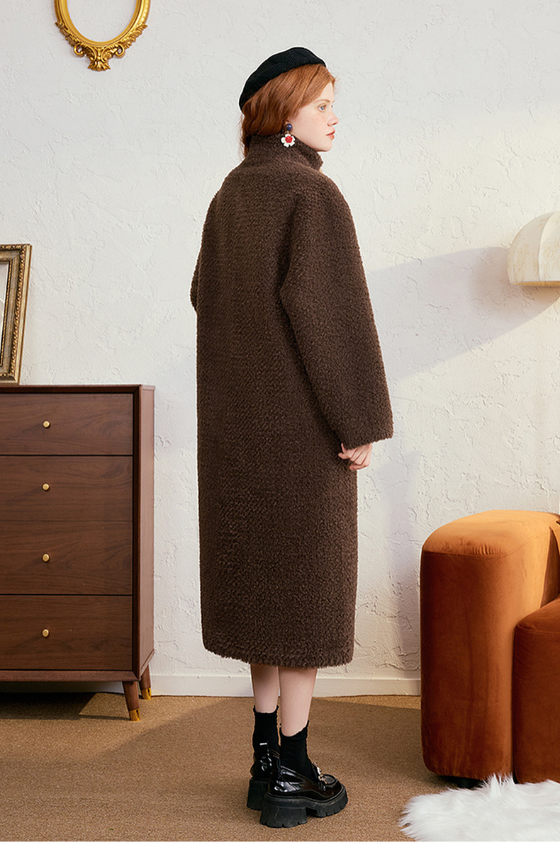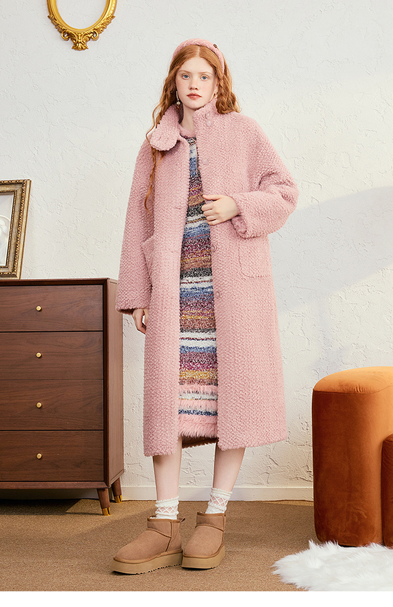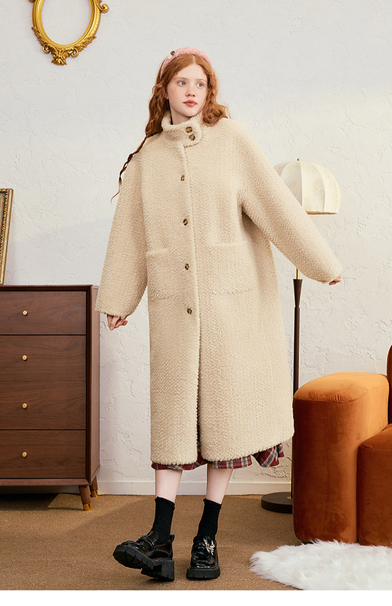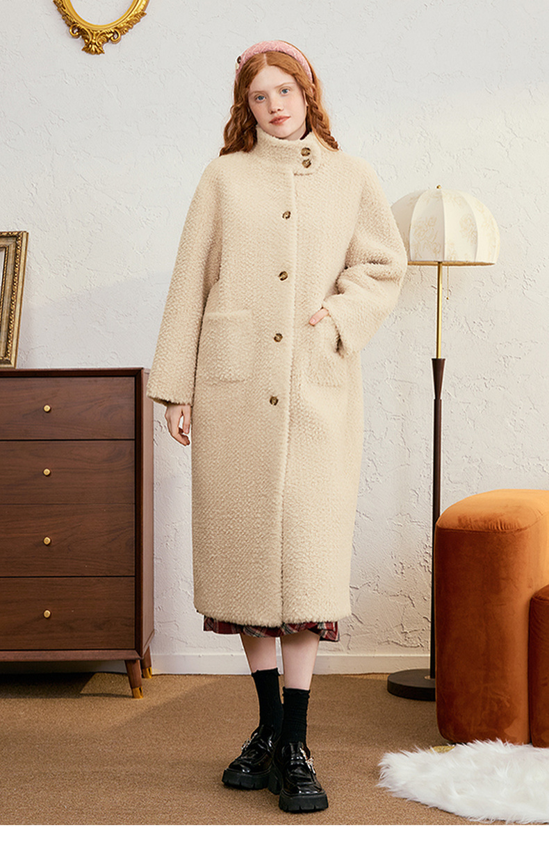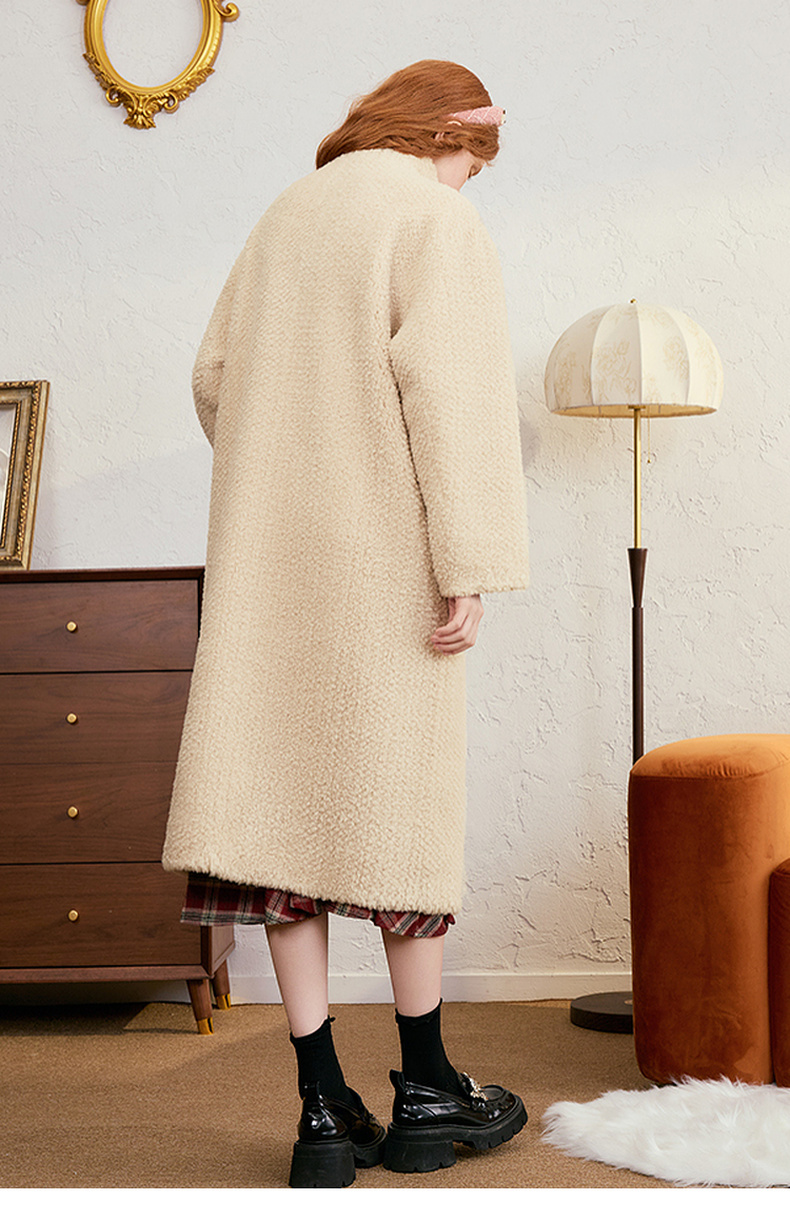 【暖冬内购】两三事 奶昔映雪 2024冬季新款时尚围脖领羊羔绒外套女长款宽松