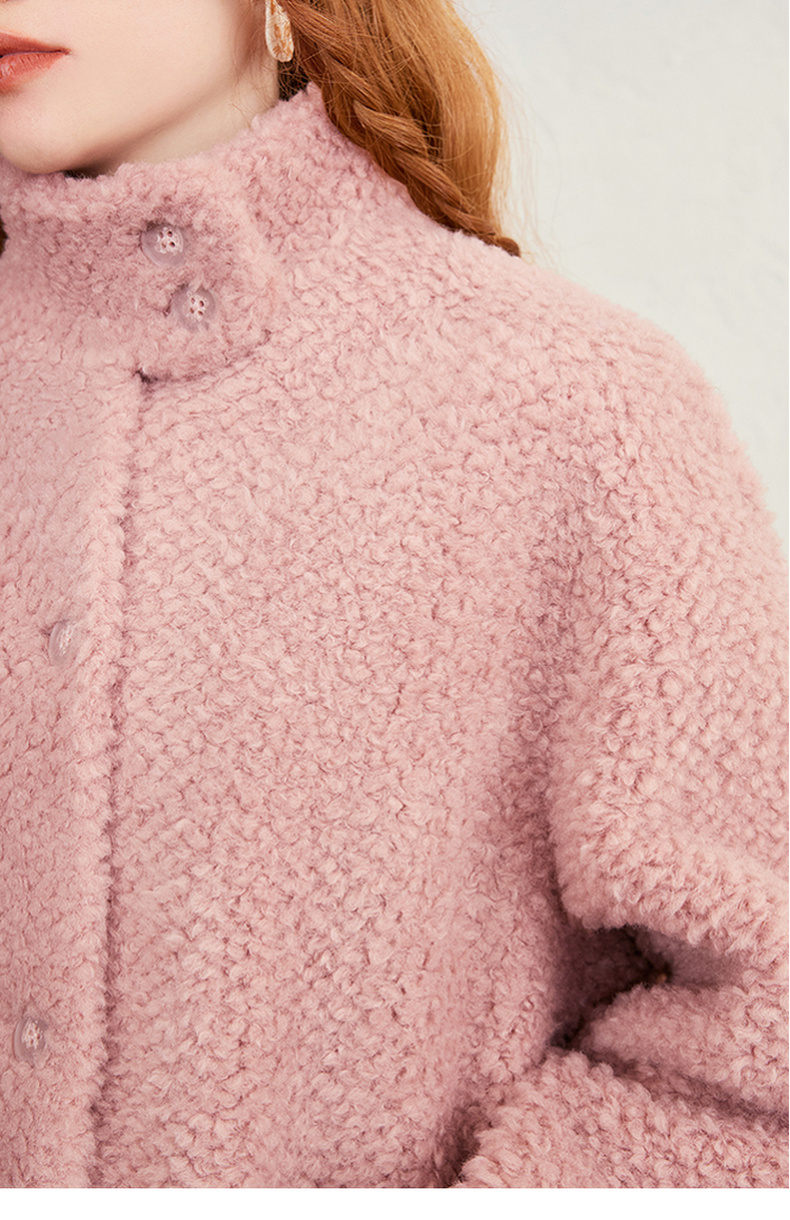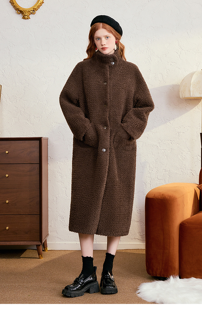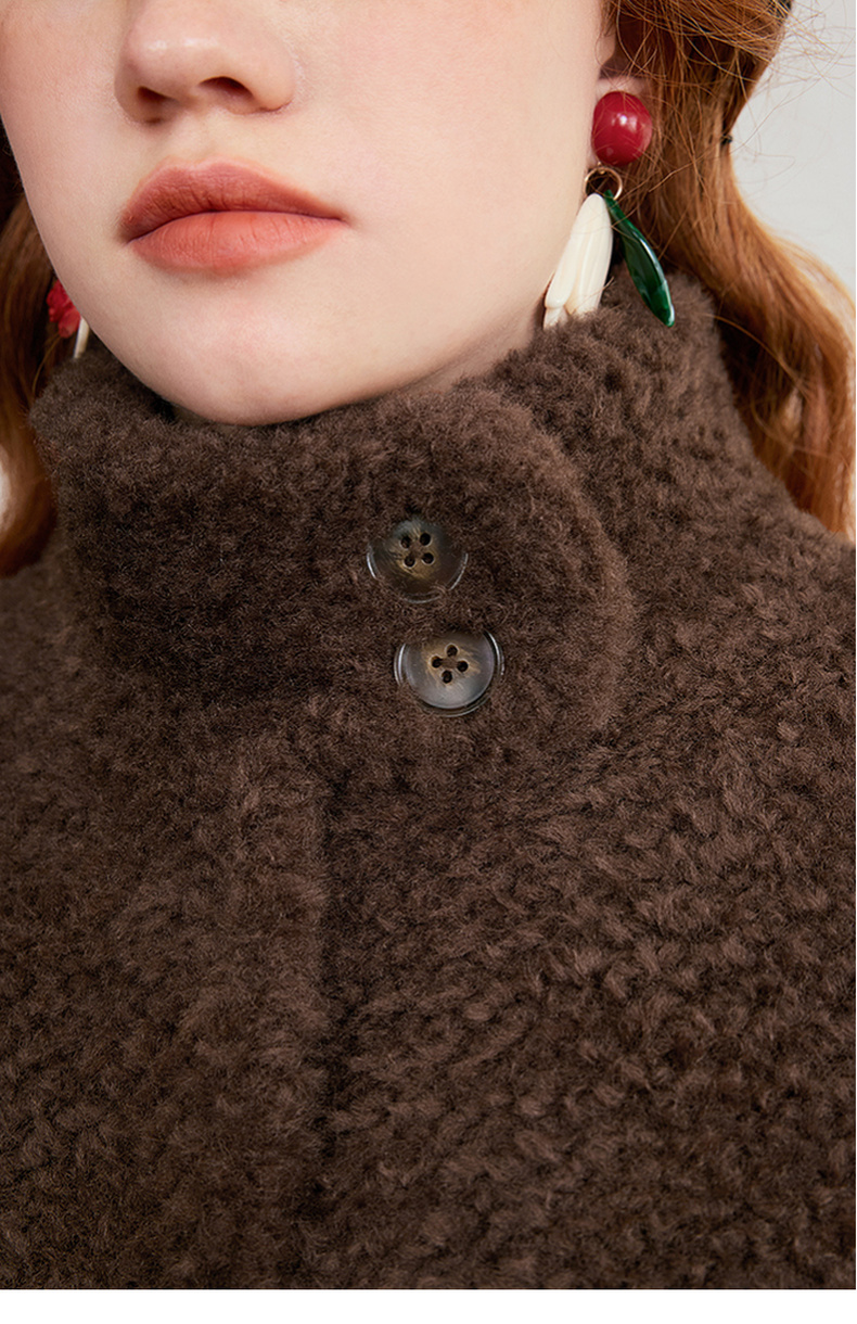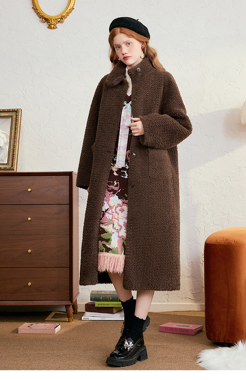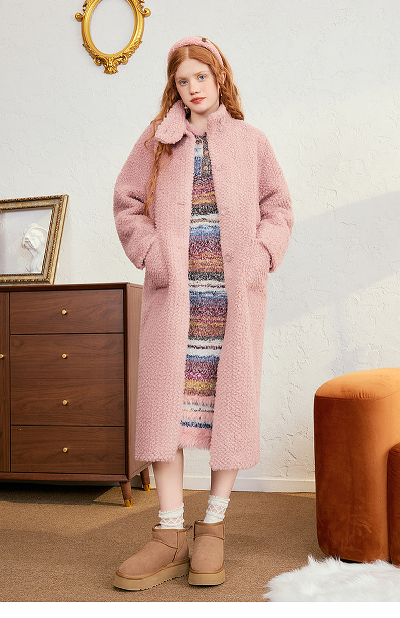 【暖冬内购】两三事 奶昔映雪 2024冬季新款时尚围脖领羊羔绒外套女长款宽松