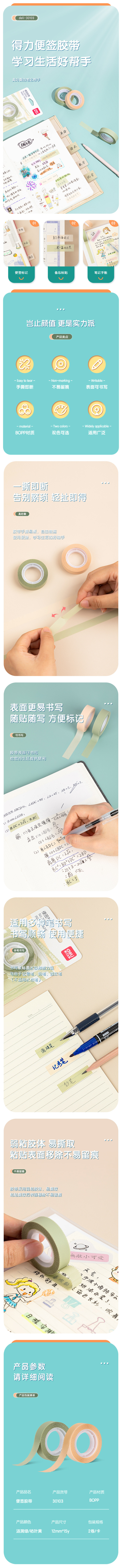 得力30103便签胶带12mm*15y*70μm(黄绿)(2卷/套)