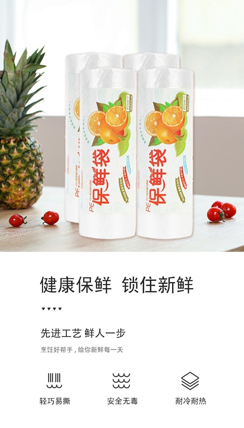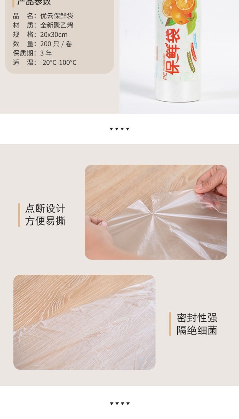 优云中号平口式卷装保鲜袋100只 冰箱专用食品袋蔬菜冷藏收纳