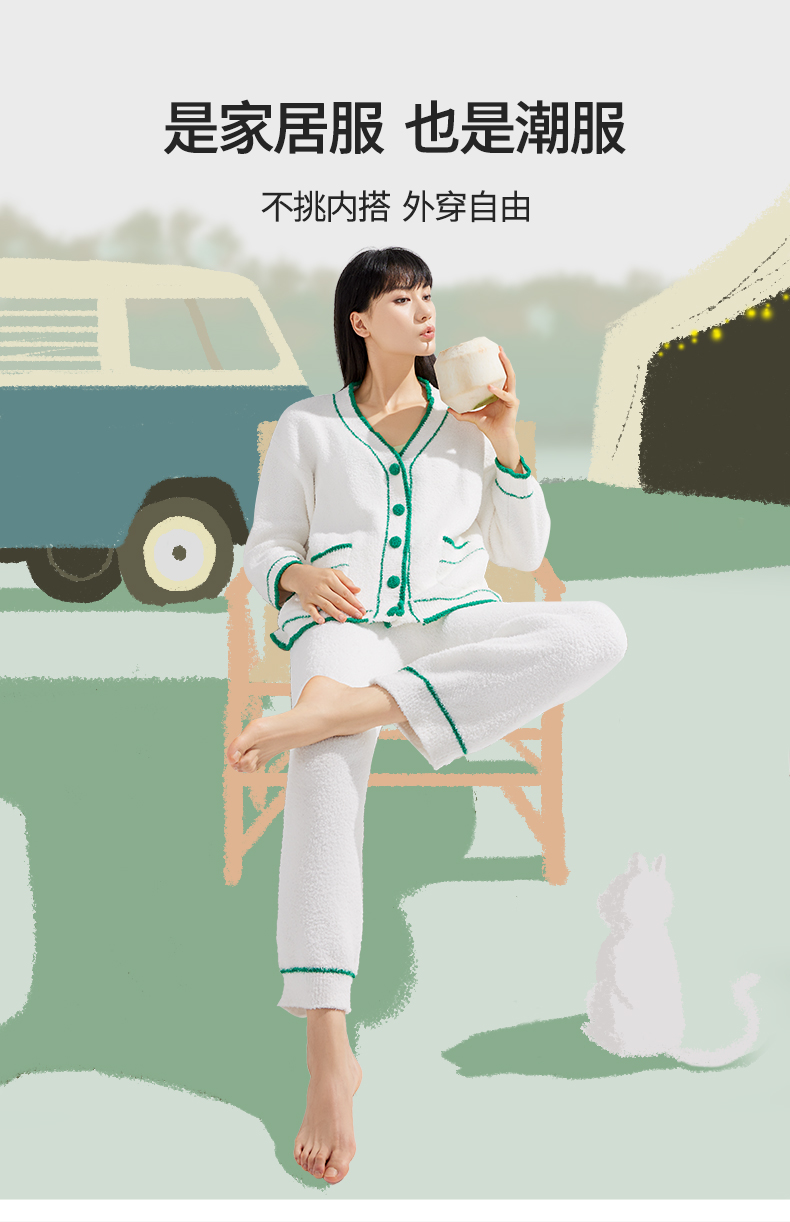 有棵树半边绒女士可外穿家居服C-PJ1003