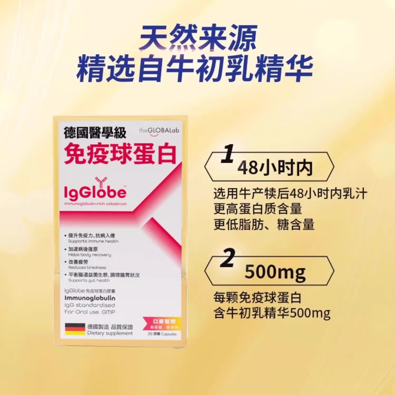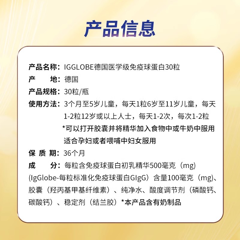 德国THE GLOBALAB lgGlobe免疫球蛋白胶囊30粒牛初乳铁蛋白
