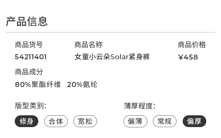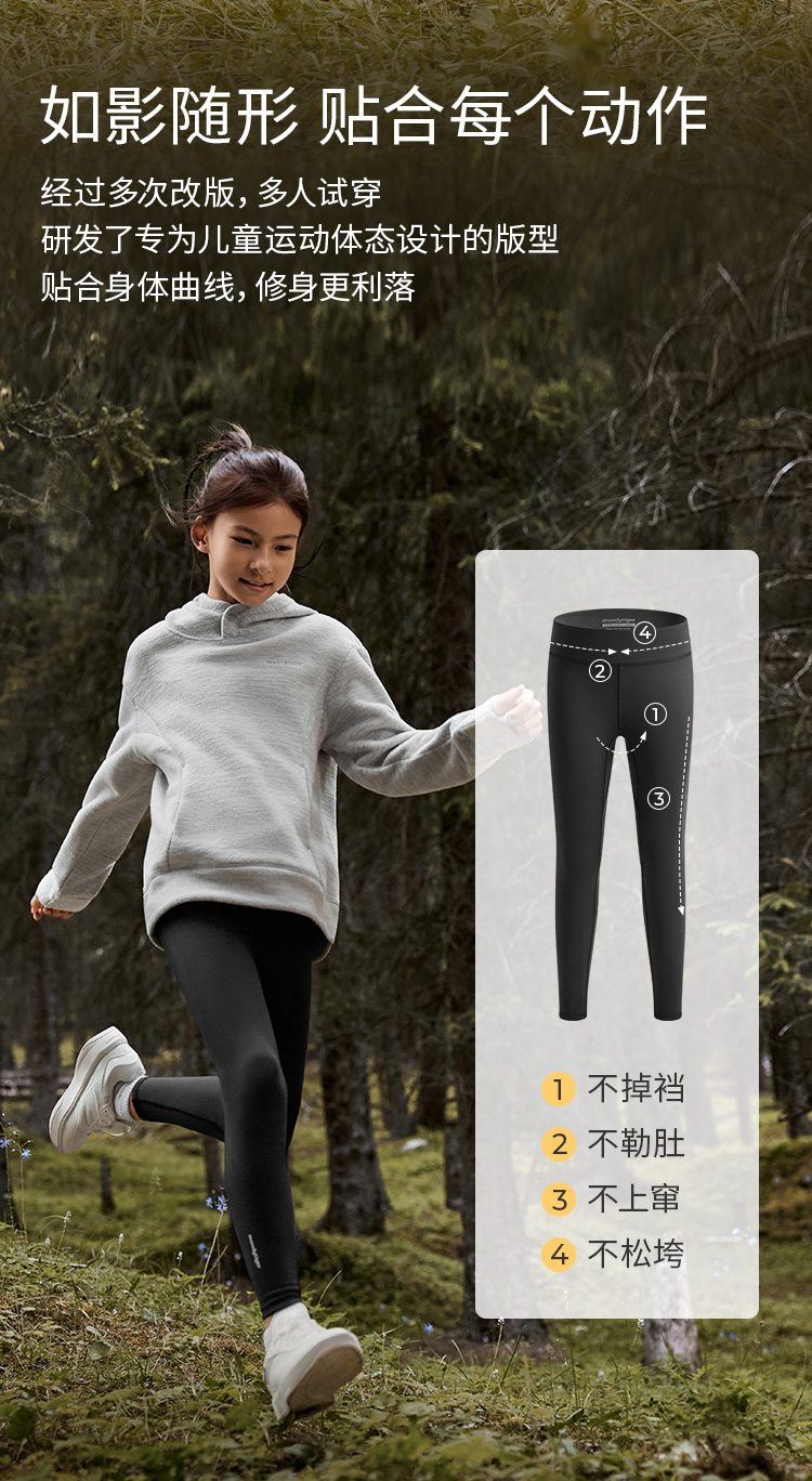 【大J专属】moodytiger女童小云朵Solar紧身裤运动户外暖阳绒保暖54211401