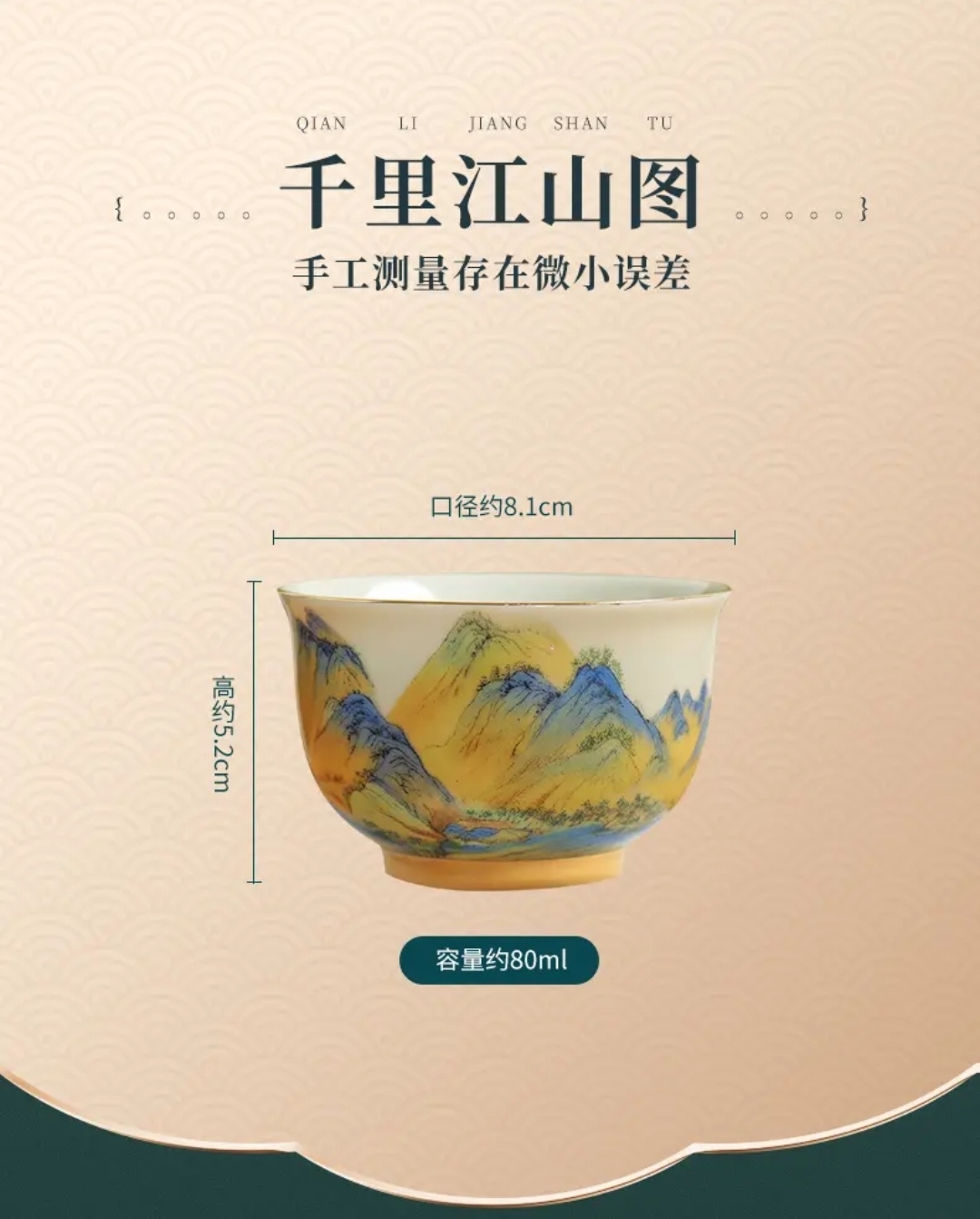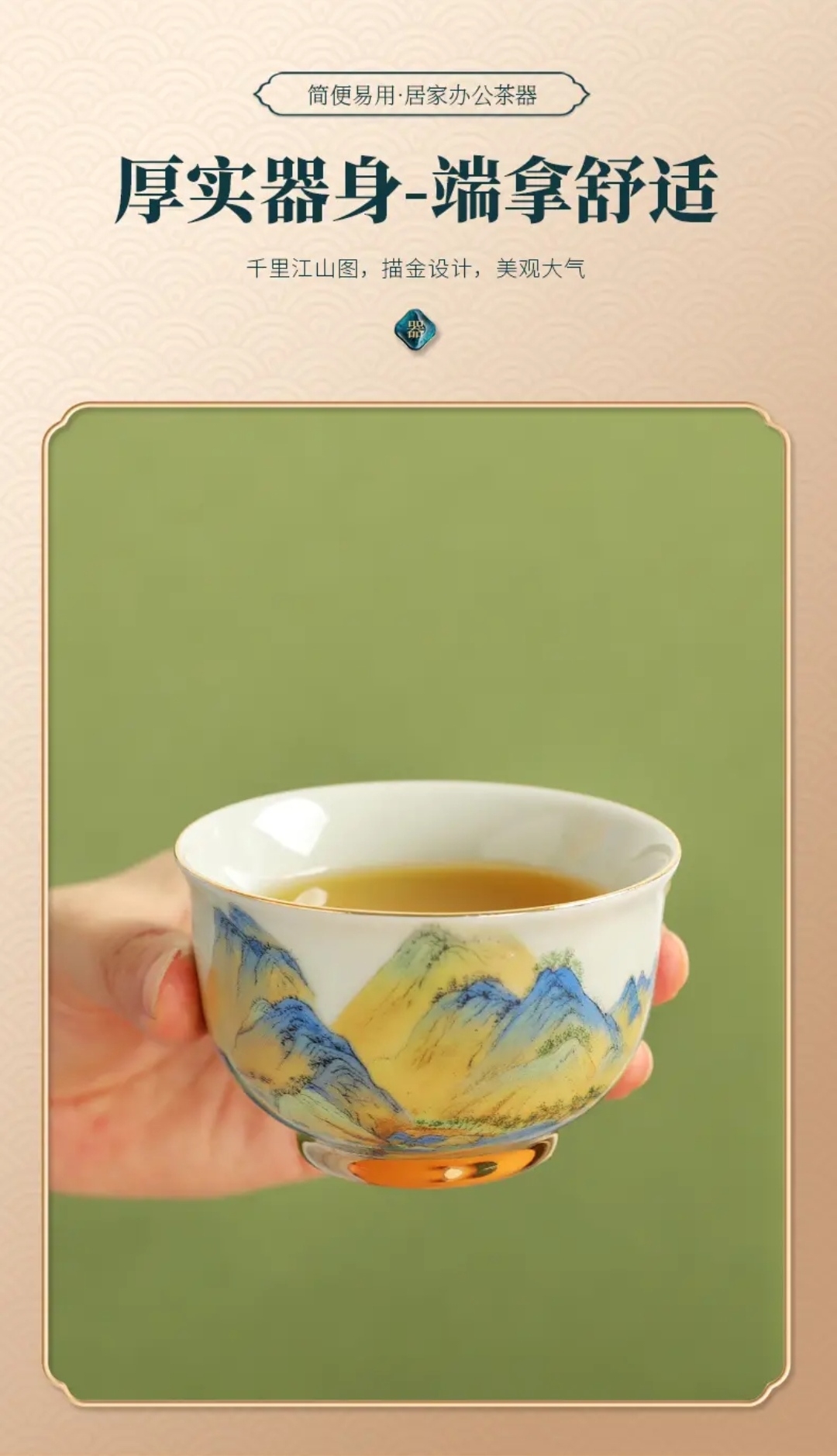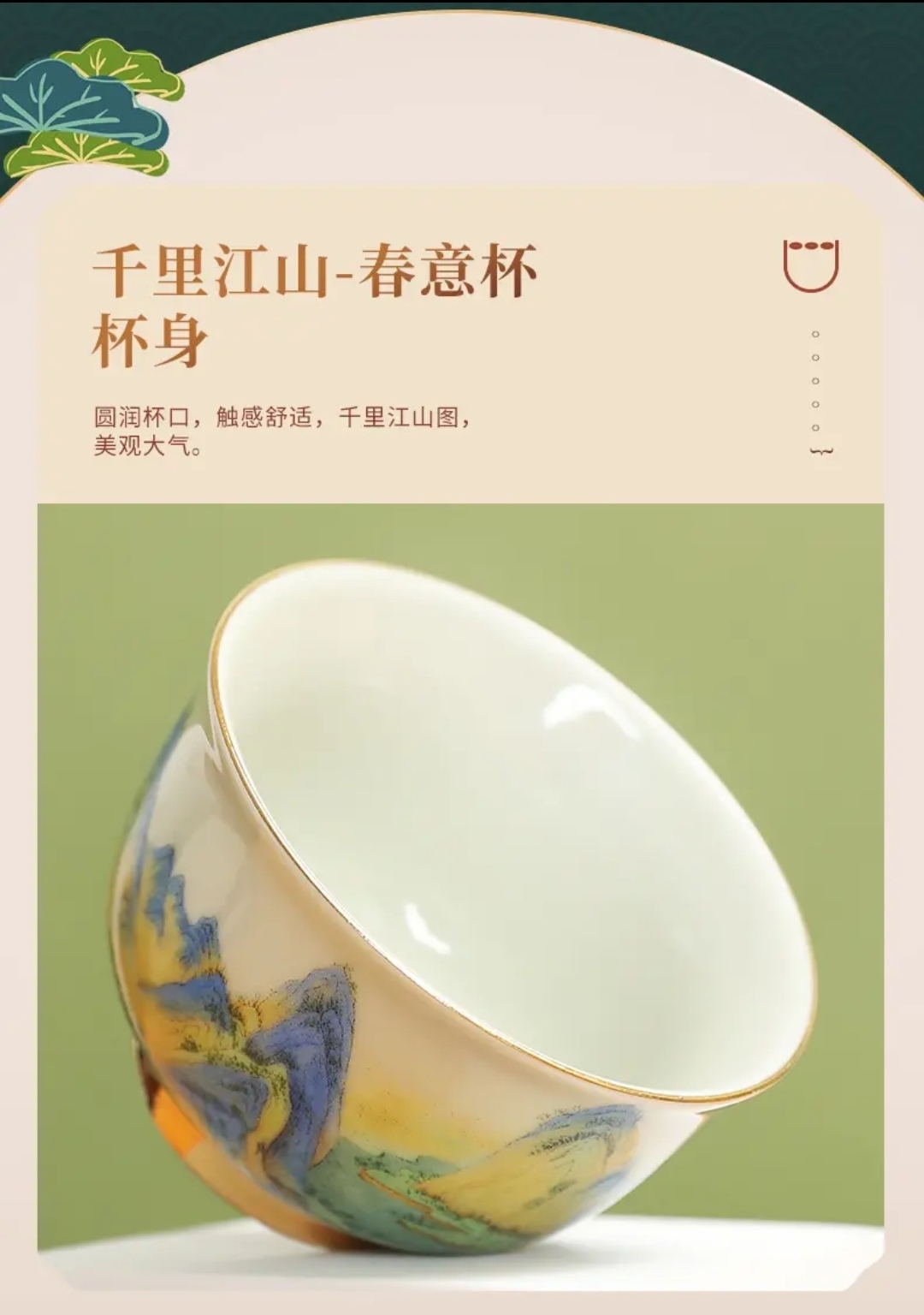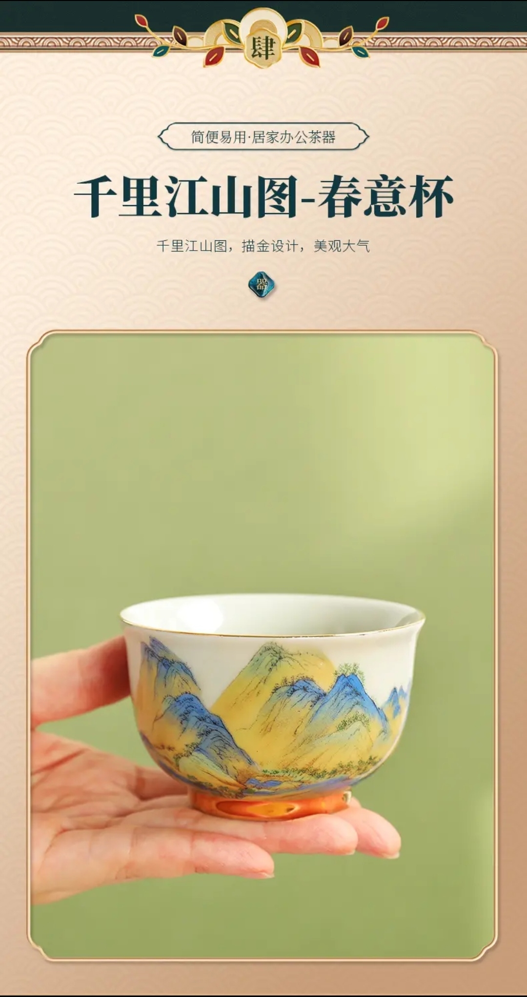 成艺陶瓷 千里江山反口手心杯 品茗杯 /山居图聚香杯/玛瑙红山水思缘杯 主人杯